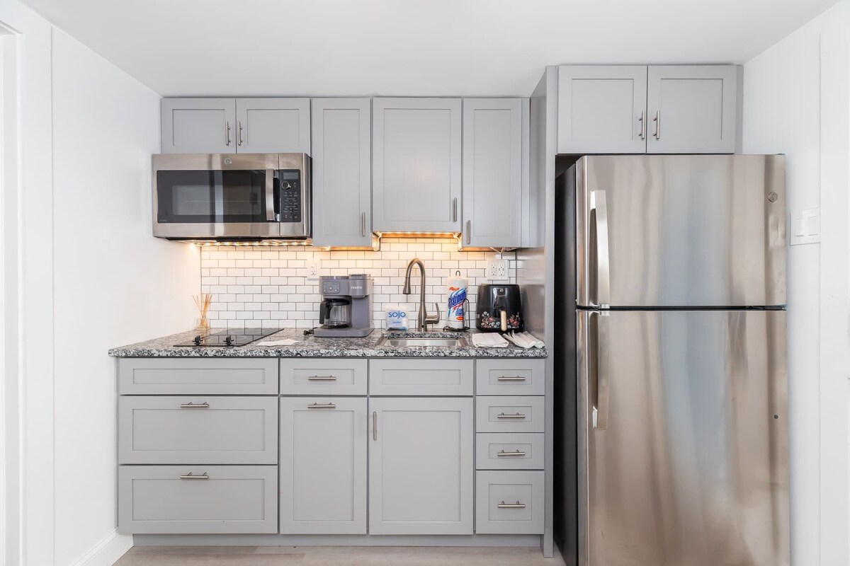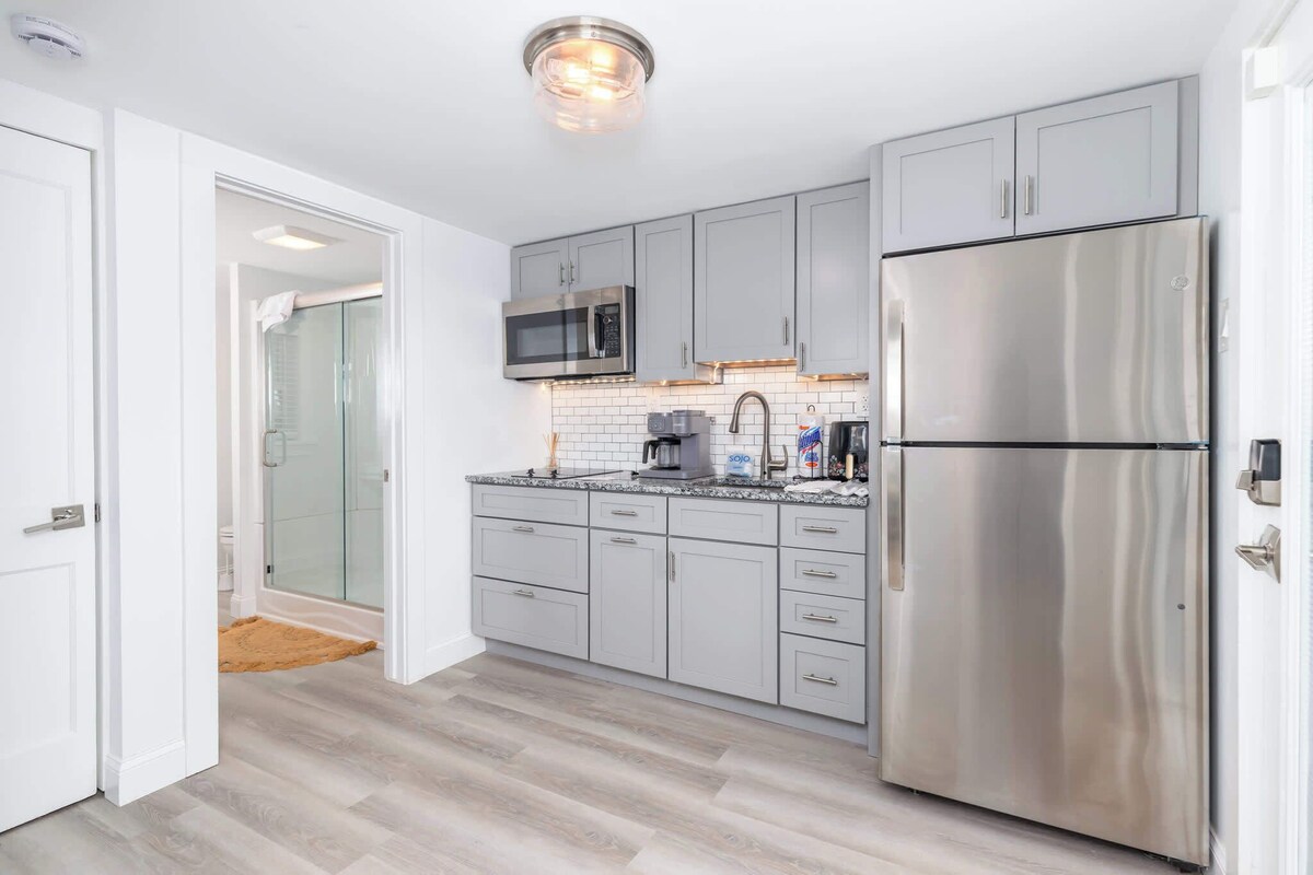 Summary: Welcome to Surf 3, your perfect Ocean City getaway! This charming 1-bedroom apartment is ideally located just off the boardwalk, offering easy access to the beach, exciting attractions, and vibrant downtown. Enjoy the convenience of free parking, modern amenities like air conditioning and a fully equipped kitchen. Spend your days lounging on the beach, exploring water sports, or enjoying nearby amusement rides and arcade games on the boardwalk. At Surf 3, create unforgettable vacation memories in a prime location! Perfect spot for the concerts! The Space: The entrance for this home is around the back of the building in the courtyard. Enjoy the outdoor sitting area! Just off the boardwalk and all it provides...rides, games, amusement park, restaurants! And don't forget the beach and ocean are just steps from the front door. Stay here for the concerts! Rent the other units in this building (unit 1 &r unit 2) for your whole group! Guest Access: The entrance for this home is around the back of the building in the courtyard Our prices include all fees. No hidden fees.