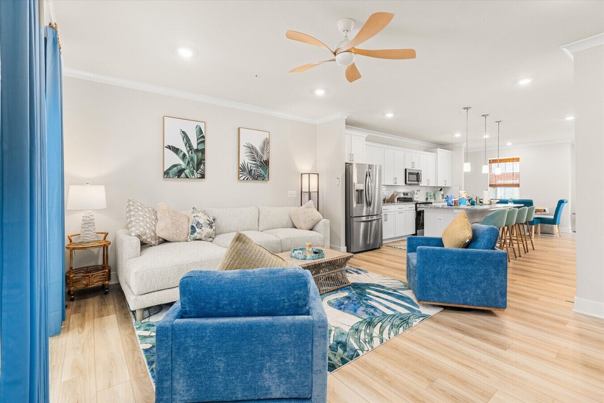 Welcome to Serenity by the Sea—a luxurious 4-story townhome in Ocean City’s sought-after Lighthouse Bay community. This 3BR /5 bath retreat with a kid-friendly loft offers modern coastal living just one block from Fenwick Island beaches. Enjoy a gourmet kitchen, private decks, and a versatile flex space for work or play. Walk to Fenwick Cycles, Ponzetti’s Pizza, or Fractured Prune donuts, and explore nearby mini golf, arcades, and local favorites for the ultimate coastal getaway! Dogs under 30 lbs are welcome with prior approval. The home also offers EV charging capability in the garage, making it convenient for guests with electric vehicles. STARTER KIT: We provide essential linens and a starter supply kit to help you settle in. Please note these items are not replenished during your stay. Kitchen Kit: 1 roll paper towels, 2 small trash bags, 2 large trash bags, dish soap, 2 dishwasher pods, 2 laundry pods, 1 sponge, 2 dish towels. Full Bathroom Kit: 2 rolls of toilet paper per bathroom, and travel size shampoo, conditioner, body wash, body lotion, bar soap. Linens & Towels: Beds are made with sheets, pillowcases, shams, and a comforter. We provide sheets for sofa beds that are left in the room with the couch, but not for trundles/rollaway beds. Each guest receives 1 towel set (large bath, hand, washcloth). The unit is equipped with a washer and dryer for guest use should you wish to refresh towels or linens during your stay. If you need to have a package delivered during your stay please note that our delivery pick up window is Monday-Friday 9am-5pm at our main office. Please reach out to obtain the address that the package would be delivered to. Please note Oceans Edge Vacations is not responsible for packages that are not shipped directly to our office. If you would like to inquire about requesting an early check-in, please note that all early check-in requests are based upon availability. Request are only reviewed 24 hours prior to your check-in date. There is an additional fee of $75 if we can accommodate this request for you. Our calendars do tend to full up rather quickly. If you see a spot open feel free to instantly book. This is a non-smoking unit. Oceans Edge Vacation Rentals charges a $1,000 fine for smoking in the unit. Due to the high volume of turnovers in season and to provide the latest check out possible, cleaners may be completing cleanings until 6PM. Trust & Safety: By booking a stay with us you give permission to the property manager to use a third-party to verify my identity and check criminal databases to confirm my reservation. Complete terms regarding the guest verification can be provided by the property manager. You may receive an email to complete your screening. Please check your spam inbox for this email and contact the property manager if you have any questions. We warmly welcome you to our coastal haven and wish to ensure your stay is as enjoyable as possible. However, we kindly remind our guests that certain elements beyond our control, such as weather conditions, nearby construction activities, or the exuberance of neighboring celebrations, may influence your experience. Nestled close to nature`s bounty, our location invites occasional visits from local wildlife, including raccoons, foxes, diverse bird species including seagulls, and an array of insects. While these encounters are part of the natural charm of our setting, we diligently treat our properties to minimize unwanted guests and maintain your comfort. Should you encounter any aspect of nature that feels less than welcoming or experience any issues with appliances, HVAC systems, electrical components, or cleanliness, please do not hesitate to inform us promptly and provide photographic evidence. We require that you allow us the opportunity to rectify the problem during your stay, as our response time is typically less than an hour. We will make every effort to address and resolve the situation to the best of our ability. However, please understand that such natural occurrences or maintenance issues do not warrant refunds. By booking this property you agree and understand no refunds are given. Our commitment is to provide a serene and delightful escape, and we are here to assist in making your experience as pleasant as possible, within the harmony of our natural surroundings. Our prices include all fees. No hidden fees.