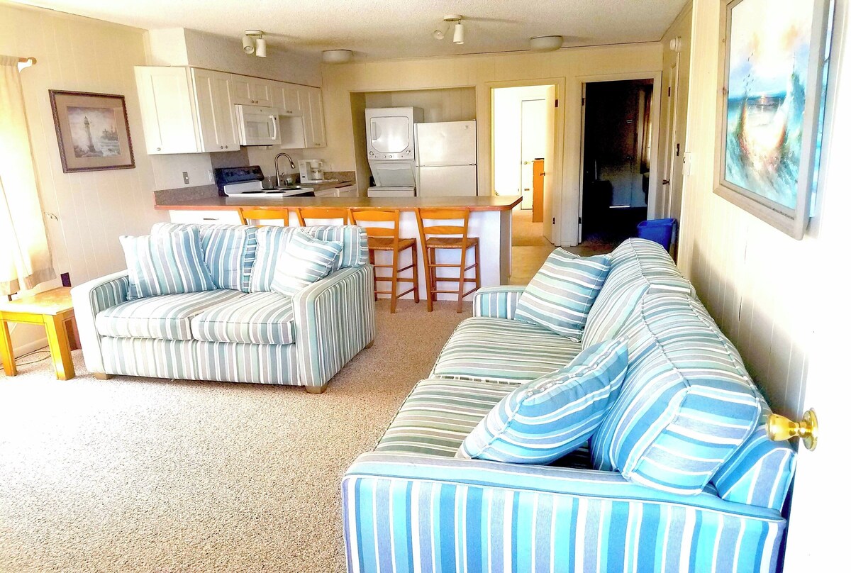 This midrise building is conveniently located on the oceanblock and is just steps to the beach. The three bedroom, two bath units are equipped with full kitchen, living-dining area, washer and dryer, and unit air conditioners. An elevator and reserved parking for one car complete the package. Restaurants, shopping, and miniature golf are close by. Some units are non-smoking and some are pet friendly with paid fee.