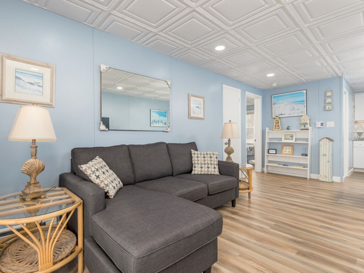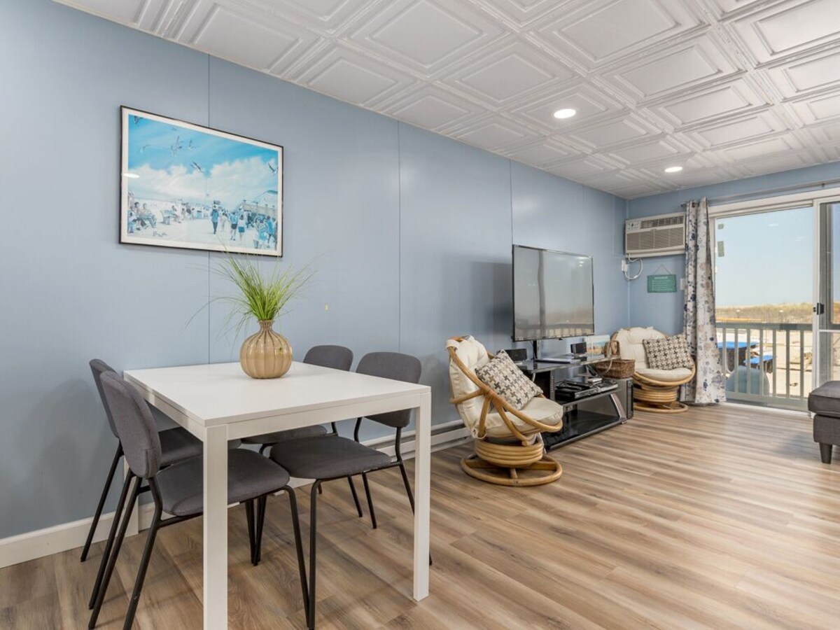 The Windjammer Condominiums located ocean front on 46th street offer that wonderful retro Ocean City feel while providing the perfect setting for a memorable visit to Ocean City, Maryland. This one bedroom, one bath unit can sleep a family of four with a queen in the bedroom and a queen sleeper sofa in the living room. A one- of-a-kind family vacation destination, each unit is individually owned and decorated offering the guest a unique feel and comfortable stay with direct beach access and ocean views. Enjoy the exclusive private sand patio for grilling, picnics and play, free WiFi, and flat screen TVs. Our condos are stocked and ready for you with towels, linens, cookware and utensils. Don't pass up on the chance to stay at your home away from home at the beach! This unit permits up to two dogs, 50 lb limit for one pet or 70 lb combined limit for two pets. There is an additional $35.00 per day pet fee. Although pets are allowed all season, absolutely no pets on the private sand patio courtyard. There is a designated pet area supplied with waste bags just a minute's walk away. An on-site laundry room is available for guests at no additional cost from 9am to 5pm. Property rents any three nights all season. Non Smoking/Non Vaping. This property owner does not permit group rentals to guests under the age of 21. We make every effort to ensure the accuracy of our properties including photos, descriptions, pricing and amenities shown above. Although they are deemed reliable, they cannot be guaranteed. Please be advised we do not advertise any properties on Craig's list. Our prices include all fees. No hidden fees.