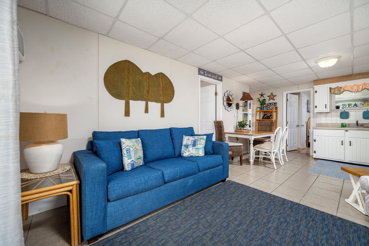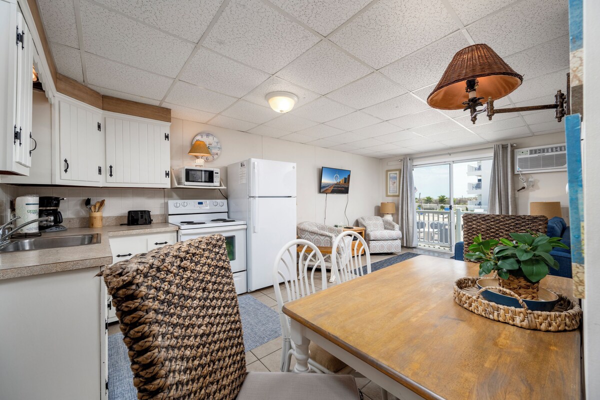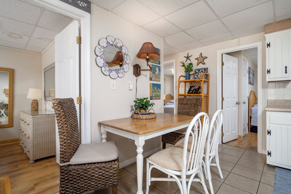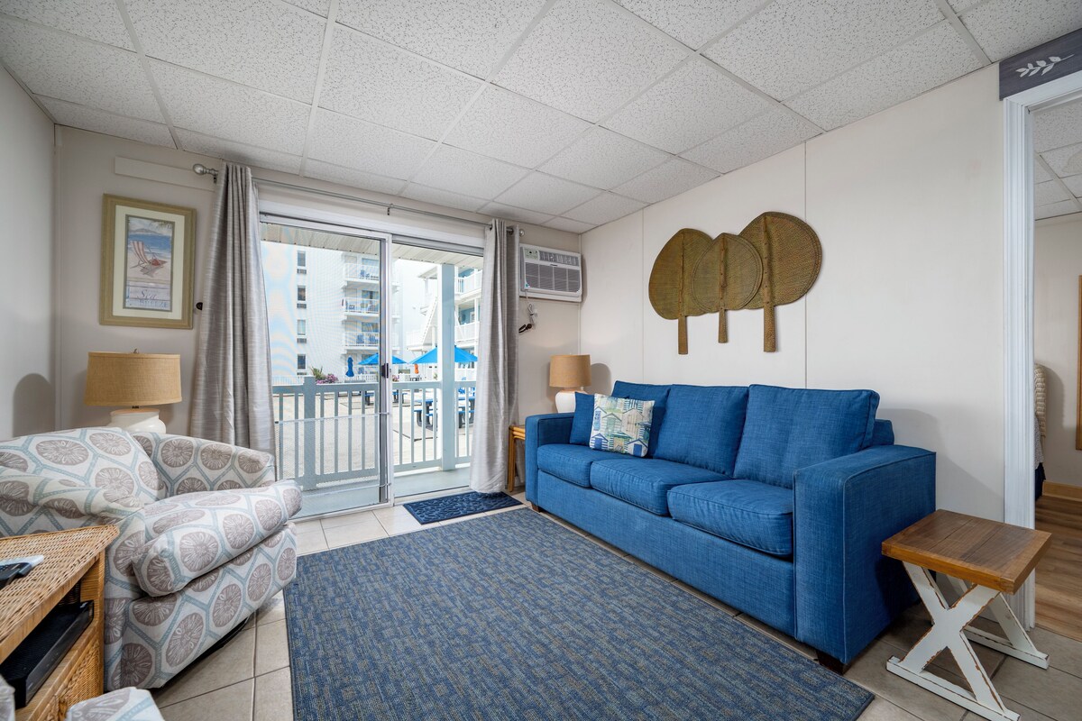 The Windjammer Condominiums located ocean front on 46th street offer that wonderful retro Ocean City feel while providing the perfect setting for a memorable visit to Ocean City, Maryland. This three bedroom, two bath unit can sleep a family of six with a queen in the 1st bedroom, a full in the 2nd bedroom and two twins in the 3rd bedroom. Both bathrooms have recently been completely remodeled. A one-of-a-kind family vacation destination, each unit is individually owned and decorated offering the guest a unique feel and comfortable stay with direct beach access and ocean views. Enjoy the exclusive private sand patio for grilling, picnics and play, free WIFI, flat screen TVs. Our condos are stocked and ready for you with towels, linens, cookware and utensils. Don't pass up on the chance to stay at your home away from home at the beach! This unit permits up to two dogs, 50 lb limit for one pet or 70 lb combined limit for two pets. There is an additional $35.00 per day pet fee. Although pets are allowed all season, absolutely no pets on the private sand patio courtyard. Note there is a designated pet area supplied with waste bags just a minute's walk away. An on-site laundry room is available for guests at no additional cost from 9am to 5pm. Non Smoking/Non Vaping This property owner does not permit group rentals to guests under the age of 21. Property rents any 3 nights in season and any 2 off season. We make every effort to ensure the accuracy of our properties including photos, descriptions, pricing and amenities shown above. Although they are deemed reliable, they cannot be guaranteed. Please be advised we do not advertise any properties on Craig's list. If you see the content of our listings on Craig's list, it is not a legitimate advertisement from Central Reservations. Our prices include all fees. No hidden fees.