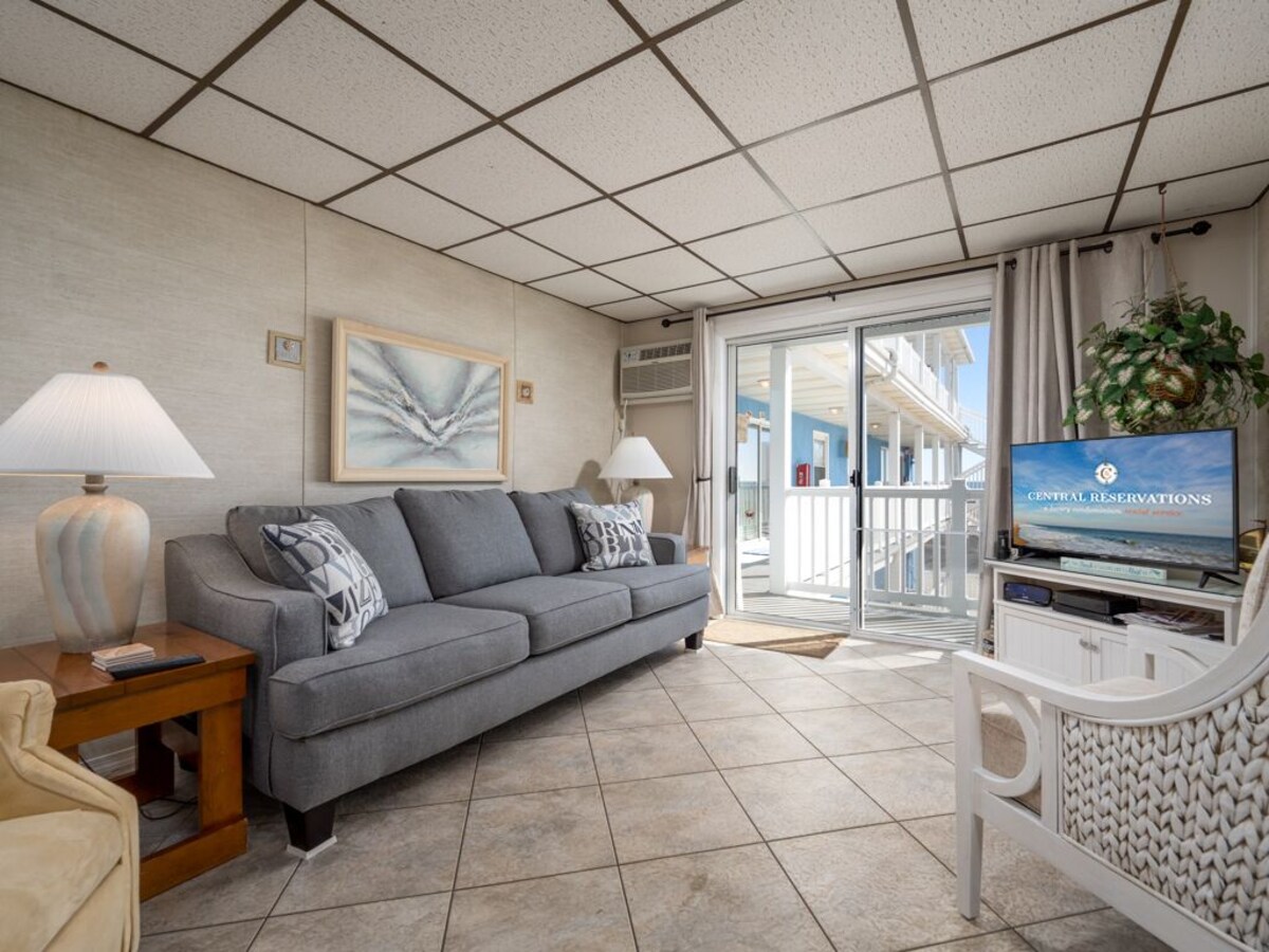 The Windjammer Condominiums located ocean front on 46th street offer that wonderful retro Ocean City feel providing the perfect setting for a memorable visit to Ocean City, Maryland. This 2nd floor walk-up one bedroom, one bath unit can sleep four with bed sizes including a double and a twin in the bedroom and a queen sleeper sofa in the living area. A one-of-a-kind family vacation destination, each condo is individually owned and decorated offering the guest a unique feel and comfortable stay with direct beach access and ocean views. Enjoy the exclusive private sand patio for grilling, picnics and play, free WiFi, flat screen TVs. Our condos are stocked and ready for you with towels, linens, cookware and utensils. Don't pass up on the chance to stay at your home away from home at the beach! This unit permits up to two dogs, 50lb limit for one pet or 70 lb combined limit for two pets. There is an additional $35.00 per day pet fee. Although pets are allowed all season, absolutely no pets are permitted on the private sand patio courtyard. There is a designated pet area supplied with waste bags just a minute's walk away. An on-site laundry room is available for guests at no additional cost from 9am to 5pm. Property owner does not permit group rentals to guests under the age of 25. Property rents any 3 nights all season. Non Smoking/Non-Vaping. We make every effort to ensure the accuracy of our properties including photos, descriptions, pricing and amenities shown above. Although they are deemed reliable, they cannot be guaranteed. Please be advised we do not advertise any properties on Craig's list. Our prices include all fees. No hidden fees.