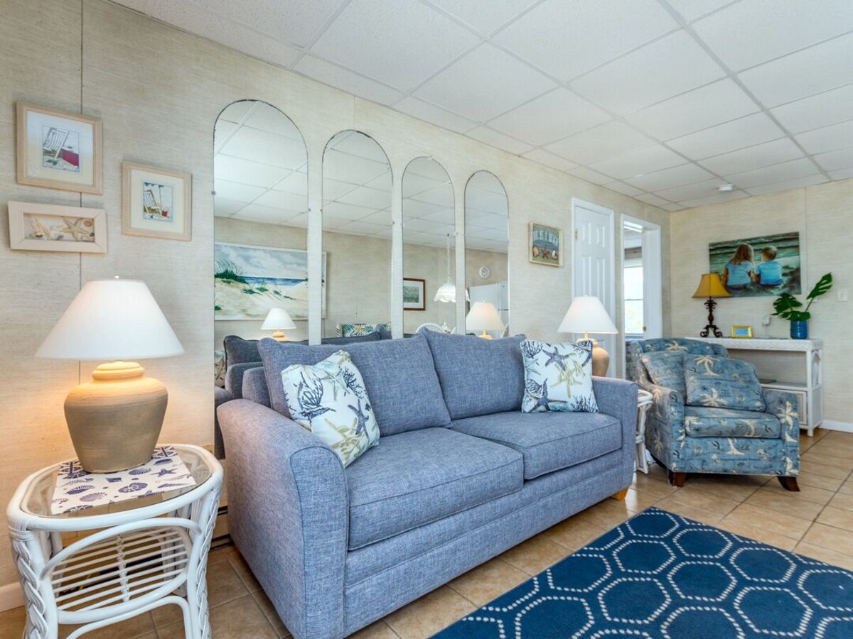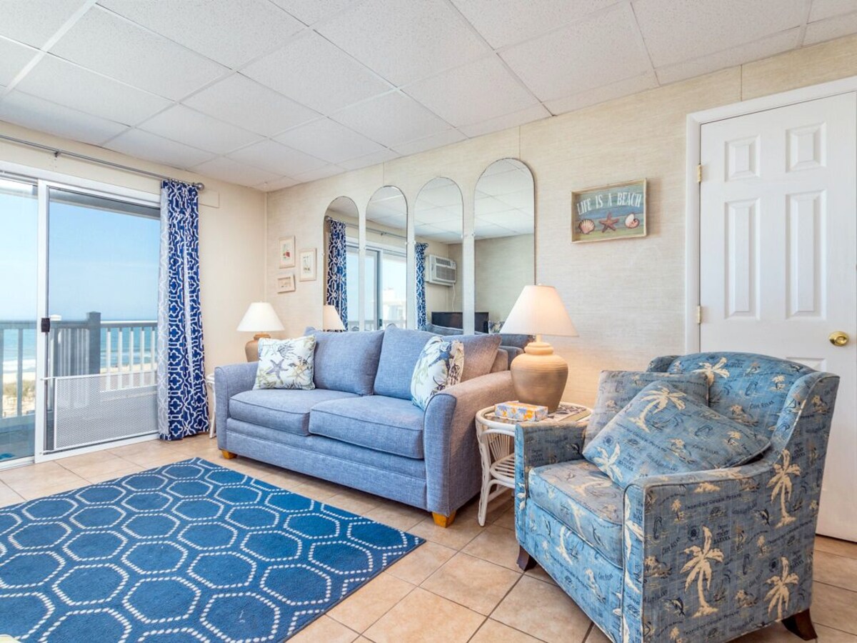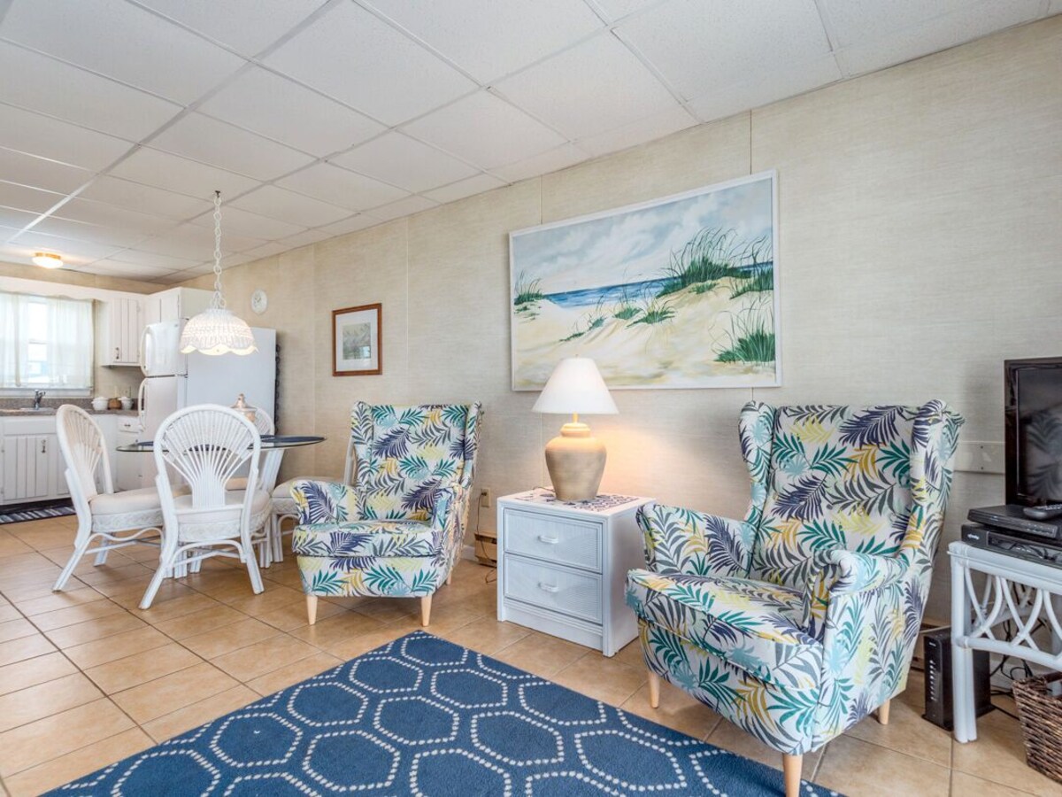 The Windjammer Condominiums located ocean front on 46th street offer that wonderful retro Ocean City feel providing the perfect setting for a memorable visit to Ocean City, Maryland. This 3rd floor walk-up one bedroom, one bath unit can sleep four with a queen in the bedroom and a queen sleeper sofa in the living area. A one-of-a-kind family vacation destination, each unit is individually owned and decorated offering the guest a unique feel and comfortable stay with direct beach access and ocean views. Enjoy the exclusive private sand patio for grilling, picnics and play, free WiFi, flat screen TVs. Our condos are stocked and ready for you with towels, linens, cookware and utensils. Don't pass up on the chance to stay at your home away from home at the beach! This unit permits up to two dogs, 50lb limit for one pet or 70 lb combined limit for two pets. There is an additional $35.00 per day pet fee. Although pets are allowed all season, absolutely no pets are permitted on the private sand patio courtyard. There is a designated pet area supplied with waste bags just a minute's walk away. An on-site laundry room is available for guests at no additional cost from 9am to 5pm. Non-Smoking/Non-Vaping Property owner does not permit group rentals to guests under the age of 21. Unit rents any 3 nights in season and any 2 off season. We make every effort to ensure the accuracy of our properties including photos, descriptions, pricing and amenities shown above. Although they are deemed reliable, they cannot be guaranteed. Please be advised we do not advertise any properties on Craig's list. If you see the content of our listings on Craig's list, it is not a legitimate advertisement from Central Reservations. Our prices include all fees. No hidden fees.