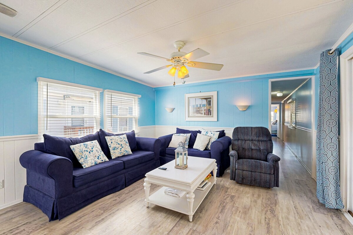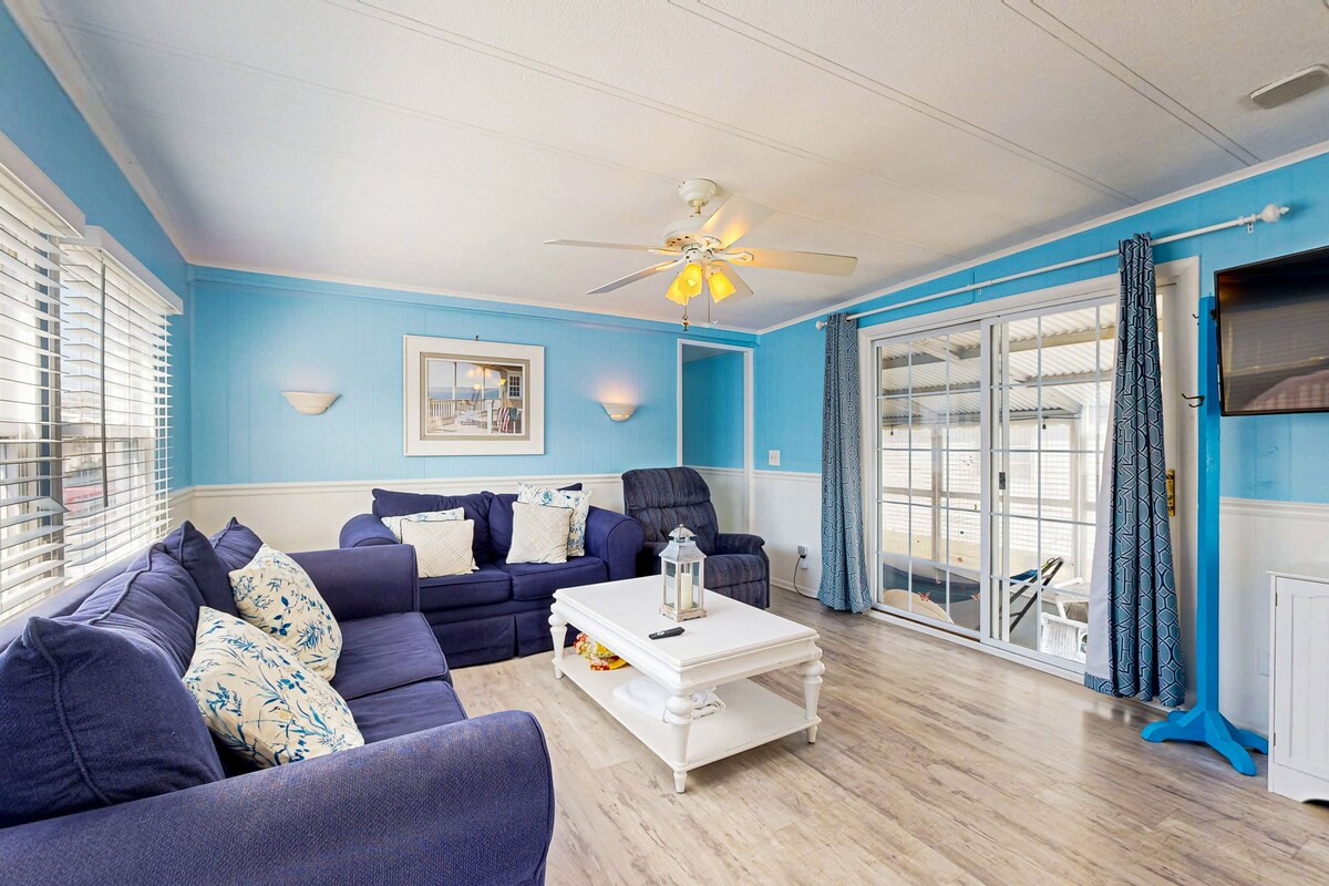 Montego Bay - Oyster Point Our calendar is updated in real-time & our nightly rates are accurately displayed. Simply enter your desired dates and click 'Book Now!' Enjoy a beautiful water view right from the deck of this charming mobile home! This charming beach getaway will have you relaxed in no time with an updated interior and all the amenities you could hope for. A private dock is available for a small boat, or you can use it to launch your kayaks and stand-up paddleboards. A three-season sunroom offers additional living space, and after a long day at the beach you can walk a few blocks to the bay and catch a stunning sunset. In addition to all this home offers, the community is complete with two shared pools and tennis courts. What's nearby: The neighborhood has a nice residential feel to it with the Coastal Highway only a few blocks away. You will be conveniently within walking distance to numerous restaurants, miniature golf courses, and beach shopping. Sun and Surf Cinemas, located on 143rd St, is perfect for a family movie night, or you might hop on the bus and head down to the Ocean City Boardwalk for a fun night of games, rides, and entertainment. Things to know Free WiFi Full kitchen Until further notice due to local restrictions and regulations shared amenities may not be available at the time of your stay. Ocean City has adopted a noise control ordinance that makes it unlawful to cause or permit noise levels which exceed those established by the Department of the Environment of the State of Maryland (COMAR 26.02.03.02) or are in violation of Chapter 30, Article V of the Town Code. It shall be a violation of this agreement and grounds for eviction under Maryland law if these noise levels are exceeded as a result of activity on this property. Ocean City has other noise ordinances, which are criminal offenses if violated. If you are bringing a dog on your trip, the pet fee is already included in your quote when selecting ‘Yes’ to pets. No more dogs are allowed. Parking notes: There is free parking available for 2 vehicles. Dock details: Please note: this home resides in a noise-sensitive area and the owners participate in our Good Neighbor protection program. Our smart home technology will alert our team if excessive decibel or occupancy levels are detected, allowing us to reach out directly with a reminder of maximum occupancy and quiet hours. This technology is privacy compliant, and only monitors the presence of decibels and devices-not any personal conversation or information. Thank you for supporting our efforts to be good neighbors! Damage waiver: The total cost of your reservation for this Property includes a nightly damage waiver fee, plus tax if applicable (the “Damage Waiver”). (A discount may be applied for stays of 28 nights or longer, if permitted.) The Damage Waiver covers you for up to $3,000 of accidental damage to the Property or its contents (such as furniture, fixtures, and appliances) as long as you report the incident to the host prior to checking out. The Damage Waiver fee eliminates the need for a traditional security deposit. More information can be downloaded from the \ on the checkout page. Due to local laws or HOA requirements, guests must be at least 25 years of age to book. Guests under 25 must be accompanied by a parent or legal guardian for the duration of the reservation. Our prices include all fees. No hidden fees.