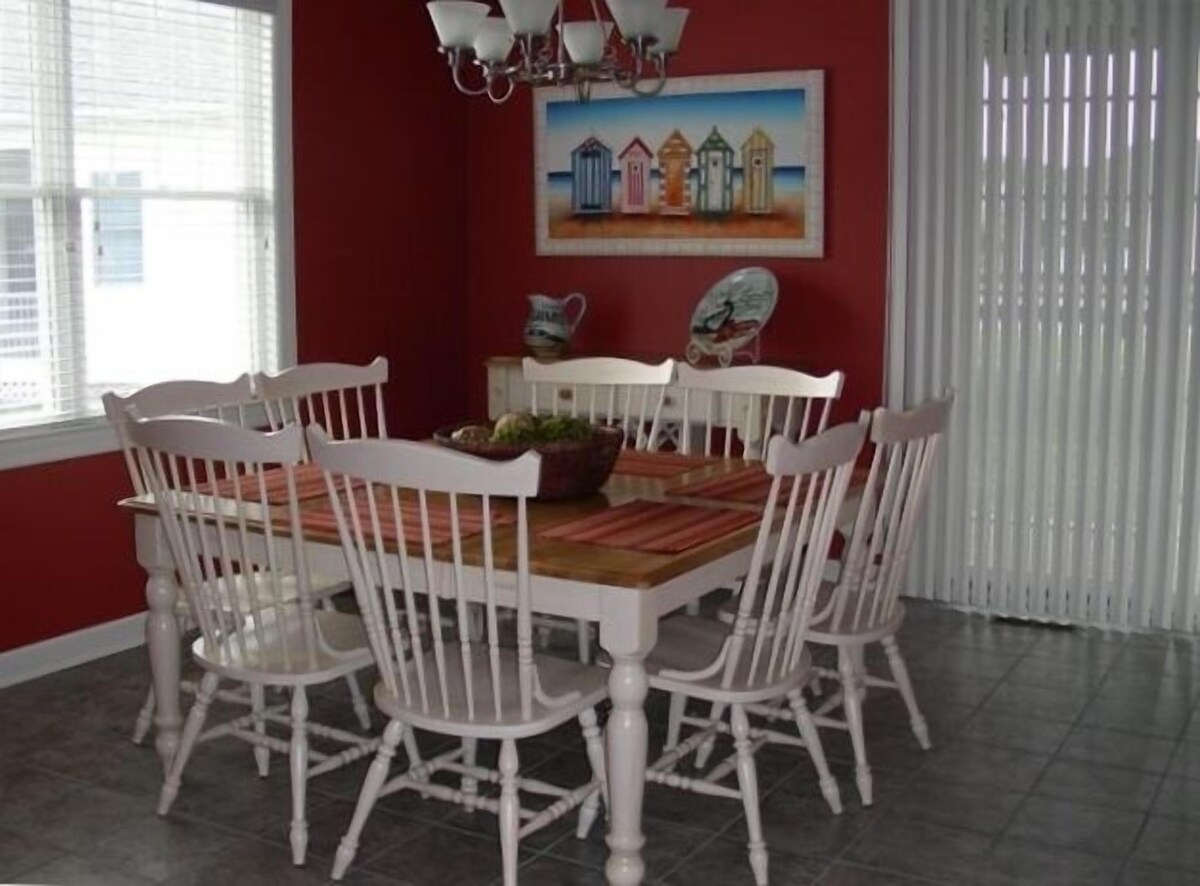This beautifully decorated house is located in the Bayside Resort and Golf Community. This is truly our second home and is loaded with upgrades that make it feel like home. * Granite Counter Tops * Stainless Steel Appliances * 60' Panasonic HDTV * TVs in Every Bedroom * Upgraded Tile Showers * Pillow Top Mattresses * High-Speed Wireless Internet * Fully Outfitted Kitchen for your cooking needs Bayside is a resort community that is 'Removed not Remote'. Just 3 miles from the beaches of Fenwick Island, DE and Ocean City, MD, it offers easy access to all the fun of the beach, while at the same time, offering an escape from the crowds and congestion that come with it. Bayside offers a free beach shuttle to the Fenwick Island beach at select times during the summer. The Bayside community includes 'The Point', which sits on the bay overlooking Ocean City. The point features a boat and fishing dock, kayaks and canoes throughout the summer, a pier, and a nature trail with plenty of wildlife to enjoy. Bayside's Jack Nicklaus Golf Course was ranked Delaware's best public access course. Bayside also boasts the huge SunRidge Tennis & Recreation Center with 2 Large Pools, Kid's Splash Zone, 20-person Hot tub, Fitness Center, Tennis Courts, Playground, Basketball, Beach Volleyball, Food and Beverage, Picnic Area, and Game Room. The Commons Neighborhood pool complex is located just 3 blocks from the house. It features a 3650sq ft. free form pool, a 550sq ft. kiddie pool, and large Hot Tub. The complex also includes changing rooms, showers, bocce, and a snack bar. The Health and Aquatic Center is a great facility for the off-season or when the weather isn't great.. It is conveniently located at the Bayside Entrance. It features a large indoor pool and hot tub, dry sauna, a large, state-of-the-art fitness center, and the Juice Box, which features coffee, smoothies and (mostly)healthy eats. ----------------------------------------------------- In the Spring and Fall, Bayside is a great place for one of Ocean City's many seasonal events or a golf getaway close to many of the DelMarVa peninsula's finest courses including: * Bayside Golf Club * Bear Trap Dunes * Glen Riddle GC * The Links at Light House Sound * Rum Pointe * Beach Club Golf Links ...and many more. Located near the Bayside Entrance is the Freeman Stage for the Performing Arts, a non-profit run by the Bayside Developer. Shows throughout the season feature National Acts, Local Artists, and Kid's programming. Visit their website for a complete schedule and tickets - https://www.freemanarts.org/ ----------------------------------------------------- Weekly Rentals (Saturday to Saturday) only - June through Labor Day. Shorter rentals accepted during the remainder of the year. Sleeping Accommodations * Master Bedroom - King (First Level) * 2nd Suite - Queen w/ Private Bath * 3rd Bedroom - Queen * Children's Room - Pyramid Bunk w/ Twin Trundle (Sleeps up to 4 Children) * Loft - Queen Sleeper Sofa The calendar feature below has up-to-date availability information for this HMBayside home. Please include the ages of children for accurate number of Resort/Pool Passes, especially during the summer season. Passes are needed for guests age 5+ that would like access. For 2025, Bayside has set rates as follows: Summer: Weekly: $115 / 3-day: $65 Off-Season: Weekly: $70 / 3-day: $50 Keywords: Single Family, House, Beach, Resort, Golf, Bayside, kid friendly Our prices include all fees. No hidden fees.