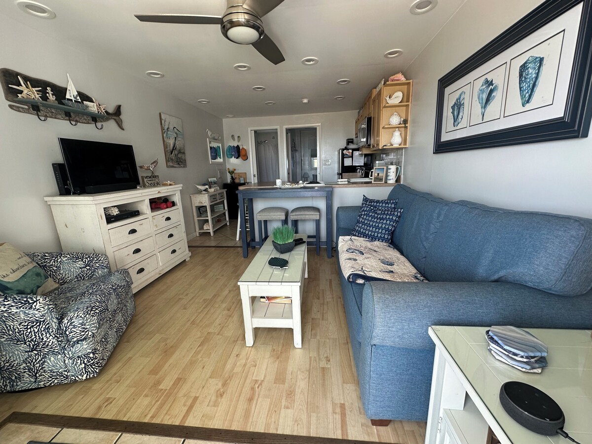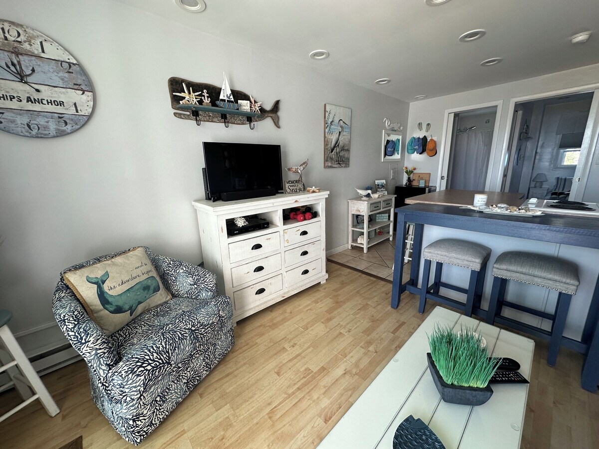 This adorable Oceanfront efficiency, is like no other. Recently renovated and redecorated with private sleep area, fully stocked kitchen, and comfortable living area. Located on 46th - A great location to walk to some of our favorite spots - Belly Busters (they deliver to the beach! - and best fish tacos). 48th St Tap House, Seacrets for Entertainment, Satellite Cafe for Breakfast, Mackys for Sunsets. Bring your bikes for fun and easy ride to the Boardwalk. Enjoy the sand patio, and grill area for a relaxing nite in, or to enjoy chatting with other vacationers. Free Wi-Fi, flat screen tv and onsite check in and check out. We do allow up 2 dogs, 50lb limit for 1 pet, or 70lb for combined limit for 2 pets. There is a pet fee of $85 - $25 for each add'l pet Please note, pets are not allowed on the private sand patio/courtyard. There is a designated pet area supplied with waste bags, just a minutes walk away. Linens are provided year round, in sealed packaging. We are asking our guests to provide their own blankets and pillows at this time. The best part of this location is the view. No matter where you are in this unit, the beach is there with you . We hope you love our home away from home as much as we do. Our prices include all fees. No hidden fees.