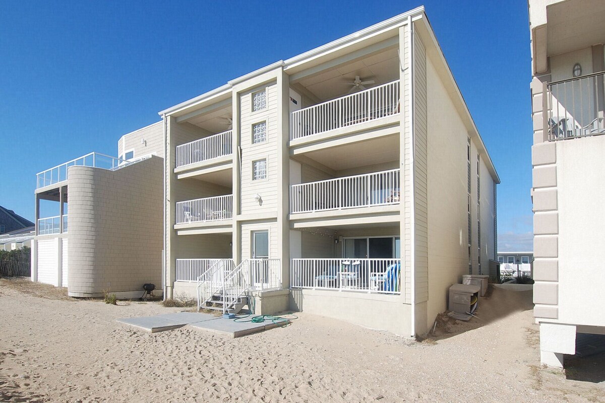 This 2nd floor unit overlooks a semi private beach with easy access to the main beach through the path in the dunes.