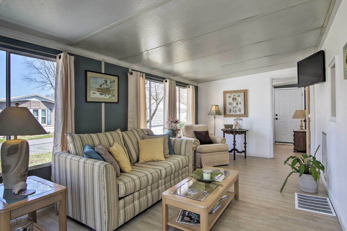 Escape everyday stress with a trip to White Horse Park, a bayfront community that features ample family-friendly fun! This charming Ocean Pines vacation rental boasts 2 bedrooms, 1 bathroom, a well-equipped kitchen, and a private outdoor dining area. Take advantage of the short walk to the outdoor community pool, picnic pavilion, playground, and waterways. Later, tee off at a nearby golf course or drive to Ocean City Beach & Boardwalk for coastal relaxation and attractions. Book today! -- THE PROPERTY -- Outdoor Dining Table w/ Umbrella | Near Golf | 11 Mi to Ocean City Beach Bedroom 1: Queen Bed | Bedroom 2: Queen Bed | Living Room: Sleeper Sofa COMMUNITY AMENITIES: Outdoor pool, clubhouse, laundry area, showers, boat launch, marina, playground, pavilion HOME HIGHLIGHTS: Flat-screen TVs w/ cable, picture windows, 6-person dining table, ceiling fans, charcoal grill, beach chairs KITCHEN: Stove/oven, refrigerator, microwave, dishware/flatware, cooking basics, breakfast bar GENERAL: Free WiFi, central air conditioning/heat, towels/linens, hangers, trash bags/paper towels SUITABILITY: Stairs required to enter PARKING: Driveway (2 vehicles) -- THE LOCATION -- TEE OFF: River Run Golf Club (2 miles), Ocean Pines Golf Club (3 miles), Glen Riddle Golf Club (7 miles) OCEAN CITY ATTRACTIONS: Roland E. Powell Convention Center (10 miles), Ocean City Beach (11 miles), Boardwalk (11 miles) FAMILY FUN: Baja Amusements (9 miles), Jolly Roger Amusement Park (11 miles), Trimper Rides of Ocean City (11 miles) THINGS TO SEE + DO: Ocean Downs Casino (6 miles), Isle of Wight Bay (8 miles) AIRPORT: Salisbury Regional Airport (24 miles) -- REST EASY WITH US -- Evolve makes it easy to find and book properties you'll never want to leave. You can relax knowing that our properties will always be ready for you and that we'll answer the phone 24/7. Even better, if anything is off about your stay, we'll make it right. You can count on our homes and our people to make you feel welcome — because we know what vacation means to you. -- POLICIES -- - No smoking - Pet friendly w/ $50 fee per stay (+ fees & taxes, dogs only) - No events, parties, or large gatherings - Additional fees and taxes may apply - Photo ID may be required upon check-in - NOTE: This property requires exterior stairs to enter - NOTE: Boats are allowed only on a case-by-case basis and require prior homeowner approval. If you would like to bring your boat to this property, please reach out to the Guest Contact after your reservation has been made - NOTE: The pool is available between Memorial Day and Labor Day Our prices include all fees. No hidden fees.