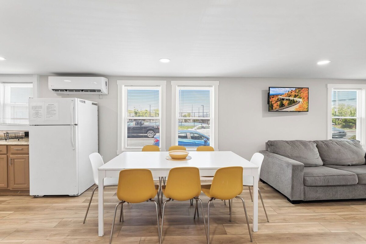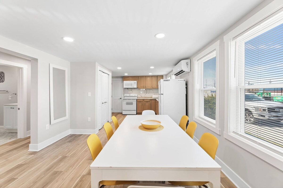 RENOVATED IN 2024! Minimum age to book: 18 Welcome to your perfect beach getaway in the heart of downtown Ocean City! This spacious 3-bedroom beach condo is a great vacation destination for families and friends. With its unbeatable location just two blocks away from the iconic Ocean City Boardwalk and the stunning beach, you'll be in the center of all the action. This is a first-floor unit and comes with 2 parking spots. Location: Located in downtown Ocean City. Just a 5-minute or less walk to the beach, ensuring endless hours of sunbathing and beachcombing. Surrounded by a variety of dining options, from casual to fine dining, including popular spots like The Lazy Lizard, Plim Plaza, Dough Roller, Spain Wine Bar and many more. Enjoy quick access to mini-golf, watercraft rentals, surf shops, souvenir shops, bars, and nightclubs for endless entertainment. Experience the thrills of the nearby Jolly Roger at the Pier, offering a two-level carousel, Slingshot, the iconic Ferris Wheel, games, rides, and more! Condo Highlights: Recently renovated bathroom and floors, ensuring a fresh and comfortable environment. Updated furniture for a modern and stylish feel. Sleeps up to 8 persons, making it perfect for families or group getaways. Plus, it has a brand-new comfortable pulls couch for extra sleeping. Bedroom 1: - 1 queen size bed Bedroom 2: - 1 double bed and 2 single bed Bedroom 3: - 3 single bed Living area: - 1 sofa bed Self-check-in with keyless entry for your convenience: door code and Wi-Fi information will be provided on the day of the check in. Driveway spots for hassle-free parking next to the house. This property is pet friendly. A maximum of 2 pets is allowed. A one-time fee of $150 per pet applies for the duration of the stay. Public bus stops conveniently located near the property. Complimentary fresh sheets and a towel package are included with every reservation of 3 nights or more, ensuring a hassle-free experience from the moment you arrive. This will include 2 sheets for each sleeping surface, pillowcases for the pillows a set of towels for each guest (1-bath towel, 1-Hand towel and 1-wash cloth per guest) For hygiene and sanitation purposes, linens are professionally prepared, sealed in plastic and provided in a package. Guests will be responsible for making their own beds upn arrival Nearby Activities: Less than a 1-minute walk to the bay and fishing pier, perfect for those who enjoy angling and stunning sunsets. Nearby basketball court for sports enthusiasts. Skatepark for skateboarding enthusiasts. Baseball Park for a friendly game of baseball. Kids' playground for the little ones to have fun and make lasting memories. At BluVista vacation rentals we try to create unique vacation rental experience for guests at our properties, and we strive to provide a consistent, top-notch service. We are local and available during your stay if there are any questions or concerns, anytime! Your Ocean City vacation will be one to remember, with this cozy and well-equipped condo as your home base. Whether you're looking for relaxation on the beach, family-friendly activities, or a vibrant nightlife scene, this rental offers it all. Book your stay today and create unforgettable memories in the heart of Ocean City! Our prices include all fees. No hidden fees.