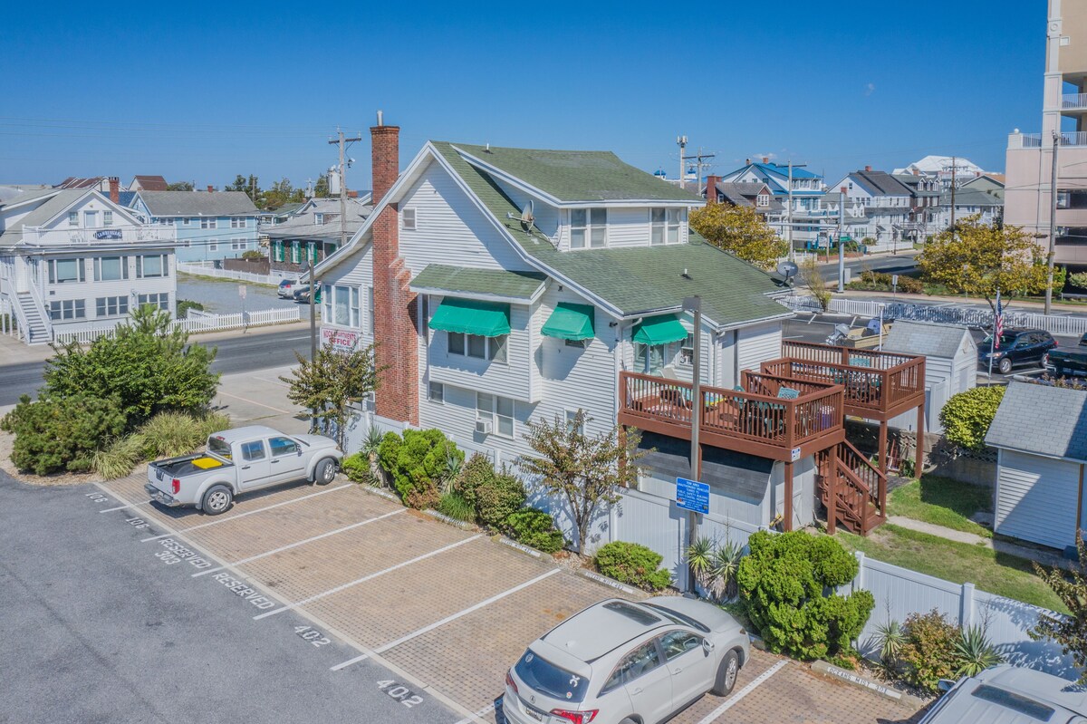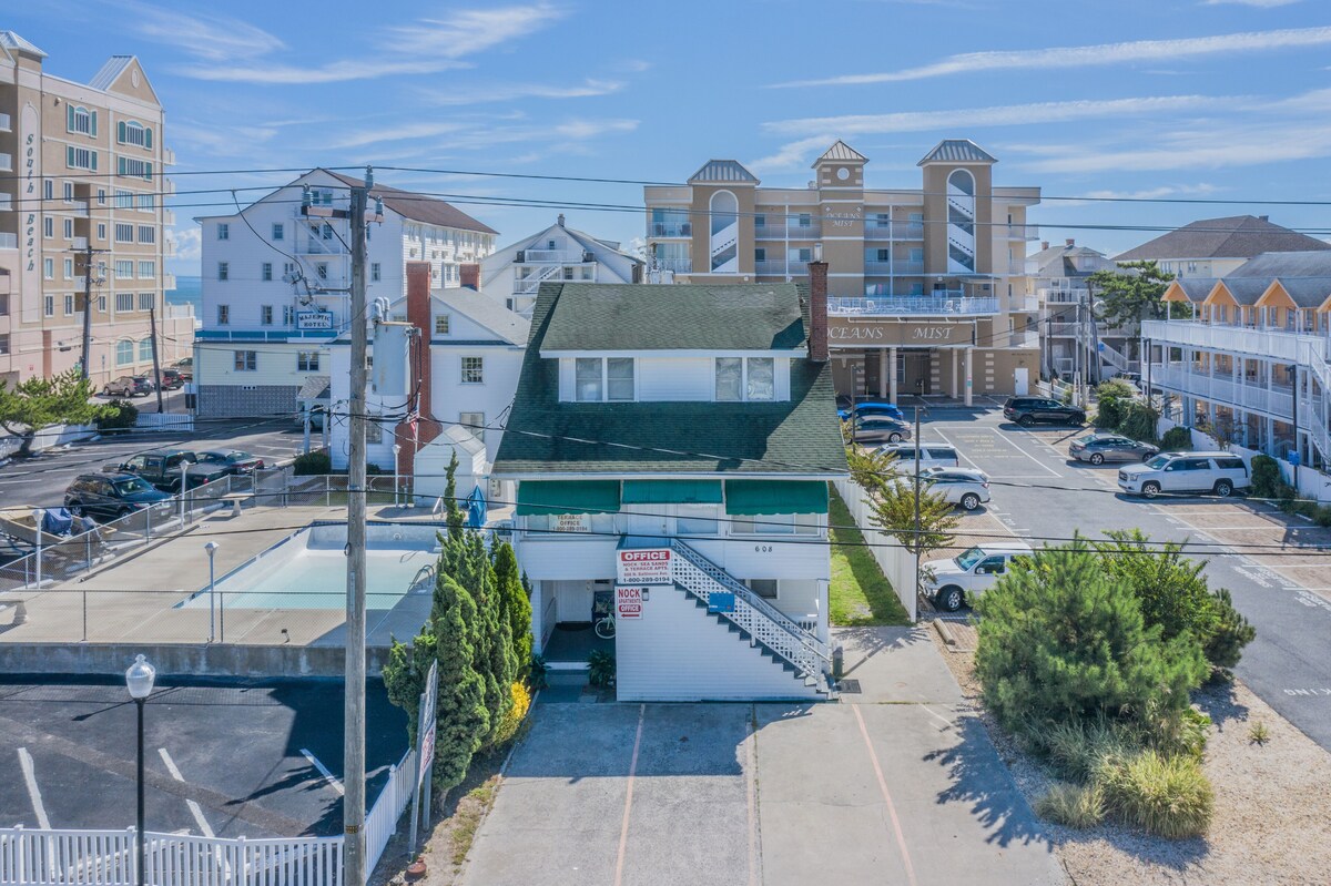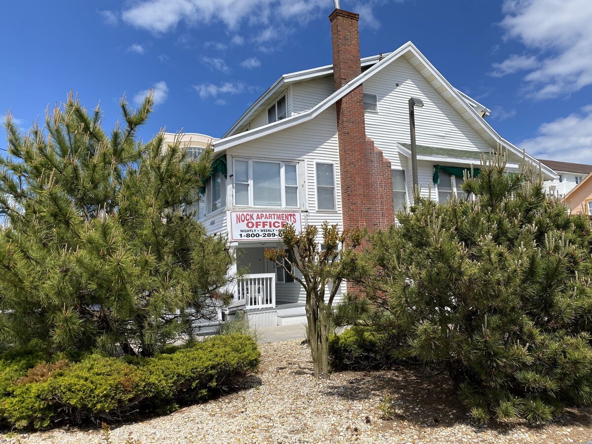 Right at the heart of downtown of Ocean City, this apartment is Ocean side just a few steps from the soft sands and warm Atlantic waves of the beach. This apartment offers a clean, affordable and comfortable apartment to families, friends and whoever is looking for an enjoyable stay in Ocean City Start every morning drinking a coffee and breathing in fresh ocean air on the balcony. Inside the apartment there is a common area with two pullout sofas, flat screen TV, chairs, coffee table, dining area, and fully equipped kitchen. Delicious meals await at nearby restaurants, but for those who'd prefer to do their own cooking, the kitchen has everything you need to whip up something tasty. The apartment is equipped with up to date air conditioning ensuring that our costumers are cool and comfortable. This apartment sleeps up to eight guests and is ideal for a family or friends visiting the Atlantic shore together. Extra adults pay extra $35 per night. The apartments do not come with towels and bed linens. You can either bring yours from home or rent them from management for a small fee. PETS ARE WELCOME! Charges are applicable ($30-35) per pet per night. Head south half mile, to the top of the historic Ocean City Boardwalk for seaside fun and excitement. Or take the entire family to the Jolly Roger Amusement Park and Splash Mountain Water Park for a day of rides, treats, and midway-style entertainment, just one mile away. Save your dates now and secure the Maryland getaway you and your loved ones deserve! Thank you and have a great time at the beach! Our prices include all fees. No hidden fees.