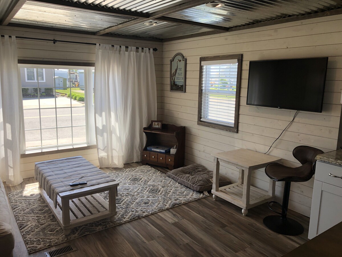 Beautiful 3 bedroom, 1 and a half bath.. All new vinyl plank flooring, stainless steel appliances including dishwasher. Your own private screened porch, complete with fridge, picnic table, and even a grill to enjoy some summer cookouts. You will love the new living room with great sunset views right from the couch. Just being in the place gives you a comfortable relaxed feeling. There are 4 bikes available for your use while enjoying your stay. The neighborhood has 2 pools 2 tennis courts There is a fishing boardwalk directly into the bay. Grocery store, several bars and restaurants including Duffy’s Tavern, The Crab Bag, AlleyOops, Albertinos, and one of my favorites hidden gems Cafe Mirage are all within a mile and a half with no need to go on the Main Street. North side park is a huge multipurpose park with walking//bike trail, outdoor gym, picnic area, and huge play ground for kids as well as a very long pier for fishing and crabbing. The park also offers a kayak and stand up paddle board rental hut, and Sundays in the park with ice cream and drone show. Our prices include all fees. No hidden fees.