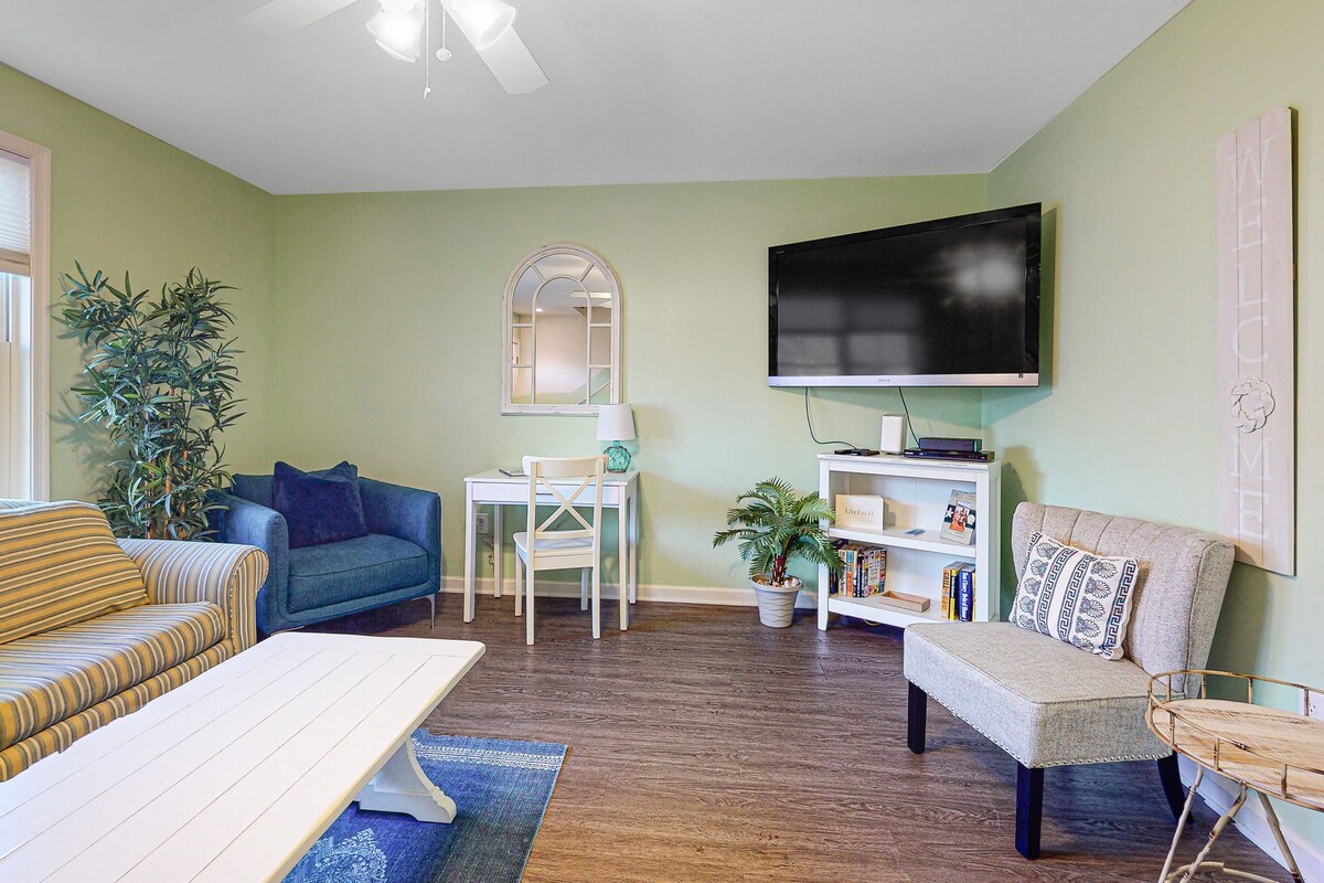 Sunset Drive, Unit B Our calendar is updated in real-time & our nightly rates are accurately displayed. Simply enter your desired dates and click 'Book Now!' Come and stay at this three-bedroom duplex townhouse located just a short walk from the beach and the North end of the Boardwalk! Previously featured on HGTV's 'Island Life, ' this newly-updated, two-story townhouse is comfortable and well-suited for the vacationing family. Upgrades include new furnishings, a 53' flatscreen TV, ceiling fans (in the living room, kitchen, and all bedrooms), and a small fenced yard. Start your morning with a cup of coffee on the back patio, then head out to experience the sights! When it's chowtime, the well-equipped kitchen will have your back with modern appliances and all the utensils and cookware you could ever need to prepare everything that comes to mind. It doesn't matter if it's a full-course meal, a quick snack on the go, or a delicious breakfast, this kitchen will make cooking a breeze! Guests will also enjoy having a private washer/dryer and central air conditioning throughout the home. There are tons of things to do right in this immediate area! Take the kids to Jolly Roger Amusement and Water Park for a day of thrills - it's just five blocks away. Or head down to the nearby beach and Boardwalk (about four blocks) for some fun on the ocean side of the island. Ocean City tram car stops at the North end of the Boardwalk and can whisk you down to the Inlet in a matter of minutes for a small fee. Hungry for some local cuisine? There are dozens of delectable restaurants within walking distance, as well. THINGS TO KNOW No parties are permitted at this home. Ocean City has adopted a noise control ordinance that makes it unlawful to cause or permit noise levels which exceed those established by the Department of the Environment of the State of Maryland (COMAR 26.02.03.02) or are in violation of Chapter 30, Article V of the Town Code. It shall be a violation of this agreement and grounds for eviction under Maryland law if these noise levels are exceeded as a result of activity on this property. Ocean City has other noise ordinances, which are criminal offenses if violated. If you are bringing a dog on your trip, the pet fee is already included in your quote when selecting ‘Yes’ to pets. If you would like to add more dogs, please contact us. Parking notes: There is free parking available for 2 vehicles. Security camera details: This home has an active exterior camera on the front door; there is no audio. Please note: this home resides in a noise-sensitive area and the owners participate in our Good Neighbor protection program. Our smart home technology will alert our team if excessive decibel or occupancy levels are detected, allowing us to reach out directly with a reminder of maximum occupancy and quiet hours. This technology is privacy compliant, and only monitors the presence of decibels and devices-not any personal conversation or information. Thank you for supporting our efforts to be good neighbors! Damage waiver: The total cost of your reservation for this Property includes a nightly damage waiver fee, plus tax if applicable (the “Damage Waiver”). (A discount may be applied for stays of 28 nights or longer, if permitted.) The Damage Waiver covers you for up to $3,000 of accidental damage to the Property or its contents (such as furniture, fixtures, and appliances) as long as you report the incident to the host prior to checking out. The Damage Waiver fee eliminates the need for a traditional security deposit. More information can be downloaded from the \ on the checkout page. Due to local laws or HOA requirements, guests must be at least 25 years of age to book. Guests under 25 must be accompanied by a parent or legal guardian for the duration of the reservation. Our prices include all fees. No hidden fees.