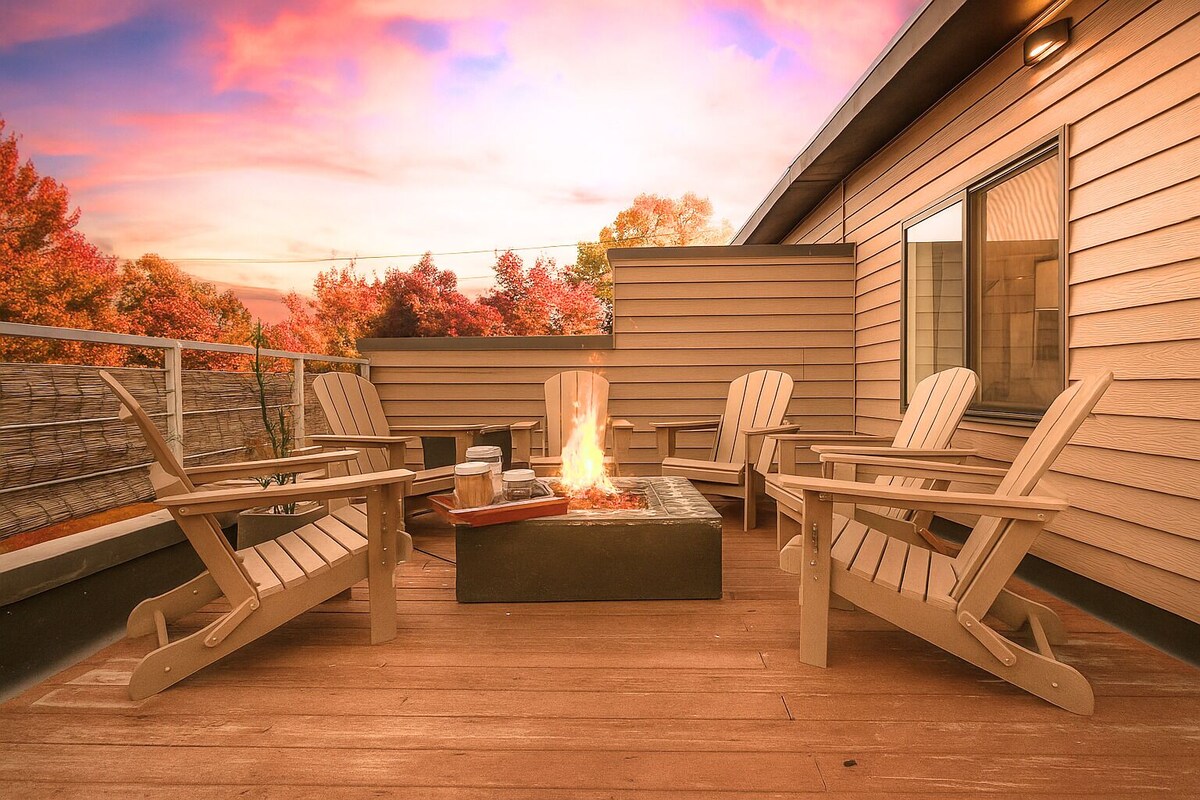 Stay in the heart of it all in our Sloan’s Lake duplex, ideally located near downtown Denver and just steps from Broncos Stadium, Empower Field. Connect and recharge in this stunning home featuring 4,000 sq. ft. of spacious comfort with elegant interiors, two master suites, a rooftop patio with firepit, sauna, HOT TUB, 2-car garage, kids room, gym equipment, fully fenced yard, office, fireplace, gourmet kitchen, and more! View the 3D tour: https://tiny url. com/ mux2d48x (Remove The Spaces) Our customer service team is here for you during your stay, but our level of interaction is up to you. We are only a phone call or message away. You will be able to self-check-in upon arrival and self-check-out upon departure. Once a week, one of our team members will stop by the property to put out the trash cans. They will NOT enter the home. They have access to the garage with a code. This day may or may not fall during your stay. 🌟 SUPERB LOCATION: Central to Denver's Abundant Attractions 🌟 A perfect home base, whether you’re looking to explore Denver city life, catch a show at Red Rocks, or adventure in the Rocky Mountains. This home is conveniently located just 2.5 miles west of Downtown Denver off Colfax Ave. 11 minutes to the I-70 Highway. Just 20 minutes to Golden. Driving distances to a few of the many attractions you might enjoy during your stay in Denver: ✔ Red Rocks Park & Amphitheater - 20 minutes ✔ Mile High Stadium - 3 minutes (WALKABLE) ✔ Coors Field - 9 minutes ✔ Ball Arena - 4 minutes ✔ Meow Wolf - 6 minutes ✔ Coors Brewery Tour - 19 minutes ✔ Cherry Creek Shopping Center: 17 min ✔ Sloan's Lake/Park: 1 min or 2 min walk ✔ Much more... check-out the property book for more local recommendations You'll have access to the entire home with a private entrance, which ensures your privacy and comfort. Entry is secure and easy with a keypad lock. 🌟5 LUXURIOUS BEDROOMS 🌟 All bedrooms feature luxury, memory foam mattresses, premium linens, and bedside lamps. ✔ PRIMARY SUITE 1: KING BED + private balcony + large en-suite w/ dual vanity, walk-in shower, spacious walk-in closet. ✔ PRIMARY SUITE 2: KING BED + office desk with monitor and printer + large en-suite bathroom w/ dual vanity, spacious closet. ✔Bedroom 3: QUEEN BED ✔ Bedroom 4: THREE SINGLE BEDS (Trundle bed) + foldout twin mattress. Great kid’s room ✔ Loft: FULL FUTON + memory foam topper, private bathroom, and rooftop patio 🌟 4.5 BATHROOMS 🌟 All bathrooms feature premium shampoo, conditioner, body wash, makeup towels + plenty of plush bath towels. - Bathroom 1: Soaker tub and walk-in shower + hair dryer (Located on Master bedroom) - Bathroom 2: Bath tub & shower + hair dryer (Located on second room) - Bathroom 3: Bath tub & shower - Bathroom 4: Bath tub & shower - Half Bathroom 4.5: Located in the main living area 🌟LIVING ROOM 1🌟 This bright and spacious, open-concept living room provides plenty of space to relax & unwind in style. Perfect for large groups who want a central place to eat, chat, watch TV and just chill. Enjoy movies in front of the gas fireplace on the comfy sectional + Smart TV. 🌟 KITCHEN🌟 This spacious kitchen has plenty of room to prep those big group meals. You’ll find cooking essentials from premium non-stick pans and bakeware to sets of plates, bowls and drink-ware. Enjoy the coffee maker, toaster oven, water filter, seasonings, cooking oil, plus plenty of coffee on the house! Gather friends & family around an oversized dining table with formal seating for 8 +. 🌟EPIC GAME ROOM🌟 Cozy up with your friends and family and watch a movie on the sofa. Challenge your friends to a game of pool, ping-pong, or darts. Chill your bottle of wine in the wine fridge. Stay active with our gym equipment: kettlebells, dumbbells, bench, and yoga mats. 🌟ROOFTOP PATIO🌟 Gather your group to watch the sunset over the Rockies while roasting smores around the firepit in comfy Adirondack chairs. Relax in the hammock and enjoy views of Downtown Denver. Mountain and City Views, pictures just don't it justice ;) 🌟PRIVATE OUTDOOR SPACES🌟 Enjoy a fully fenced, private backyard featuring: ✔ Brand new HOT TUB (seats 3-4) ✔ Wet Sauna ✔ Patio & outdoor dining table ✔ Gas Grill 🌟GARAGE🌟 Park two cars in the garage for comfort and peace of mind. BRINGING YOUR FURRY FRIEND? Let us know about your dog(s) and we should be able to accommodate with an adjustment to our cleaning fee. $100 cleaning fee per dog, maximum two dogs only. Sorry, no cats permitted. Please note that smoking, loud music, and parties of any kind are not allowed. For your safety, security cameras have been installed outside the property monitoring the front door, back deck including a partial view of the hot tub and sauna, and rooftop patio. There are no cameras inside the property. Our prices include all fees. No hidden fees.