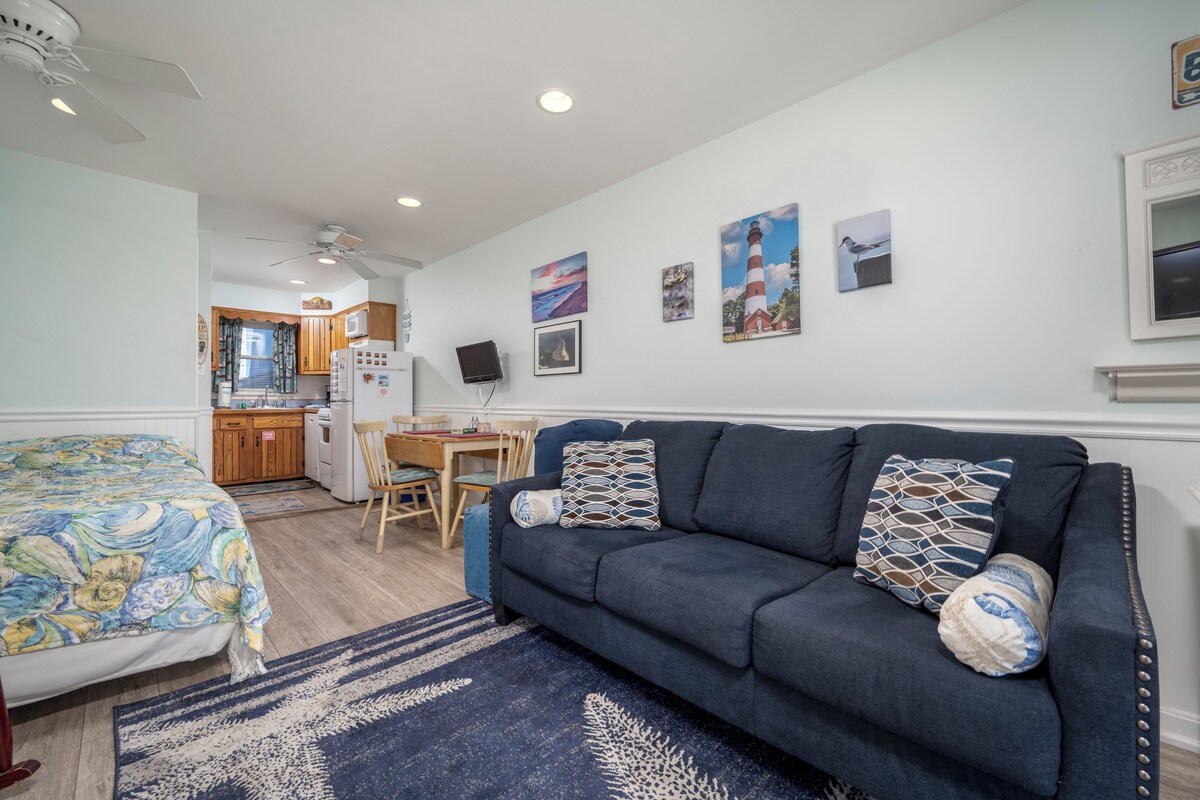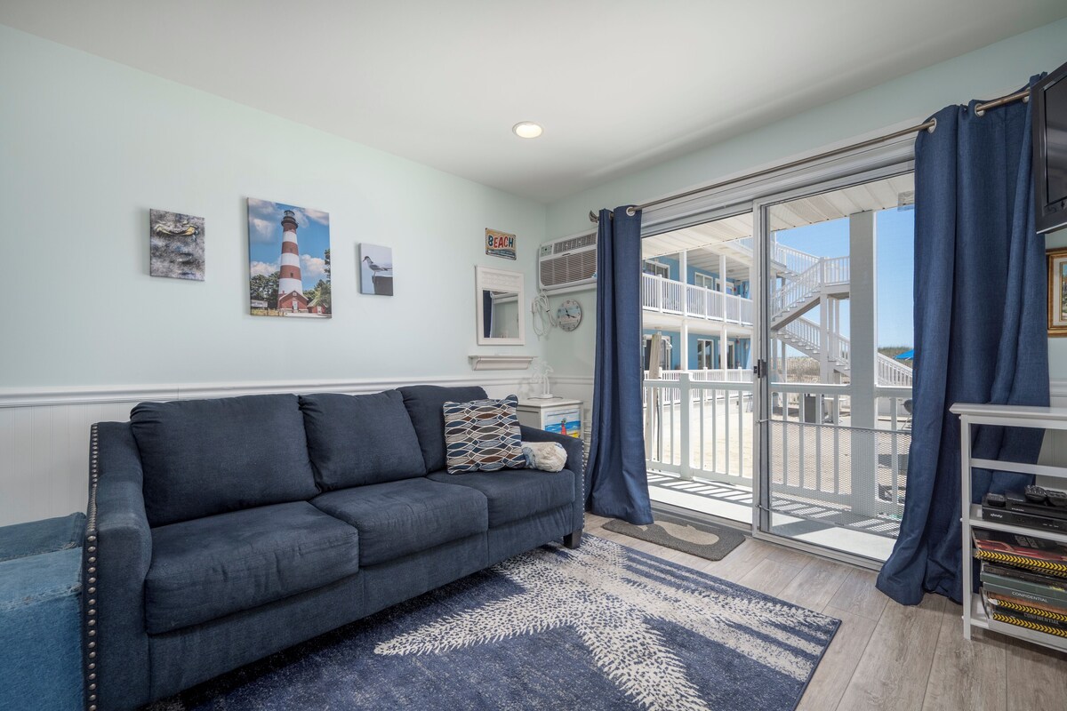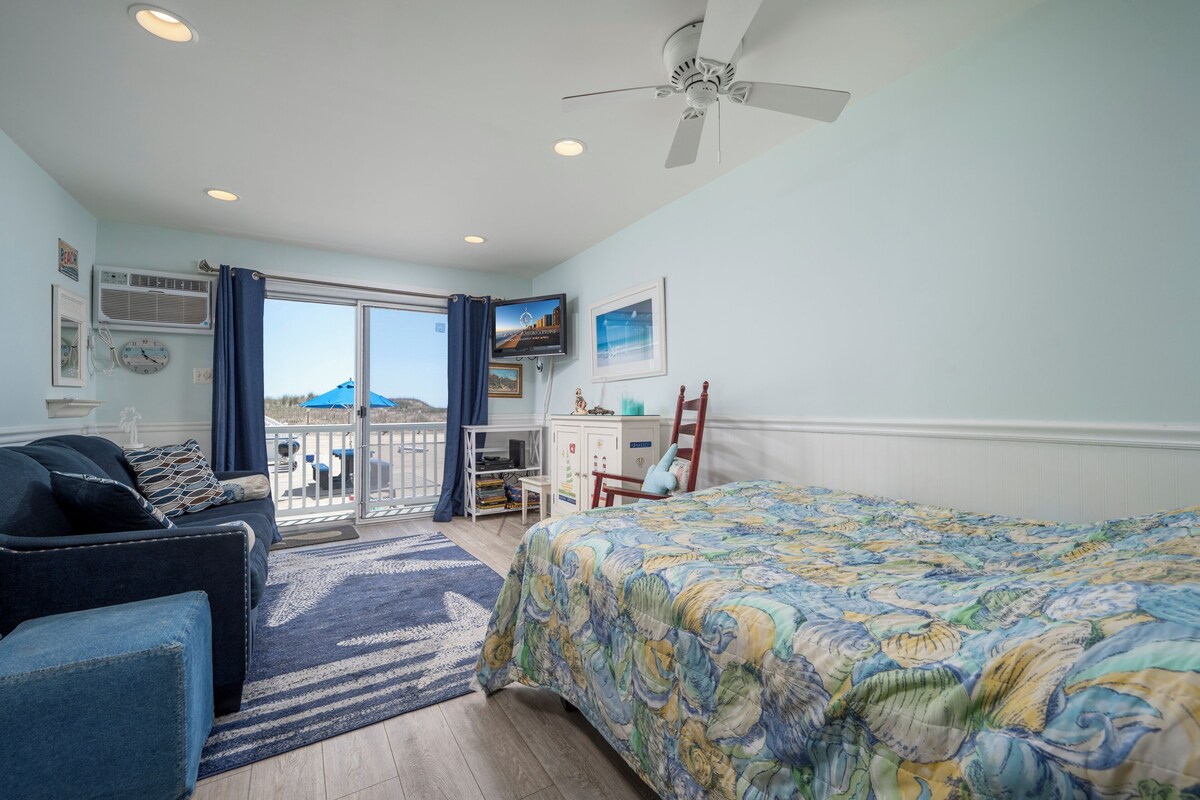 The Windjammer located ocean front on 46th street offers that wonderful retro Ocean City feel. This ground level efficiency, one bath unit with one double bed can sleep two and provides the perfect setting for a memorable visit to Ocean City, Maryland. A one-of-a-kind family vacation destination, each unit is individually owned and decorated offering the guest a unique feel and comfortable stay with direct beach access. Enjoy the excusive private sand patio for grilling, picnics and play, free WIFI, flat screen TVs. Our condos are stocked and ready for you with bath towels, linens, cookware and utensils. Don't pass up on the chance to stay at your home away from home at the beach! This unit permits up to two dogs, 50lb limit for one pet or 70 lb combined limit for two pets. There is an additional $35.00 per day pet fee. Although pets are allowed all season, absolutely no pets permitted on the private sand patio courtyard. There is a designated pet area supplied with waste bags just a minute's walk away. An on-site laundry room is available for guests at no additional cost from 9am to 5pm. Property rents any 2 nights all season! Non Smoking/Non Vaping This property owner does not permit group rentals to guests under the age of 21. We make every effort to ensure the accuracy of our properties including photos, descriptions, pricing and amenities shown above. Although they are deemed reliable, they cannot be guaranteed. Please be advised we do not advertise any properties on Craig's list. If you see the content of our listings on Craig's list, it is not a legitimate advertisement from Central Reservations. Our prices include all fees. No hidden fees.