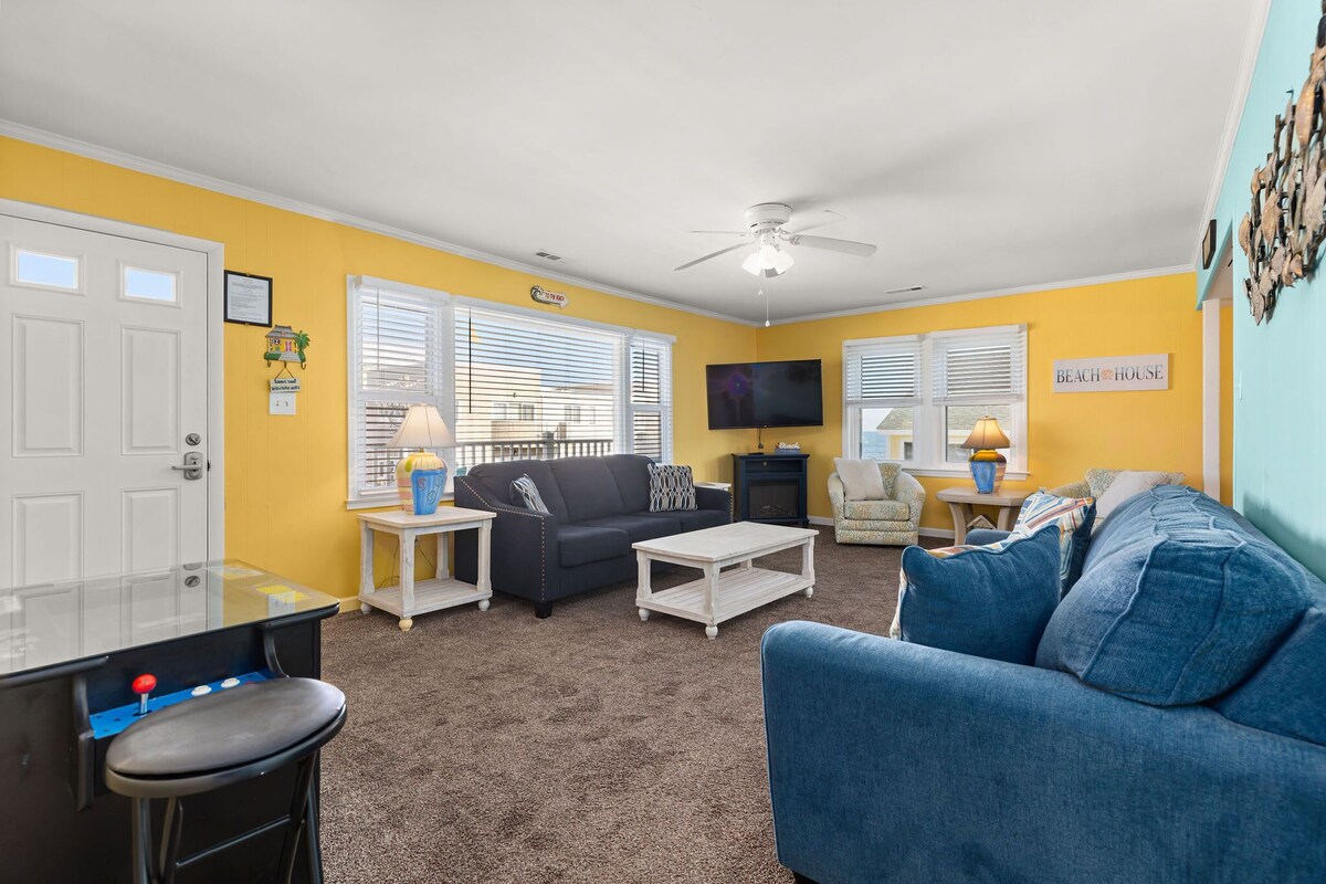 Summary: Sandy Toes is just steps from the beach on a quiet ocean block! Each of the 3 identical, spacious units is brightly decorated—perfect for large families or groups. Private parking is included, with street parking available. Located under 3 blocks from the Convention Center and just 1 mile north of the boardwalk. 🐾 Dog-friendly with an additional pet fee! The Space: Welcome to Sandy Toes – Your Bright & Cozy Beach Retreat! Each Sandy Toes unit is decorated in cheerful beach tones, creating a comfortable and inviting space perfect for families and friends. Our property includes 3 identical units, each featuring 3 bedrooms and 2 full bathrooms. The spacious living room boasts two sofas, plush club chairs, and a multi-game tabletop arcade, with large windows that fill the space with natural light and beachy vibes. The fully equipped kitchen has everything you need—standard appliances, cookware, utensils, baking sheets, cutting boards, plus a microwave, toaster, and traditional drip coffee maker. Gather around the large kitchen table for meals and memories. Each bedroom is equipped with a smart TV featuring Hulu Live, giving you access to 60+ live channels and on-demand content—perfect for relaxing evenings after a day at the beach. We provide dish soap, hand soap, and a starter supply of paper products; longer stays may require guests to bring additional supplies. All bedding and bath towels are included—just remember your beach umbrella! With the beach only steps away, Sandy Toes offers easy access for families. Enjoy the outdoor shower out front and conveniently located bins along the side of the building stocked with beach chairs for your use. Located just 0.5 miles from the Roland E. Powell Convention Center, and close to popular spots like: Seacrets (0.5 mi) Jolly Roger Amusement Park (1.3 mi) Coconuts Beach Bar & Grill (0.4 mi) Ocean City Boardwalk (1 mi) 🐾 Dog lovers welcome! This property is dog friendly with an additional pet fee. We're a family-owned and operated rental business, not a large company or management firm. We live locally and take great pride in personally maintaining and managing each space. If anything isn’t quite right during your stay, please don’t hesitate to reach out. We’re nearby and will do our best to make it right as quickly as possible. Your comfort and experience truly matter to us! Come make your beach memories at Sandy Toes—comfortable, convenient, and just steps from the surf. Guest Access: Each unit is equipped with keyless entry. A pin will be sent before your stay. This allows you to go straight to your rental without having to stop at another location to pick up keys. The Neighborhood: Sandy Toes is situated on a quiet family friendly street. Located within 3 blocks of convention center and 1 mile from the boardwalk. Plenty of shopping and restaurants nearby. Nicks mini golf 57th st & 44th st 48th Street WaterSports Restaurants Lunch & Dinner Belly Busters 44th Macky's Bayside Bar & Grill 53rd The Dough Roller 41st Shotti's Point 35th 45th Street Taphouse Bar (pet friendly) Kunus Tiki Bar 43rd St Breakfast: Barn 34 34th St Bad Monkey OC 58th Fine Dining: 38.37-75.08 Lookout Lounge Getting Around: Ocean City is easily drivable. Depending on your destination it is also easy to get around on foot. There is also a beach bus that runs from 6am-1am with stops approximately every 15 minutes. It is $3 for a Ride-All-Day pass. Please go to oceancitymd.gov for more details. Other Things to Note: Guests must be 25+ to rent Guests are expected to clean up after their pets and are responsible for bringing their own pet supplies (food, waste bags, etc). $75 per dog per stay Ocean City has adopted a noise control ordinance that makes it unlawful to cause or permit noise levels which exceed those established by the Department of the Environment of the State of Maryland (COMAR 26.02.03.02) or are in violation of Chapter 30, Article V of the Town Code. It shall be a violation of this agreement and grounds for eviction under Maryland law if these noise levels are exceeded as a result of activity on this property. Ocean City has other noise ordinances, which are criminal offenses if violated Early check-ins are not available June-August. Off season months depend upon availability and cannot be determined until the day of check in. We can not determine days prior to check in if housekeeping will have the unit ready earlier than 3pm. LINENS AND BATH TOWELS ARE PROVIDED. We provide enough TP (1 roll per bathroom), paper towels (1 roll) and trash bags (1 bag in bin and 1 back up bag) to get you started. Please bring your own supply to last your stay. BEACH TOWELS ARE NOT PROVIDED Our prices include all fees. No hidden fees.