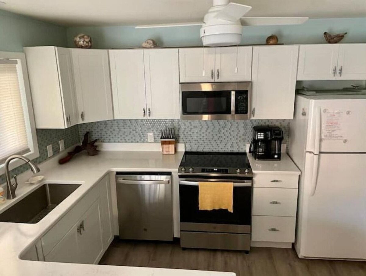 BEAUTIFUL UPDATED bayside, 3-bedroom, 2-full bathroom condo. Located on the ground floor. Pet friendly! Master bedroom with King bed, 2nd bedroom with Queen bed, kid friendly 3rd bedroom with 2 twins. Queen sleeper sofa in the living room. Sleeps 8. Parking available directly out front with 1 and 1/2 spaces (second spot, first come first to park shared with other unit in building). Sleek kitchen counter, stainless steel appliances, HamiltonBeach Flex Brew, washer & dryer. Linens provided for renters including sheets, towels, bedding, and pillows. Equipped with cable and WiFi. 55\ Smart TVs in the master and 2nd bedroom as well as a 32” in the 3rd bedroom. Only a short walk across the street to the beach. Walking distance to Food Lion (w/ Redbox), Greene Turtle, Crabcake Factory, gyms, Northside Park, family activities and more. Privately owned, gated outdoor pool, located on Jamestown Rd (next to Greene Turtle), just past the Jamestown Park on the left. Keys could be found on the key hook on the inside front door. There is a playpen for use located in the closet. There is a locked shed outside the front door containing beach essentials for use. Keys could be found on the key hook on the inside front door. Keyless entry. Code will be provided upon arrival. *Grills are strictly prohibited. *Non-smoking unit*NO senior week rentals allowed *No Parties License number 27168 Our prices include all fees. No hidden fees.