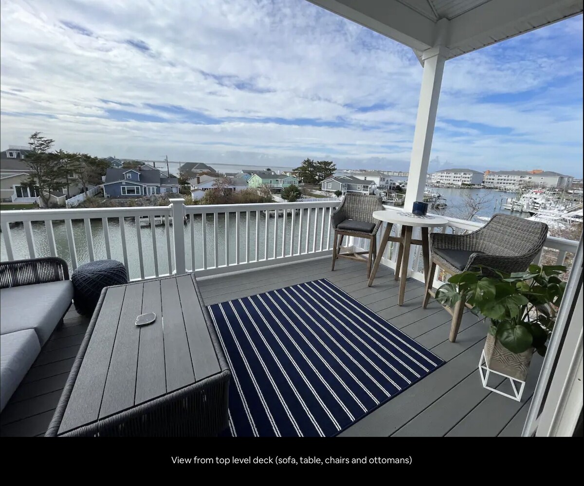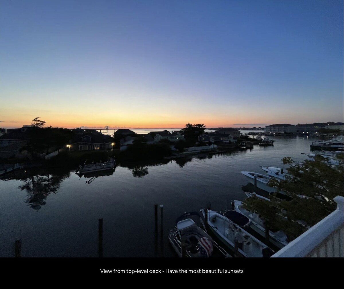 You will not be disappointed with choosing to stay in this beautiful, waterfront home. The three levels provide ample, comfortable space for everyone. The location couldn't be better! Walk out the door to your dock on the bay with your own private boat slip to park your boat, jet skis or to just fish off. (parking spot pending at time of booking - if interested, inquire). Located only 3 blocks from the beach and bustling boardwalk, there's so much fun to be had here on your next ocean getaway!