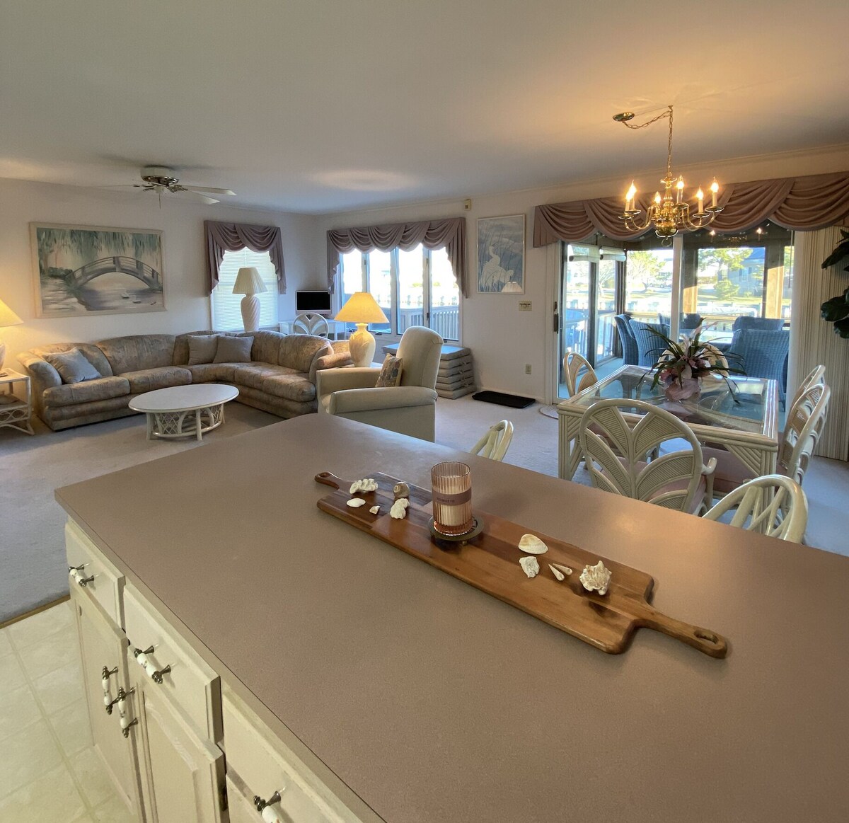 It's 1989, Huey Lewis and The News is playing on the radio, and you're piled in the family car headed Downy' Oshun Hon! Memories don't get much better than this! Come and relive your Ocean City memories in our updated but nostalgic home on the bay. Here are two You Tube links with videos of our property: https://youtu.be/idmCnhsyOas https://youtube.com/shorts/pewLwwBhSWU?feature=share About - Our 3 bedroom 2.5 bath home is located just across from the 130th St. beach in the sought after Montego Bay Community. We are just a 5 min walk to the surf and steps from the Montego Bay shopping center, community tennis courts and pool, restaurants, and Northside Park. Enjoy the screened in porch overlooking one of the widest canals in Ocean City with great sunset views! It is directly across from a grass and tree lined walking area so the view is amazing! Outdoors / Porch - On the covered screened in porch you will find a huge 6 person table and chair set that is perfect for games (don't worry if you forget yours we have plenty!) There is an additional outdoor porch (not covered) seating area with a table and chairs and two chaise loungers for socializing or sunbathing. We have a private dock for fishing, crabbing, or just dipping your toes in the water. Bring your SUP's or kayaks and launch right off the deck! We have a small grassy side yard and front yard for your poo policed pups to enjoy. Living Area - Inside you will find an open floor plan with a large kitchen and peninsula for enjoying a drink with the cook. There is a 6 person dining table, providing you can resist eating on the porch. The living room has a large 75” smart TV with the major streaming apps. There is a desk area with a brand new iMac available. High speed internet and a guest login option is available so the adults in your group can check in or work remotely. We have lots of extra blankets and pillows in the closets to make family movie night as cozy as can be. Kitchen - Our kitchen has all the things you might need; pots, pans, dishes, mugs, coffee pot, crock pot, slicers, dicers, blenders, Tupperware, and more. We also have the staples you'd expect in the kitchen; trash bags, baggies, spices, flour, sugar, soap, sponges, dishwasher pods, etc. There is an Alexa in the kitchen that we recommend having 97.1 The Wave on as soon as you come in. Beds / Baths - There are three bedrooms with room for 6 people to sleep comfortably. Newley renovated showers in the 2 full baths and an additional 1/2 hall bath. Laundry - We have a brand new oversized washer and dryer available in entry hall. Fine Print - - We do not provide linens, sheets, or pillowcases. There are our personal towels in the hall closet you are welcome to use however they need to be washed and replaced in closet prior to leaving. (Please do not take the bath towels to the pool or beach.) - We do not guarantee paper products, trash bags, soap, spices, etc will be available. Although we do stock them, sometimes previous renters use the last of them and we have not gotten a chance to replace them. We recommend bringing things with you to be safe or you can take a quick walk to the Montego Bay Market or Dollar Store to pick some up if we are out. - NO SMOKING of any sort inside our home. You are welcome to smoke outside or on the porch and use the provided ashtrays. Please throw away your butts in the trash can, not in the bay, not in the toilet, or on the ground. Additionally, please empty and clean ashtrays prior to departure. - We offer a Play Station 4 in the kids room however we do not supply games so please bring or rent games and bring them with you. - Dogs are welcome however if your dog is not house trained please leave them at home. There is a $100+ fee for any pet smell, hair, or mess inside our home. There is a $50 fee for any poo left in the yard. Additionally if you have a dog that likes to \ other dogs' presence in the house please leave them at home as we have two very lovely and well trained female dogs that come often. - Please make sure everyone rinses their feet and body before entering the house with the outdoor hose located in the front corner of the house. Our plumbing is not set up to handle washing sand down the drain so please do not wash off sand in the inside bathrooms. - Parties - There are NO PARTIES ALLOWED! This is a quiet community and we have very lovely year round neighbors that will not hesitate to call if there is noise after quiet time or more than the specified amount of people in the house. If you are found to have any parties or unauthorized large gatherings it is grounds for eviction / cancellation with NO REFUNDS. - Trash pick up is Monday and Thursday mornings. Please roll the trash cans out on Sunday and Wednesday nights before bed with the lip facing the street. After the trash is picked up please put the can back on the side of the house. - Ocean City does not recycle. If you wish to take your recycling home with you please feel free but otherwise all trash goes in the same bin out to the street for collection. - 24 hours prior to arrival you will be sent a copy of the rules and given the check-in / check-out procedures along with the door code and address. Check in is after 3 pm and check out is before 12 pm. If you need to adjust your times please let us know and we will do our best to accommodate the request. - We offer the use of the computer for adults 18 and over. It is not available for kids to play on so please keep children off the computer and desk entirely. Additionally, no downloading of any kind is allowed. - Our home is professionally cleaned after each visit and some cleaning supplies are available should you need them during your stay. - This is our family vacation spot that we are excited to share with you. It is a place where you can respectfully kick your feet up, let the kids play, and relax. Please take into consideration when booking that although the home updated showers and brand new mattresses, som