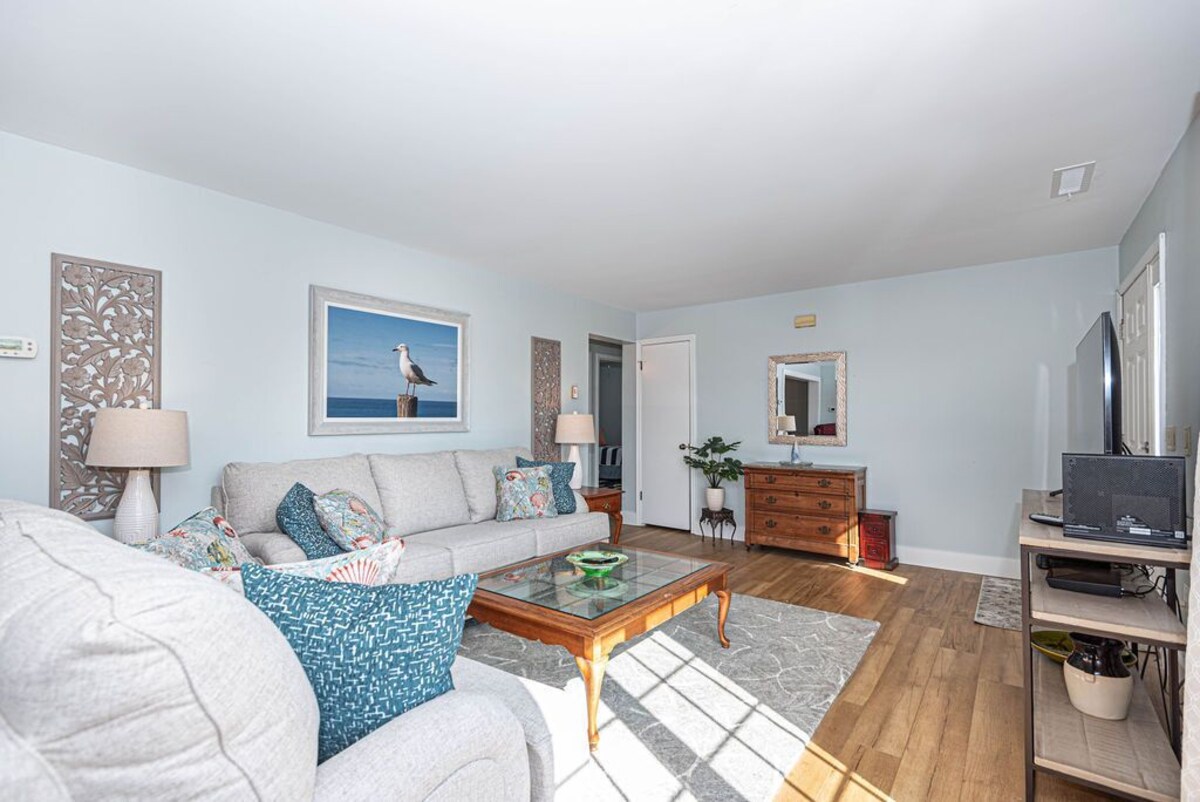 Welcome to Arctic Avenue House a spacious two-story four-bedroom house about 3 blocks from the beach. Amazing 3400 Sqf perfect for the family vacation. The house has first floor big living room that has a Queen sleeper sofa, with bedroom and a full bathroom, a nice laundry room with full size washer and dryer. Up the stairs is the lovely bright and remodel second floor with a beach'y living room decor, nice and open kitchen with Stainless steel appliances and corian counter top, dinning room . The second floor has three bedrooms and two full bathrooms. This property offers a fully stocked remodeled kitchen . The living room on the second floor has two couches and beautiful beach decor. There is also a second living room on the first floor. There are four bedrooms and three bedrooms in this house. Each bedroom has its own smart TV as well as one in each living room and dining area. This home is freshly painted as well as new flooring throughout and newly decorated. There is also additional outside space with a second story balcony to enjoy after a day at the beach. This property also has the added convenience of a full-size washer and dryer. This property has in located in a quiet neighborhood and is within walking distance to a tot lot and tennis courts, Lombardis pizza, Liquid Assets and several other restaurants, Acme grocery store, and a coffee shop. With the great location and sleep capacity of 10 there is plenty of room for a great family vacation. Arctic Avenue is a special residential area where there cannot be more than four unrelated guests occupying the property. Bed Sizes: BR1: King BR2: Queen BR3: Two twin beds BR4: Two twin beds LR: QSS Amenities: Seven flat screens smart TVs, one car garage, two off street parking spots, central air conditioning, free WIFI, dishwasher, disposal, Keurig coffee maker, ice maker, full size washer and dryer and ceiling fans. This property is pet-friendly and does not allow smoking. Shoreline Properties rents to families and responsible individuals over the age of 25. Pet fee $250 per pet, limited to tw0 dogs, no cats. Our prices include all fees. No hidden fees.
