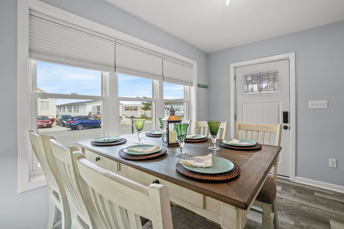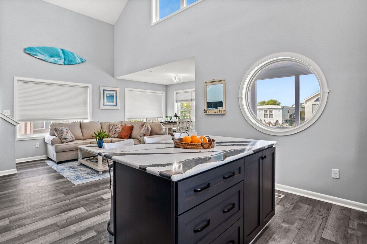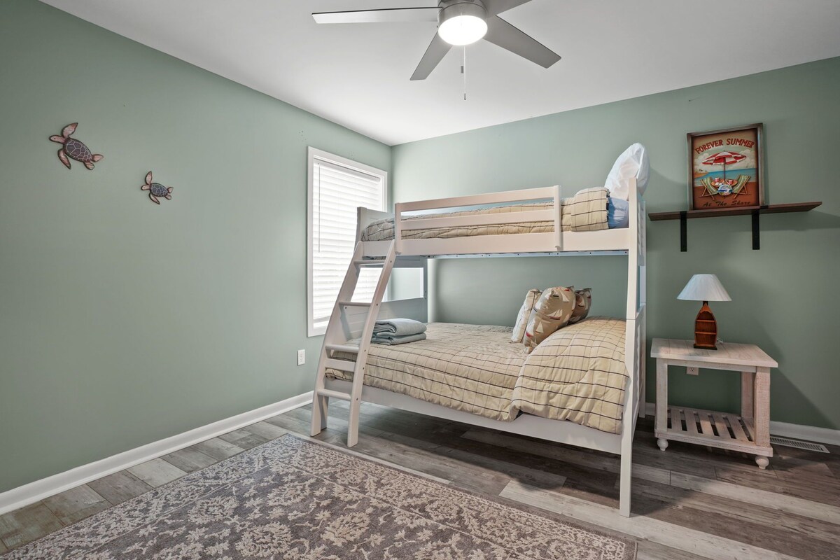 Experience the quiet family friendly neighborhood while comfortably staying close to the beach, restaurants, bars, shopping centers, parks and more. Between Memorial Day and Labor Day enjoy access to community pools, tennis courts, mini golf, fishing pier, walking/jogging/biking at no additional cost. 10% Discount on weekly bookings! Due to our insurance policy, we're unable to rent to guests under the age of 25, even if a parent secures the rental. This policy applies whether parents are present or not during the stay. The space This new home sleeps up to 11 people - Laundry room on site - Fast free Wi-Fi - Central air conditioning and heating - 2 cars off street parking - 3 BR (each w/ own TV) and ceiling fans /1 bathroom on each floor Downstairs - High ceiling that allows plenty of natural light to brighten the open concept living/dining/kitchen space - Coffee maker, toaster, Keurig, stove, 2 ovens, microwave - Cozy dining area for meals with the family - 65-inch TV - 1 Bedroom with queen bed and 43-inch TV - 1 Bedroom with a twin over full bunk bed and 43-inch TV - 1 full bathroom - Laundry room with full size washer and dryer Upstairs - Master Bedroom with view of the bay, king size bed and queen pullout couch and 50-inch TV. - Open space in front of bedroom serves as an office w/ additional queen pullout couch - Full bathroom Patio - Table with 8 chairs - Umbrella - Gas grill ***PLEASE NOTE: bed linens and bathroom towels are provided. Guests must bring their own beach towels Key card for pool access is $200 for replacement if lost License number 86147 Our prices include all fees. No hidden fees.