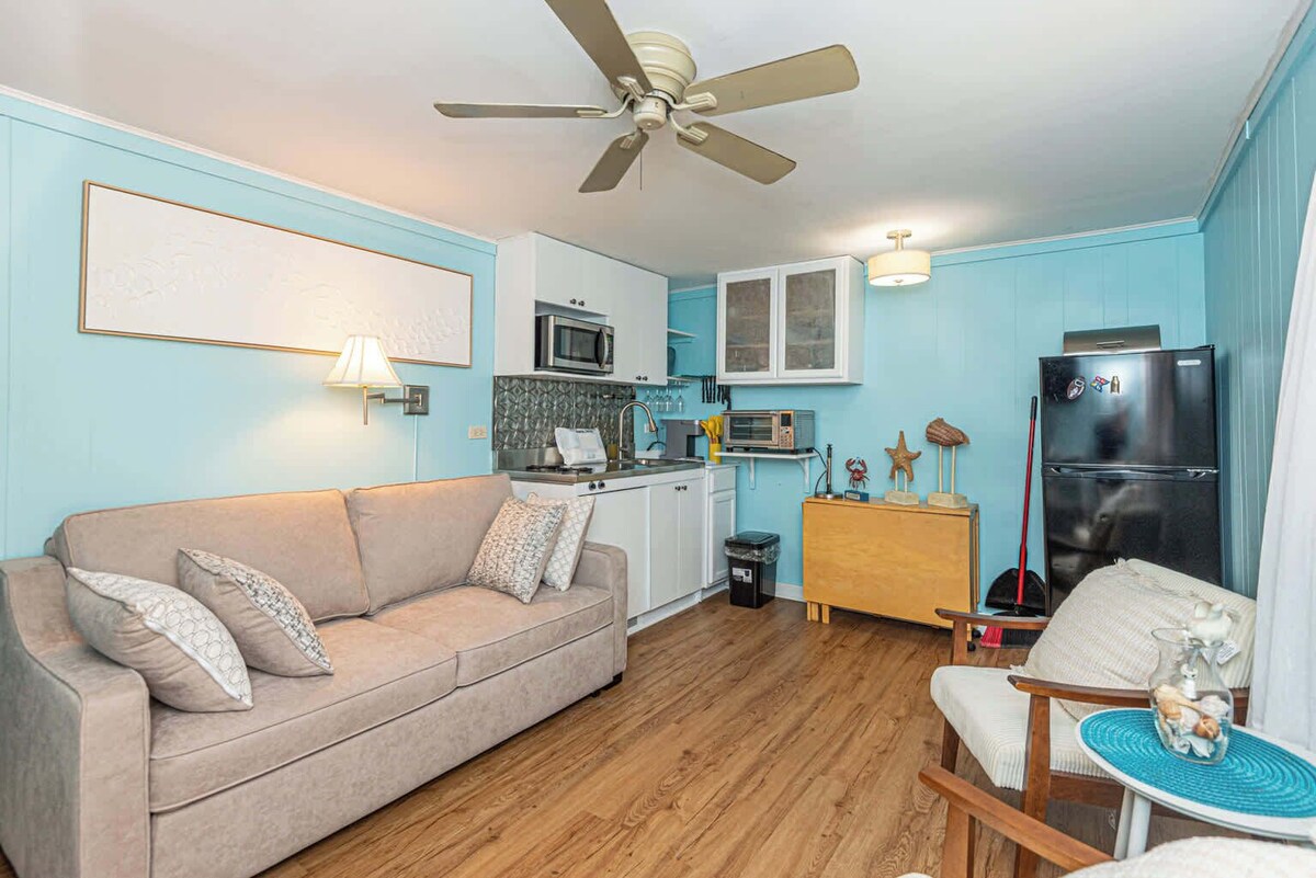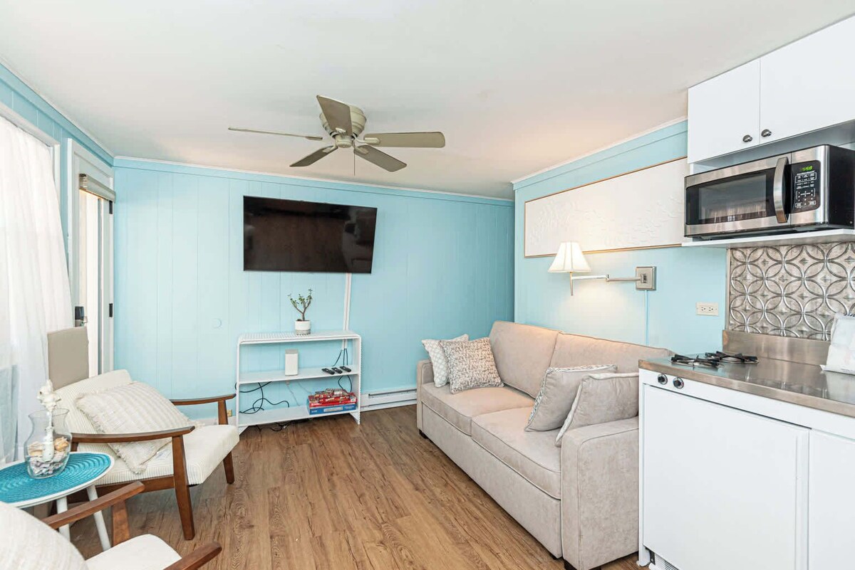 Summary: Amazing bayside efficiency perfect for your next beach vacation. 1 bedroom and 1full bath with a kitchenette close to the beach, the boardwalk, and all that Ocean City has to offer. Suitable for 4 guests with a queen bed and a pull out sofa. Dining table and chairs tucked away to allow for more space. Enjoy your morning coffee on your own balcony area. Walkable to Jolly Rogers and numerous \ restaurants as well as a short walk to the beach. 1 dog allowed with pet fee. Guest Access: Smart lock on the door & you will receive a unique door code for your stay; arrival instructions will be sent out several times during the week leading up to your stay VIA EMAIL. If you do not sign the renter agreement, the arrival instructions will not send out. Please ensure that is properly signed when you book to make it easier. CHECK SPAM folder if you do not see the arrival instructions in your email box! THX The Neighborhood: Ocean City has adopted a noise control ordinance that makes it unlawful to cause or permit noise levels which exceed those established by the Department of the Environment of the State of Maryland (COMAR 26.02.03.02) or are in violation of Chapter 30, Article V of the Town Code. It shall be a violation of this agreement and grounds for eviction under Maryland law if these noise levels are exceeded as a result of activity on this property. Ocean City has other noise ordinances, which are criminal offenses if violated. Guest entry instructions: This rental utilizes an E-lock, a digital lock that requires a unique code to enter. This code is reset after each guest's stay. Our prices include all fees. No hidden fees.