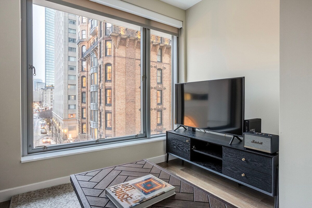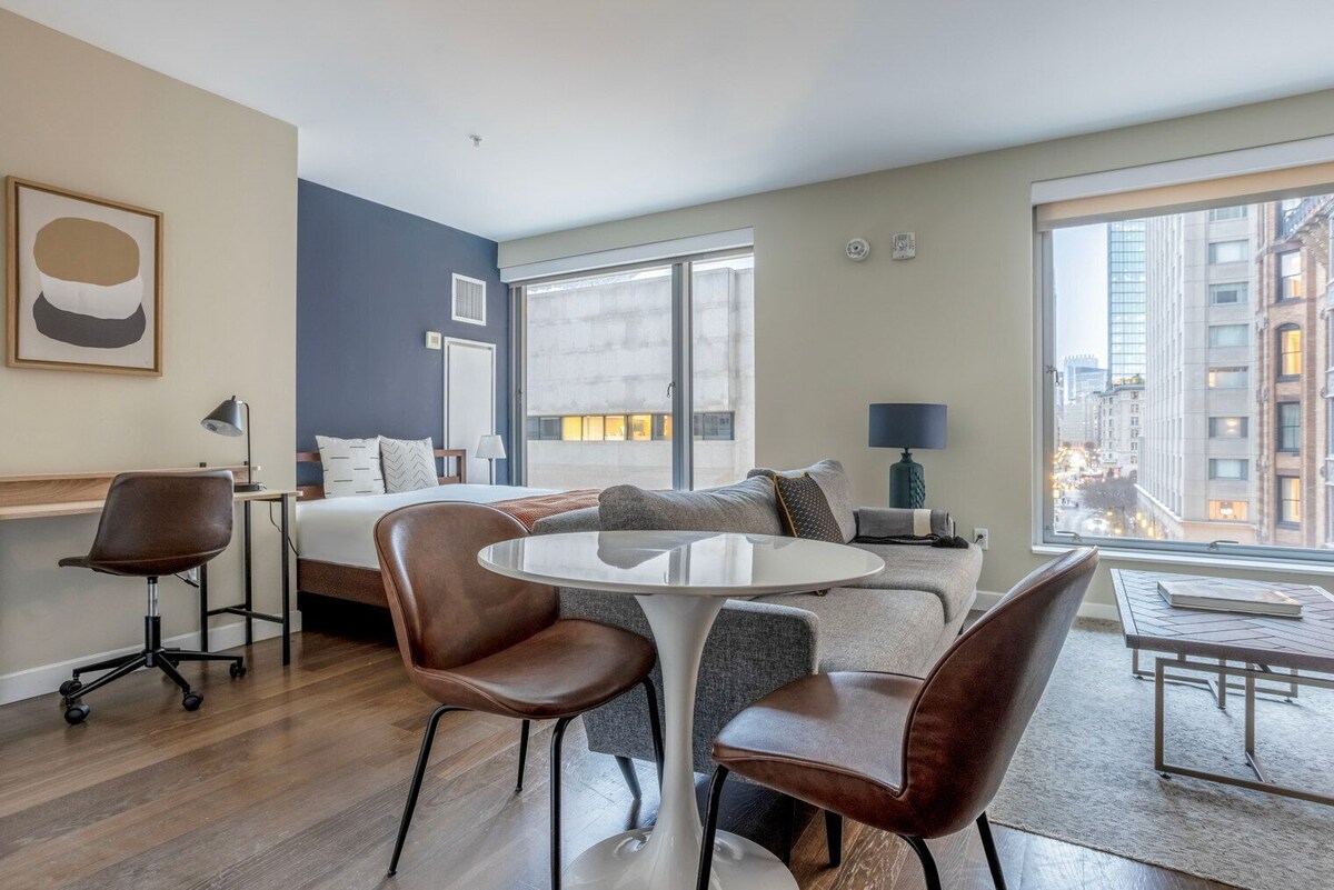 Show up and start living from day one in Boston with this stylish studio Blueground apartment. You’ll love coming home to this thoughtfully furnished, beautifully designed, and fully equipped Prudential / St. Botolph home with stunning views over the city. (ID #BOS868) Designed with you in mind Thoughtfully designed with bespoke finishes, modern furnishings, and a fully equipped kitchen, you’ll enjoy that “I’m home” feeling with this Blueground apartment. Whether you’re lounging in your stylish living room streaming the latest and greatest entertainment on the smart TV or premium wireless speaker, or getting some well-earned rest on the superior quality mattress with luxury linens, you’ll fall in love with everything this Prudential / St. Botolph apartment has to offer. This apartment also offers in-apartment laundry. Sleeping arrangements Queen Bed, 63in/160cm Amenities Building amenities unique to this studio apartment include an on-site: - Doorman - Dryer - Elevator - Washing machine - Parking - Pets allowed Arrival and ongoing support The entire apartment is yours to enjoy! Throughout your stay, you’ll have access to our Client Experience team through the Blueground App. You can schedule additional cleanings, submit maintenance requests, and view our neighborhood recommendations with just a few taps. We’ll share all details upon confirmation of your stay. Other things to note This Blueground apartment has flexible lease options, allowing you to book it for one month, a year, or more. Pets are welcome, though weight limits and breed restrictions apply and may incur fees. Parking is offered based on availability and is subject to a fee. We take great pride in ensuring every photo displayed is shot in our own units with our actual furnishings. That said, we regularly refresh our decor and furniture arrangement, which may differ from what’s pictured. A security deposit of $500 is required at booking, which will be returned within 2-4 weeks after the check-out, minus any deductible damages. Our prices include all fees. No hidden fees.