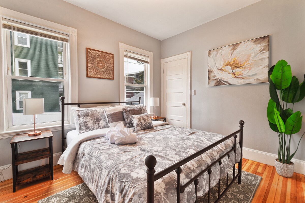 Relax with this centrally located home offers the best of both worlds: a peaceful suburban feel and easy access to Boston's cultural diversity. You are also within a mile of Castle Island Beach and numerous restaurants. This well-maintained first-floor unit has three bedrooms, one bathroom, and a modern, cozy interior for a true \ experience. With two parking spaces and a 7-minute walk to the JFK/UMass train station, it is a convenient and comfortable place to stay. Our home is meticulously maintained and sparkling clean, ensuring a pleasant and comfortable stay for our guests. The quiet 3 bedrooms and 1 bath home features: - 1st Bedroom – 1 king-size bed - 2nd Bedroom – 1 queen size bed - 3rd Bedroom –2 full-size bed In this home, each room is defined by walls and doors, creating distinct and private spaces. The living room is a cozy retreat where families and friends can enjoy intimate gatherings. The kitchen is a self-contained area, not open to the living room, allowing for more focused meal preparation and cooking without distractions. A small breakfast nook is tucked away in a corner, providing a private spot for one-on-one time or quiet meals. The decor in this home combines a vintage charm with modern elements, creating a unique and eclectic atmosphere. The combination of these design elements results in a home that feels cozy, private, and full of personality. Included Features: - High-Speed Internet and WIFI - Linens, Pillows and Towels Provided - Fully Equipped Kitchen - Coffee Maker and Introductory supply of Coffee and Sugar Attractions nearby: \ is one word that aptly describes Dorchester. This neighborhood offers a rich tapestry of cultures and experiences, allowing you to take a train ride into Boston to explore its historic attractions or drive down Dorchester Ave to savor a wide array of ethnic cuisines. Additionally, a short car ride can lead you to the nearest beach, providing the opportunity to bask in the sunlight and take leisurely walks along the sandy shore. Dorchester truly embodies diversity and the chance to enjoy both urban and natural experiences. Boston Logan Airport: Only 4.6 miles away for easy travel access. Faneuil Hall Marketplace: A shopper's paradise with America's first retail cart specialty and a haven for Boston foodies, complete with live entertainment options. Boston Public Garden: Just 3 miles away, featuring lush green grass, century-old trees, and historical architecture, perfect for relaxation and exploration. Additional Notes: Ensuring your safety and the security of our home is our top priority. The property features exterior security cameras and an interior noise monitoring system. Must be 25 to book, no groups of young adults under 25 years old No smoking No Pets No parties or Events Quiet Hours 9:30 pm -9:00 am Our prices include all fees. No hidden fees.