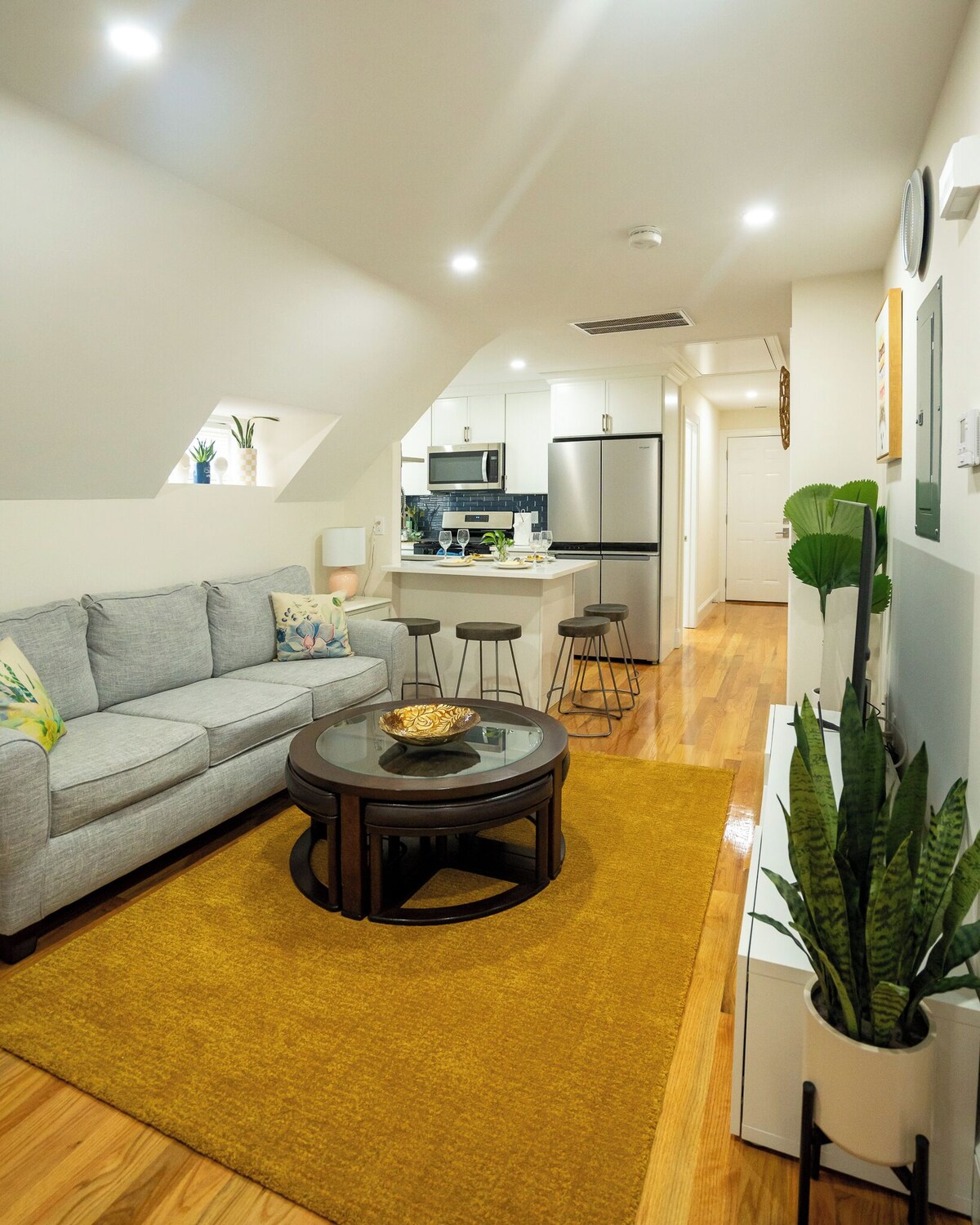About this Space We’d love to welcome you to our stunning, newly furnished 3-bedroom apartment! Located on the 3rd floor of a charming 3-story building, this spacious 1,300 sq. ft. apartment offers a cozy retreat for up to 13 guests. Please note: The apartment is on the 3rd floor with no elevator, so consider this if you have elderly travelers in your group. The Space Our apartment is thoughtfully designed with a spacious, open-concept layout where the living room, kitchen, and dining areas connect seamlessly. It's an ideal place for relaxing weekends, business trips, or family reunions. Apartment Highlights: Living Room: A cozy sofa and a 60” smart TV create the perfect spot for entertainment or relaxation. Kitchen: Fully equipped with a natural gas stove, oven, fridge, dishwasher, and microwave. A fully stocked kitchen lets you prepare meals with ease. Coffee lovers will appreciate the Keurig machine and coffee pods at the coffee bar. Dining Area A designated space to enjoy meals together. Bedrooms: - Bedroom 1: 1 queen bed - Bedroom 2: 2 bunk beds. (Twin over full) - Bedroom 3: 1 queen bed and 1 bunk bed (twin over full) Bathroom: 1 full bathroom with essential toiletries. Amenities: - Central air conditioning and heating. - Washer and dryer located in the basement for your convenience. - Laundry area is set up in the basement for your convenience. Guest Access Pets Allowed: Your furry friends are welcome! Self Check-In: Convenient self check-in using a keypad. Parking: 1 on-site parking space and additional street parking available. Other Things to Note *Additional Information We live nearby and are available via phone or Vrbo messaging to assist with any questions during your stay. Extra Guest Fee: After 5 guests, an additional fee of $25 per guest per night applies. Pet Fee: $45 per pet per night. *Important Guest Policy & House Rules Security: The property is equipped with: • A security camera at the entrance for your safety. • Smoke alarms and other essential safety features. Registered Guests Only: • The property accommodates up to 13 guests, with bedrooms opened based on the number of guests registered on Vrbo. • Unregistered guests are strictly prohibited and will not be allowed to stay. We reserve the right to verify occupancy using security cameras. 🚭 No Smoking Smoking is strictly prohibited. A $250 fine applies for violations. ❌ Strict No Party Policy No parties, events, or gatherings are permitted. Violations may result in immediate cancellation without a refund and a $250 fine. • This includes bachelor/bachelorette groups. • Quiet hours begin at 10:00 PM – 7:00 AM no loud talking on decks or in common areas after this time. • Violations will result in immediate cancellation with no refund, and the security deposit will be forfeited. Disclaimer and Liability Waiver By staying at this property, all guests acknowledge and agree to the following: Assumption of Risk: Guests assume all risks associated with their stay, including but not limited to accidents, injuries, or loss of personal belongings. Liability: The host is not liable for any injuries, accidents, or loss/damage to personal property occurring on the premises during the guest’s stay. Damages: Any existing damage or broken items must be reported and confirmed at the time of check-in. Guest Responsibility: Guests are fully responsible for any damage or loss that occurs during their stay. Deposit Use: In the event of damage or loss, the host reserves the right to use all or part of the security deposit to cover repair or replacement costs. Further charges may apply if damages exceed the deposit amount. Zero Tolerance for Police Visits: Any visit from local law enforcement will result in immediate eviction without refund. Booking Confirmation = Rule Agreement By reserving your stay, you agree to these rules. Let's work together to ensure a safe and enjoyable experience for everyone! Our prices include all fees. No hidden fees.