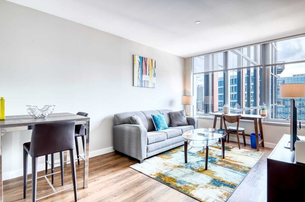Summary: VIA is located in Boston’s vibrant Seaport neighborhood. Enjoy exclusive amenities like a state-of-the-art fitness center, 24-hour concierge, pet grooming stations, a luxury residents lounge, and over 9,000 sq. feet of outdoor space. The first three floors include retail space with restaurants and shopping. The Space: A head-turning 644 sq. ft. one-bedroom apartment with beautiful city and harbor views, an expansive walk-in closet, and oversized windows providing an abundance of natural light. The Neighborhood: Experience the vibrant lifestyle of Boston Seaport, a dynamic waterfront neighborhood brimming with culture, entertainment, and innovation. Seaport Square is full of restaurants, shops, museums, and sightseeing activities. Visit the Children’s Museum, Boston Tea Party Museum, or the New England Aquarium. Stop and have ice cream at the Milk Bottle outside the Children’s Museum or visit the Fire Museum with vintage Boston Fire Equipment across the way. While staying in the Seaport, you’ll always have somewhere to explore. Getting Around: Living at VIA in Boston Seaport offers convenient access to public transportation. The nearby Silver Line World Trade Center Station provides quick connections to downtown Boston and Logan International Airport. Additionally, the Courthouse Station, served by the Silver Line, offers direct access to South Station, allowing for easy connections to commuter rail lines and Amtrak services. Other Things to Note: We utilize Authenticate for identity verification. If a booking does not pass the identity check, we reserve the right to cancel the reservation. Interaction with Guests: Check-in instructions will be provided via email 7 days and 24 hours before check-in. Our prices include all fees. No hidden fees.