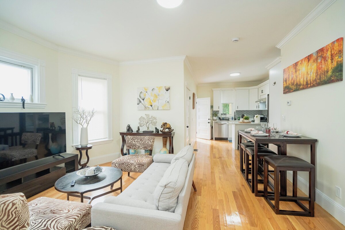 Welcome to your home away from home! Our house is completely newly renovated, spacious. We meticulously take care of every small detail and every decorative item in the house with the desire to bring you a close and cozy feeling like being in your own beloved home. It is just 12 mins drive to Downtown Boston - an ideal place for families, groups or business travelers. Located on a quiet street, our house is within walking distance of bus and subway stations, lively restaurants, bars and shopping centers (Dollar Tree, Walgreens, HARP + BARD, ...), park... Quiet, mature neighborhood, very close Savin Hill station (red line) and it is only 3 minutes by walk. - 3.7 mil to Downtown Boston - 1.2 mil to Malibu Beach - 0.8 mil to Savin Hill Park - 3.5 mil to Measeum of Fine Arts, Boston - 4.9 mil to TD garden - 7.6 mil to Fenway - 8.2 mil to Harvard and MIT - 3.5 mil to Chinatown - 2.6 mil to Franklin Park zoo, William J - 2.1 mil to JFK library - 3.8 mil to Boston’s Major hospital Longwood - 5.6 mil to Logan International Airport - 1.2 mil to South Bay shopping - 7.5 mil to Encore Casino - 3.6 mil to Boston Convention and Exhibition Center. @ The space The apartment is fully furnished, thoughtfully designed and well decorated complete with central air and heating. An open living room, dining area, fully stocked kitchen. There are 2 car parking lots on site and the laundry in-building are really the plus for our guests. The apartment is located on the 1st floor with 3 bedrooms 1.5 bathrooms main floor is well suited for business travelers, families, weekend get-always, and a home away from home during renovations. - Living room with 65”smart-TV, and comfortable seating area. - Bedroom 1: 1 king bed and smart TV - Bedroom 2: 1 queen bed, 1 bunk bed and smart TV - Bedroom 3: 2 bunk beds and smart TV - 1 full bathroom and a half bath with full toilet papers, bath towels, shampoo, conditioner, shower gel, hand soap. - The kitchen is fully stocked with cooking/serving necessities, including cookware, pots, pans, plates, cups. We provide coffee pods, sugar and some water bottle in the refrigerator. You can also enjoy the deck in the back of the house off the kitchen. Includes Hi-Speed WIFI, Smart TV, and Smart-Lock for easy independent access. Please kindly read the following rules before making the reservation: 1. Must provide each guest’s name to meet the number of guests on the reservation before checking in time. This is to ensure the right people and right number of guests coming to stay. We have exterior camera can check this anytime. If you stay with wrong number of guests, we have a right to terminate your reservation with no refunds. 2. Any extra or unexpected guests must be notified before checking in. There will be extra charges. No extra guests are allowed on the property without prior agreement. Only registered guests in the Vrbo Reservation are permitted to stay. 3. Any visitors, overnight guests without previous approval from us, or joining in any illegal activities in our property will result in the cancellation of your reservation without a refund. 4. No parties, events, no smoking, and please no heavy drinking. No illegal activities anywhere on the property, this includes drugs and internet activity, illegal downloading. If you are intoxicated and causing disturbances and destruction to our property, while on our premises, you will be evicted. You will be reported to Vrbo and leave the house immediately without any refunds. Any visit from the local police department will result in immediate eviction without refund too. 5. Please also be mindful of our neighbors, and keep the noise to a normal level, especially when coming or leaving early in the morning or late at night. The quiet time is from 10:00 PM to 8:00 AM 6. Our kitchen is limited for light cooking only and not intended for heavy cooking for a large group. 7. An additional cleaning fee will be charged, if an excessive amount of mess you left behind or stains on the rugs or carpets, that requires special cleaning services. 8. Guests agree to book under the understanding that the hosts are not responsible for any accidents, injuries, or illness that occur while on the premises, and that the hosts are not responsible for the loss of guests' personal belongings or valuables and that, by accepting this reservation, it is agreed that all guests are expressly assuming the risk of any harm to themselves arising from their use of the premises or to others whom they invite to use the premise. 9. We use Ring and Noise Aware in our homes. Ring is a video recording system that has been installed at the front/back doors of the home’s EXTERIOR ONLY, for your safety. NoiseAware is a decibel monitoring system installed in the living room that we use to keep in accordance with local noise regulations. 10. We have exterior only security cameras for the safety of both our guests and property. These cameras are actively recording both audio and video outside all entrances and side doors. Any tampering with cameras, including, but not limited to covering and otherwise disabling of these cameras are grounds for early termination of reservation with no refunds whatsoever. (*) NOTE FOR THE PET LOVER: - The extra fee will be charged for EVERY PET together. Extra pet fee: $45 per pet per night. - We love cat but we do apology, your cat will be welcome if the owner have the properly protect methods ( i.e. the furniture sheet covers, cat's claw's protector, cat's cage...) - Follow the other pet rules: + No pet on the furniture/bed + Clean up your pet’s waste carefully + Bowls in the kitchen + Dogs must be leashed + Before you leave, pls sweep any pet hair and dispose of waste in outside trash. Book now to start your unforgettable stay! Our prices include all fees. No hidden fees.