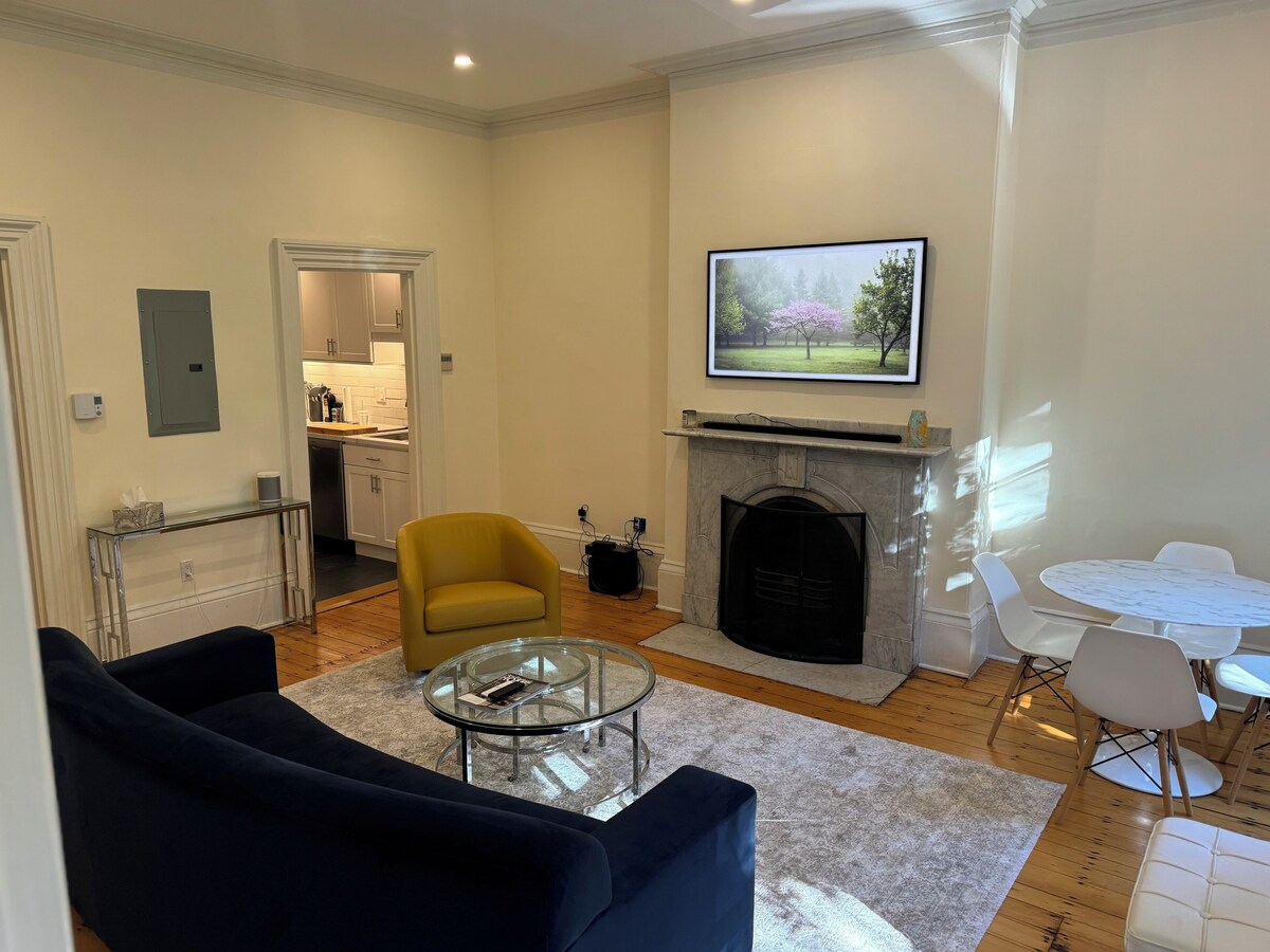 Discover your perfect Boston retreat in this newly available and beautifully appointed 2B/2B brownstone unit in the heart of the vibrant South End. This stylish, spacious apartment offers the perfect blend of historic charm and modern luxury. Located on the most sought-after, quiet, tree-lined street, you’ll be steps away from some of the city's best dining, boutique shopping, and all that Boston has to offer. Overlooking historic Union Park with its two fountains and green space, this unit features two well-appointed bedrooms, the primary bedroom has a king bed with ensuite bath, second bedroom has queen size bed with workspace directly overlooking the fountain in the park. The open-concept living area invites you to relax with its cozy seating, large flat-screen TV, and an intimate dining area perfect for meals at home. Our prices include all fees. No hidden fees.