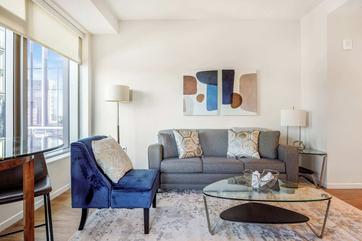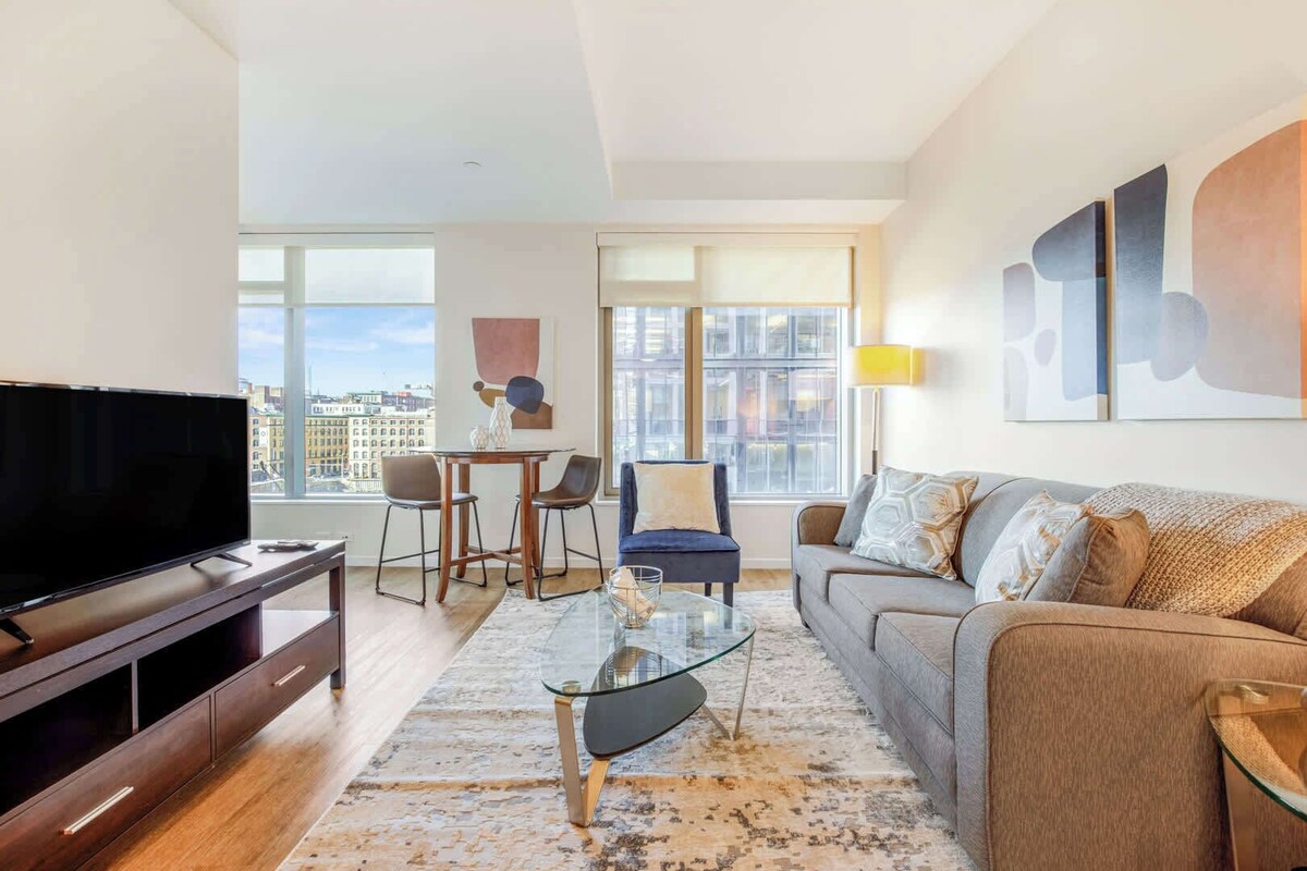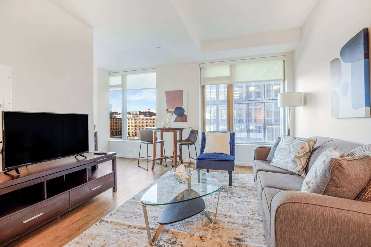 Summary: Experience luxury living at its finest at The Alyx at EchelonSeaport, a premier landmark residence nestled in the vibrant Seaport neighborhood. Indulge in the resort-style amenities, including an inviting outdoor pool and cozy fire pits perfect for evening cocktails. Stay fit in the state-of-the-art fitness center, enjoy a friendly game of pool, or savor a fresh brew from the complimentary java bar in the lobby. The Space: A chic and modern 654 sq. ft. one-bedroom apartment with oversized windows, modern decor, and a kitchen island. The Neighborhood: Experience the vibrant lifestyle of Boston Seaport, a dynamic waterfront neighborhood brimming with culture, entertainment, and innovation. Known for its bustling dining scene, Boston Seaport offers a diverse array of gourmet eateries and trendy bars. The neighborhood is also home to cutting-edge art galleries, world-class museums, and a thriving tech hub, making it a hotspot for creativity and innovation. With its stunning waterfront views and easy access to downtown Boston, the Seaport district offers an unmatched urban living experience. Getting Around: Living at The Alyx at Echelon Seaport in Boston, MA, offers excellent access to public transportation. The nearby MBTA Silver Line station at Courthouse provides quick connections to downtown Boston and Logan International Airport. Additionally, the South Station transportation hub is within walking distance, allowing for easy access to commuter rail lines and Amtrak services Other Things to Note: At Compass Furnished Apartments, the security and integrity of our bookings are our top priorities. We utilize Authenticate for identity verification to ensure a safe and trustworthy experience for all our guests. Please Note: If a booking does not pass the identity verification process, we reserve the right to cancel the reservation. We appreciate your understanding as we strive to maintain a secure environment for everyone. Interaction with Guests: Check-in instructions will be provided via email 7 days and 24 hours before check-in. Our prices include all fees. No hidden fees.