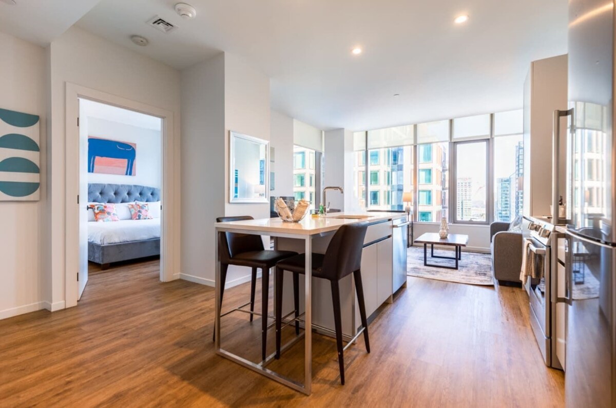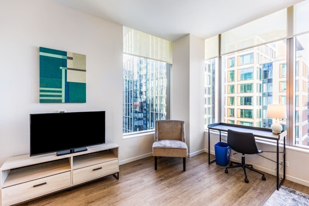 Summary: Experience luxury living at its finest at The Alyx at EchelonSeaport, a premier landmark residence nestled in the vibrant Seaport neighborhood. Indulge in the resort-style amenities, including an inviting outdoor pool and cozy fire pits perfect for evening cocktails. Stay fit in the state-of-the-art fitness center, enjoy a friendly game of pool, or savor a fresh brew from the complimentary java bar in the lobby. The Space: A beautiful and bright 677 sq. ft. one-bedroom apartment featuring oversized windows with partial courtyard & city views, colorful artwork, and a breakfast bar. The Neighborhood: Experience the vibrant lifestyle of Boston Seaport, a dynamic waterfront neighborhood brimming with culture, entertainment, and innovation. Known for its bustling dining scene, Boston Seaport offers a diverse array of gourmet eateries and trendy bars. The neighborhood is also home to cutting-edge art galleries, world-class museums, and a thriving tech hub, making it a hotspot for creativity and innovation. With its stunning waterfront views and easy access to downtown Boston, the Seaport district offers an unmatched urban living experience. Getting Around: Living at The Alyx at Echelon Seaport in Boston, MA, offers excellent access to public transportation. The nearby MBTA Silver Line station at Courthouse provides quick connections to downtown Boston and Logan International Airport. Additionally, the South Station transportation hub is within walking distance, allowing for easy access to commuter rail lines and Amtrak services Other Things to Note: At Compass Furnished Apartments, the security and integrity of our bookings are our top priorities. We utilize Authenticate for identity verification to ensure a safe and trustworthy experience for all our guests. Please Note: If a booking does not pass the identity verification process, we reserve the right to cancel the reservation. We appreciate your understanding as we strive to maintain a secure environment for everyone. Interaction with Guests: Check-in instructions will be provided via email 7 days and 24 hours before check-in. Our prices include all fees. No hidden fees.