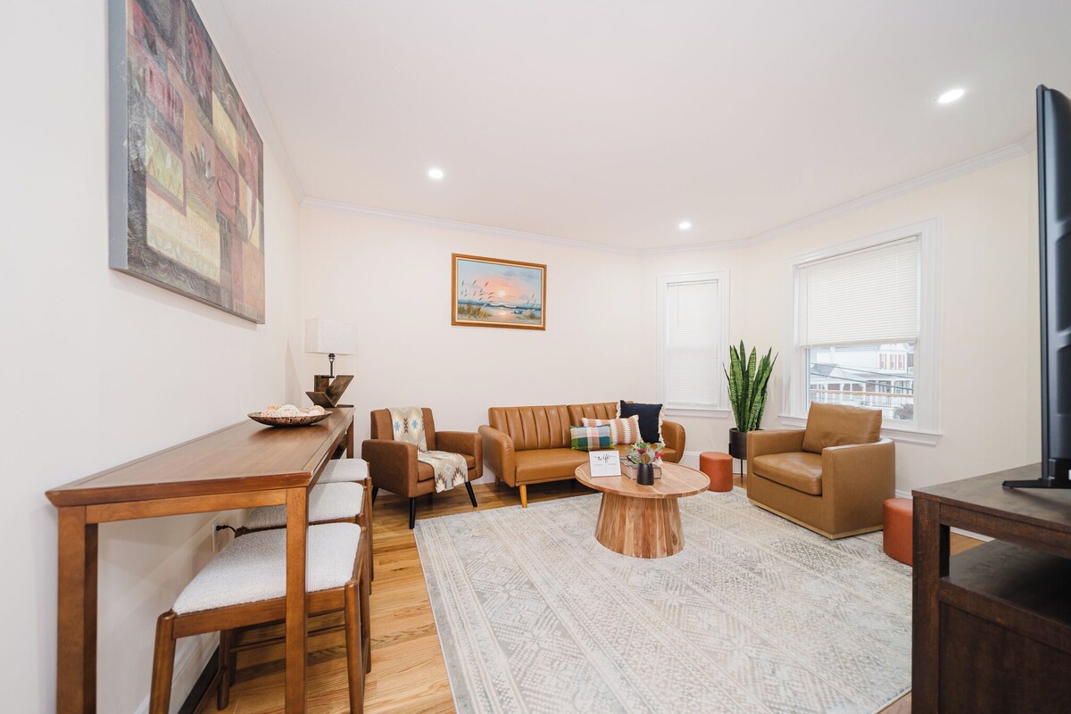Welcome to our newly renovated 5 bedroom townhouse in Boston! This spacious 2300 sq. ft. 5-bedroom, 3-bathroom home accommodates up to 16 guests, perfect for families or friends. Located in a peaceful area with easy access to attractions, this space offers a family-friendly atmosphere. A reserved parking spot ensures a hassle-free stay, ideal for multigenerational trips. The space We’re proud to offer you a beautifully designed space with all the comforts of home: 🛋️ Living Room: A comfortable sofa and 75” UHD cable TV for relaxing and spending quality time together. 🛏️ Bedrooms: Bright, naturally lit rooms, each equipped with cozy beds: 1. Bedroom 1: 1 King Bed 2. Bedroom 2: 1 Queen Bed 3. Bedroom 3: 1 Queen Bed + 1 Bunk Bed (twin over full) 4. Bedroom 4: 1 Queen Bed + 1 Bunk Bed (twin over full) 5. Bedroom 5: 1 Full Bed + 1 Toddler bed 🍳 Kitchen: Fully equipped with everything you need to prepare meals and feel at home. 🛁 Bathrooms: Three full bathrooms, each stocked with fresh towels and essentials for your convenience. 🌟 Amenities: Free Wifi & Parking Bed sheets, shampoo, shower gel, and hair dryer Central air conditioning and heating Washer/dryer Guest access 🔑 Self Check-In: Convenient self check-in using a keypad. 🚗 Parking: 1 parking spot reserved at the rear of the house, with additional free street parking available in front of the house. The Host is not responsible for parking tickets or violations on street. Other things to note **Additional Information 📞We live nearby and are available via phone or Vrbo messaging to assist with any questions during your stay. 1. Early Check-In and Late Check-Out: Available upon request, subject to availability. 2. Supplies Provided: We stock essentials such as toiletries, cleaning supplies, and coffee pods for your convenience. 3. Nearby Dining and Activities: The area offers a wide range of dining options, cafes, and recreational activities within a short distance. 4. Special Requests: Let us know if you have any special requests or need recommendations for local attractions, restaurants, or services. 5. Extra Guest Fee: After 7 guests, an additional fee of $25 per guest per night applies. Pet Fee: $35 per pet per night. 6. Security: - Cameras at the entrance for your safety. Blocking or disconnecting these will lead to immediate termination of your stay with no refund. - Smoke alarms and safety features are in place. 7. Registered Guests Only: Accommodates up to +16 guests. Unregistered guests are prohibited. Occupancy will be verified via cameras. **House Rules & Policies 🕒 Check-In: 3 PM | Check-Out: 11 AM 🔞 Age Requirement: 18+ to book, government ID required. 🚭 Smoking, Drugs, and Vaping: Not allowed inside and outside the property. A $250 fine will be imposed if violated. 🎉 Parties & Loud Music: No parties allowed. Quiet hours are from 10 PM - 7 AM. If it is determined that guests are having a party or neighbors report complaints/call the police, guests will be asked to leave immediately without refund. A $1,000 fine will be imposed. ⚠️ Disclaimer and Liability Waiver By staying at this property, all guests acknowledge and agree to the following: Assumption of Risk: Guests assume all risks associated with their stay, including but not limited to accidents, injuries, or loss of personal belongings. Liability: The host is not liable for any injuries, accidents, or loss/damage to personal property occurring on the premises during the guest’s stay. Damages: Any existing damage or broken items must be reported and confirmed at the time of check-in. Guest Responsibility: Guests are fully responsible for any damage or loss that occurs during their stay. 👶 Overnight Guests: Guests exceeding the number stated in the reservation are not allowed. 📦 Mail & Packages: We do not allow mail or packages to be sent to the property. Items (e.g., Amazon) can be delivered to the door or a local FedEx/UPS store. 🎬 Special Activities: Without written consent from the Host, activities such as filming, professional photography, events, or music recording are prohibited and will incur additional location fees. Contact the Host for location fees. 🏠 Property Care: Guests are expected to keep the property and furnishings in good order and maintain a respectable level of cleanliness. ⏳ Late Check-Out: Unauthorized late check-out will incur a $100/hr fee. Check-out time is 11 AM. 💡 Booking Confirmation = Rule Agreement: By proceeding with this booking, you agree to the terms outlined above. Let’s ensure a safe and enjoyable experience! Our prices include all fees. No hidden fees.