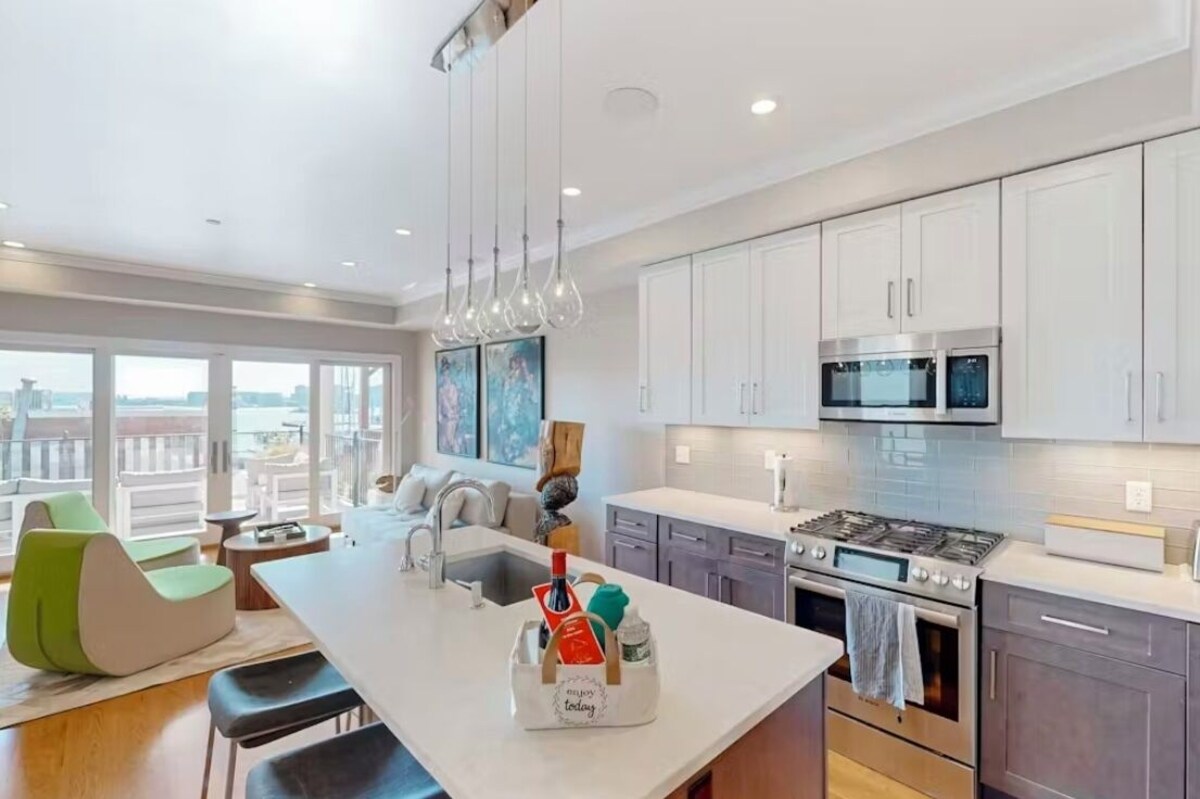 Stunning Waterfront 3-Bed, 2.5-Bath Condo with Breathtaking Boston Skyline Views Welcome to your dream home away from home - a beautifully appointed 3-bedroom, 2.5-bathroom waterfront condo that offers luxury, comfort, and unparalleled views of the iconic Boston skyline. The Heart of the Home: A Light-Flooded, Open Living Concept. As you enter the condo, you are immediately struck by the expansive, light-filled open living area. The open-plan design creates a seamless flow between the living room, dining area, and kitchen, making it an ideal space for intimate gatherings. The living room is anchored by a huge gas fireplace, which adds warmth and sophistication to the space. For your entertainment needs, the condo is equipped with a 77-inch LG Smart TV, perfect for movie nights, sports events, or simply enjoying your favorite shows in luxurious comfort. A Chef’s Dream Kitchen: The state-of-the-art kitchen is a chef’s dream, featuring high-end stainless-steel appliances, sleek custom cabinetry, and plenty of counter space for preparing gourmet meals. Whether you're hosting a dinner party or cooking a casual meal for yourself, the spacious kitchen provides everything you need to create culinary masterpieces. Private Outdoor Oasis: Two Decks and a Beautiful Garden One of the most striking features of this condo is the private outdoor space. The upper deck is perfect for hosting al fresco meals and sipping a cocktail in front of the gas firepit, while the lower deck offers a more intimate retreat for enjoying the hot tub and the private garden that further enhances the sense tranquility and connection to nature. Inside, the lower level of the condo features luxurious floor heating, ensuring your comfort throughout the year. The heated floors create a warm and inviting atmosphere, especially on chilly winter mornings, offering a level of comfort that is second to none. Spacious Bedrooms with Luxurious Touches The condo offers three spacious bedrooms, each designed with comfort and relaxation in mind. The master suite in the lower level is a true retreat, featuring incredible views of the serene garden. The master bathroom is equally impressive, with modern fixtures, a deep soaking tub, and a glass-enclosed shower. It’s the perfect space to start and end your day in complete serenity. The other two bedrooms are also generously sized, each offering plenty of closet space and room to relax or work. The flexible floor plan allows for customization, whether you need additional guest space, or a home office. A Respectful and Appreciative Community of Tenants This condo attracts guests who appreciate the beauty and elegance of the space and treat it with the utmost care and respect. The community is comprised of individuals who value luxury living, a peaceful atmosphere, and the importance of maintaining a beautiful home. The harmonious blend of natural surroundings, modern design, and high-end amenities ensures that every resident can enjoy the best of both worlds - privacy and connection to the vibrant city just beyond your doorstep. A Prime Location with Easy Access to Boston While you’ll undoubtedly love the peace and beauty of this waterfront retreat, the condo is also ideally located for those who want to be close to the action of Boston. Just minutes away, you’ll find world-class dining, shopping, cultural attractions, and entertainment. Whether you’re heading into the city for work or leisure, you’ll enjoy easy access to everything Boston has to offer, including excellent public transportation, convenient highways and excellent access to Logan Airport (15-minute walk). If you’re looking for a place that offers both a sanctuary to call home away from home and proximity to the vibrant city life of Boston, this is the perfect place for you! Our prices include all fees. No hidden fees.