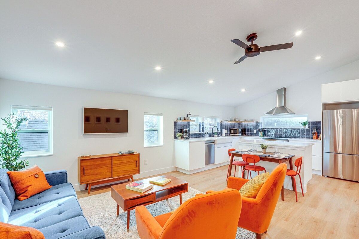 Pet Friendly w/ Fee (1 Pet Max) | Walkable Location | 3 Mi to Downtown Make the most of your Mile High City getaway at this modern vacation rental! This spacious 3-bedroom, 1-bath apartment boasts a secured private entry, a stunning interior, and convenient proximity to attractions, making it easy to balance relaxation and exploration. Spend sunny spring days in Denver Botanic Gardens, enjoy scenic fall foliage, or visit nearby museums and music venues in the winter. Your next escape awaits! -- THE PROPERTY -- 2025-BFN-0000275 SLEEPING ARRANGEMENTS - Bedroom 1: 1 king bed - Bedroom 2: 1 queen bed - Bedroom 3: 1 twin daybed w/ 1 twin trundle - Additional Sleeping: 1 portable crib MAIN FEATURES - Smart TV - Laptop-friendly workspace, board games - Dining table KITCHEN - Stove/oven, refrigerator, dishwasher - Drip & French press coffee makers, toaster, Magic Bullet blender - Cooking basics, dishware & flatware - Trash bags/paper towels - Dining table, high chair GENERAL - Mini-split A/C & heating units (in each room) - Washer/dryer, laundry detergent, iron/board - Linens/towels, complimentary toiletries, hair dryer - Free WiFi, keyless entry - Baby gate FAQ - 2 exterior security cameras (facing out) - Pet fee (paid pre-trip) - Quiet hours (10:00 PM-8:00 AM) - Homeowner on-site (separate unit) ACCESSIBILITY - 2-story apartment, small step required to enter lower level - All bedrooms & bathroom on main level PARKING - Free nearby street parking (first-come, first-served) - Alley access on-site (no parking, loading/unloading & rideshare drop-off only) -- THE LOCATION -- - Beautiful neighborhood with a mix of single-family homes & city feel - Walk to restaurants, nightlife & Bluebird Theater - 0.7 miles to Denver Museum of Nature and Science & 1 mile to Denver Zoo - 2 miles to Fillmore Auditorium & 4 miles to Ball Arena - 1-6 miles to hospitals: National Jewish Health, Rose Medical Center, Presbyterian St. Luke's, UCHealth University of Colorado Hospital - 18 miles to Denver International Airport -- REST EASY WITH US -- Evolve makes it easy to find and book properties you’ll never want to leave. You can relax knowing that our properties will always be ready for you and that we’ll answer the phone 24/7. Even better, if anything is off about your stay, we’ll make it right. You can count on our homes and our people to make you feel welcome — because we know what vacation means to you. -- POLICIES -- - No smoking or vaping on the premises - Pet friendly w/ $100 fee (+ fees & taxes, 1 pet max) - No events, parties, or large gatherings - Must be at least 25 years old to book - Additional fees and taxes may apply - Photo ID may be required upon check-in - Please observe quiet hours from 10:00 PM to 8:00 AM ADDITIONAL INFORMATION - This 2-story apartment requires a small step to enter the lower level. All bedrooms and the full bathroom are on the main level and require 13 steps to access - The homeowner lives in a separate unit on-site and uses the garage and office below the apartment, and may be present during your stay - Your safety matters. This property features 2 exterior security cameras located on the north side of the building (at the end of the breezeway) facing the walkways to the main home entrance. The cameras do not look into any interior spaces. The cameras record video and sound when activated by motion Our prices include all fees. No hidden fees.