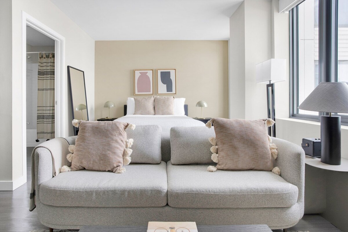 Show up and start living from day one in Boston with this sophisticated studio Blueground apartment. You’ll love coming home to this thoughtfully furnished, beautifully designed, and fully equipped West End home with stunning high floor views over the city. (ID #BOS708) Designed with you in mind Thoughtfully designed with bespoke finishes, modern furnishings, and a fully equipped kitchen, you’ll enjoy that “I’m home” feeling with this Blueground apartment. Whether you’re lounging in your stylish living room streaming the latest and greatest entertainment on the smart TV or premium wireless speaker, or getting some well-earned rest on the superior quality mattress with luxury linens, you’ll fall in love with everything this West End apartment has to offer. This apartment also offers in-apartment laundry. Sleeping arrangements Queen Bed, 63in/160cm Amenities Building amenities unique to this studio apartment include an on-site: - BBQ Area - Dryer - Elevator - Washing machine - Parking - Pets allowed Arrival and ongoing support The entire apartment is yours to enjoy! Throughout your stay, you’ll have access to our Client Experience team through the Blueground App. You can schedule additional cleanings, submit maintenance requests, and view our neighborhood recommendations with just a few taps. We’ll share all details upon confirmation of your stay. Ideally Located This furnished apartment is located in the West End, a centrally-located neighborhood that blends old and new. Home to Massachusetts General Hospital and TD Garden, you’ll also find many corporate headquarters and North Station nearby for easy commuting. The Charles River offers enjoyable waterfront strolls and dog walking routes. All T lines pass through the area and you’re also never far from highway access or catching the Longfellow Bridge over to Cambridge. Other things to note Building amenities may have an extra cost. This Blueground apartment has flexible lease options, allowing you to book it for one month, a year, or more. Pets are welcome, though weight limits and breed restrictions apply and may incur fees. Parking is offered based on availability and is subject to a fee. We take great pride in ensuring every photo displayed is shot in our own units with our actual furnishings. That said, we regularly refresh our decor and furniture arrangement, which may differ from what’s pictured. A security deposit of $500 is required at booking, which will be returned within 2-4 weeks after the check-out, minus any deductible damages. Our prices include all fees. No hidden fees.