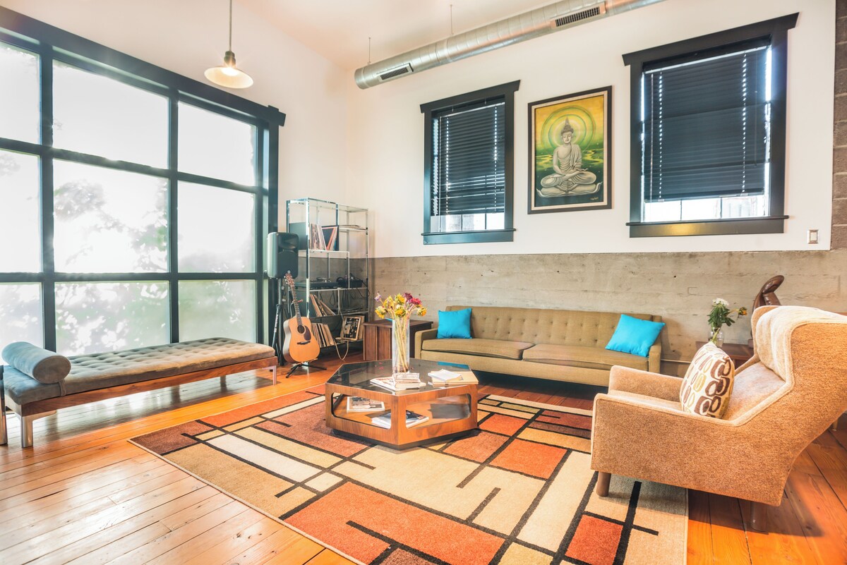 Fabulous urban loft with gorgeous outdoor side hang out area with a pergola and gas fire pit! It has super tall ceilings, reclaimed floors, and an amazing mid-century decor. It's equipped with an amazing sound system and hip funky decor. This a house is a converted commercial space with 18 foot ceilings with an industrial feel at roomy 2550 square feet. It's a very open floor plan with two bathrooms. It's furnished with vintage furniture and art and turntable and plenty of classic vinyl. The Kitchen is commercial grade with a six burner Imperial Stove and Viking Hood. I have everything you might need to cook up a storm. There is also a barbecue outside. One bedroom is upstairs with a king memory foam bed. The bathroom upstairs has a large steam shower that sits at least two if you want to get cozy. The bedroom downstairs has a queen bed. The bathroom downstairs has a massive concrete tub. I can guarantee you won't find a more unique modern place in the city center. Killer new landscaped area with gas fireplace, pergola, gardens, and multiple seating areas. Please note: You need to be cool with a more open floor plan. You can hear others somewhat from one bedroom to the other. Also, for larger parties, there is one king bed, one queen bed, a day bed, a futon, and two couches. I also have a deluxe queen air mattress if you need it. Our prices include all fees. No hidden fees.