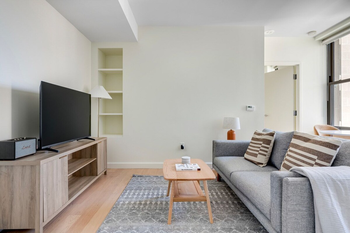 Feel at home wherever you choose to live with Blueground. You’ll love this cozy Bay Village furnished one bedroom apartment with its modern decor, fully equipped kitchen, and beautiful living room. Ideally located, you’re close to all the best that Boston has to offer! (ID #BOS1235) Designed with you in mind Gorgeous furniture, fully equipped kitchen, smart TV, and a premium wireless speaker are just a few of the amenities you’ll find inside this one bedroom apartment. Ideally located in Boston, you’ll find a lot to love outside as well. When you’re ready to relax, you’ll be happy to discover every Blueground bedroom comes with superior quality mattresses, luxury linens, and cozy towels. We handle everything so you can simply show up and start living. This apartment also offers in-apartment laundry. Sleeping arrangements Queen Bed, 63in/160cm Amenities Building amenities unique to this one bedroom apartment include an on-site: - Basketball Court - Doorman - Dryer - Elevator - Game room - Washing machine - Lounge - Pets allowed Arrival and ongoing support The entire apartment is yours to enjoy! Throughout your stay, you’ll have access to our Client Experience team through the Blueground App. You can schedule additional cleanings, submit maintenance requests, and view our neighborhood recommendations with just a few taps. We’ll share all details upon confirmation of your stay. Other things to note Building amenities may have an extra cost. This Blueground apartment has flexible lease options, allowing you to book it for one month, a year, or more. Pets are welcome, though weight limits and breed restrictions apply and may incur fees. We take great pride in ensuring every photo displayed is shot in our own units with our actual furnishings. That said, we regularly refresh our decor and furniture arrangement, which may differ from what’s pictured. A security deposit of $500 is required at booking, which will be returned within 2-4 weeks after the check-out, minus any deductible damages. Our prices include all fees. No hidden fees.