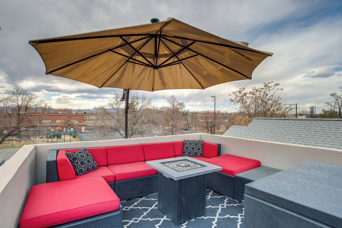 Pet Friendly w/ Fee | 2 Dedicated Workspaces | Home Theater | Mountain & City View Your ultimate stay with family and friends awaits at this vacation rental in Denver! Fire up the grill for a BBQ while your pup roams the fenced front yard. After catching a game at Ball Arena or exploring the Denver Art Museum, return to the modern 3-bed, 3.5-bath duplex for a movie or board game night. Plus, with scooter rentals available right outside the home, getting around the city has never been easier! -- THE PROPERTY -- 2025-BFN-0001173 SLEEPING ARRANGEMENTS - Bedroom Suite 1: 1 king bed - Bedroom 2: 1 queen bed - Bedroom 3: 1 bunk bed (full/full), 1 queen Murphy bed - Theater Room: 2 full sleeper sofas OUTDOOR LIVING - Rooftop deck, gas fire pit, lounge seating, umbrella - En-suite deck w/ turf & seating (access via bedroom suite 1) - Covered patio, gas grill (propane provided), 2-person outdoor dining area - Fenced front yard w/ maintenance-free turf INDOOR LIVING - Smart TVs w/ Roku, Sonos sound system - Gas fireplace - Board games - Dining table, breakfast bar - 2 private desks - 2 en-suite bathrooms, walk-in closet - 2 dedicated workspaces KITCHEN - Fully equipped kitchen w/ double ovens, 6-burner gas stove & large pantry - Refrigerator, dishwasher - Microwave, toaster oven, food processor - Keurig coffee maker (starter coffee & sugar provided) - Dishware/flatware, cooking basics - Trash bags/paper towels GENERAL - Free Fiber Optic WiFi (1GB) - Central air conditioning/heat, ceiling fan - Linens/towels, hair dryer - Washer/dryer, laundry detergent, iron/board - Keyless entry - Dog bowls provided FAQ - 6 exterior security cameras (facing out) - Pet fee (paid pre-trip) - Quiet hours (10:00 PM-8:00 AM) ACCESSIBILITY - 3-story unit, 2 steps to enter - All bedrooms & full bathrooms on upper & lower levels PARKING - Street parking (parking pass provided) -- THE LOCATION -- - Walk to bus stop & 10th / Osage Station - 0.8 miles to Metropolitan State University of Denver - 1 mile to Denver Art Museum, Colorado Convention Center, Civic Center Park - 2 miles to Coors Field, Empower Field at Mile High & Downtown Aquarium - 3 miles to River North Art District - 4 miles to Denver Zoo - 23 miles to Denver International Airport -- REST EASY WITH US -- Evolve makes it easy to find and book properties you’ll never want to leave. You can relax knowing that our properties will always be ready for you and that we’ll answer the phone 24/7. Even better, if anything is off about your stay, we’ll make it right. You can count on our homes and our people to make you feel welcome — because we know what vacation means to you. -- POLICIES -- - No smoking - Pet friendly w/ $100 fee (+ fees & taxes, dogs only, 2 max) - No events, parties, or large gatherings - Must be at least 25 years old to book - Additional fees and taxes may apply - Photo ID may be required upon check-in - Please observe quiet hours from 10:00 PM to 8:00 AM ADDITIONAL INFORMATION - This 3-story unit requires 2 steps to enter. All bedrooms and full bathrooms are located on the upper and lower levels - Street parking is limited to 1 hour Monday through Saturday between 8:00 AM and 6:00 PM. The provided parking pass exempts guests from this time limit. There are also side streets that do not have 1-hour parking restrictions - Your safety matters. This property features 6 exterior security cameras: 1 camera is located on the front patio facing the patio, 1 camera is located in the doorbell facing the front entrance, 2 cameras are located at the side walkway facing the walkway, 1 camera is located on the rooftop deck facing the deck, and 1 camera is located in the alley facing the alley. The cameras are outward facing and do not look into interior spaces. The cameras will continuously record video and sound while guests are in residence Our prices include all fees. No hidden fees.