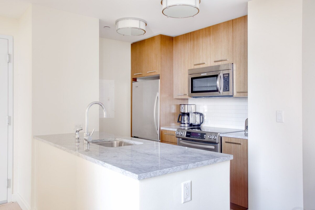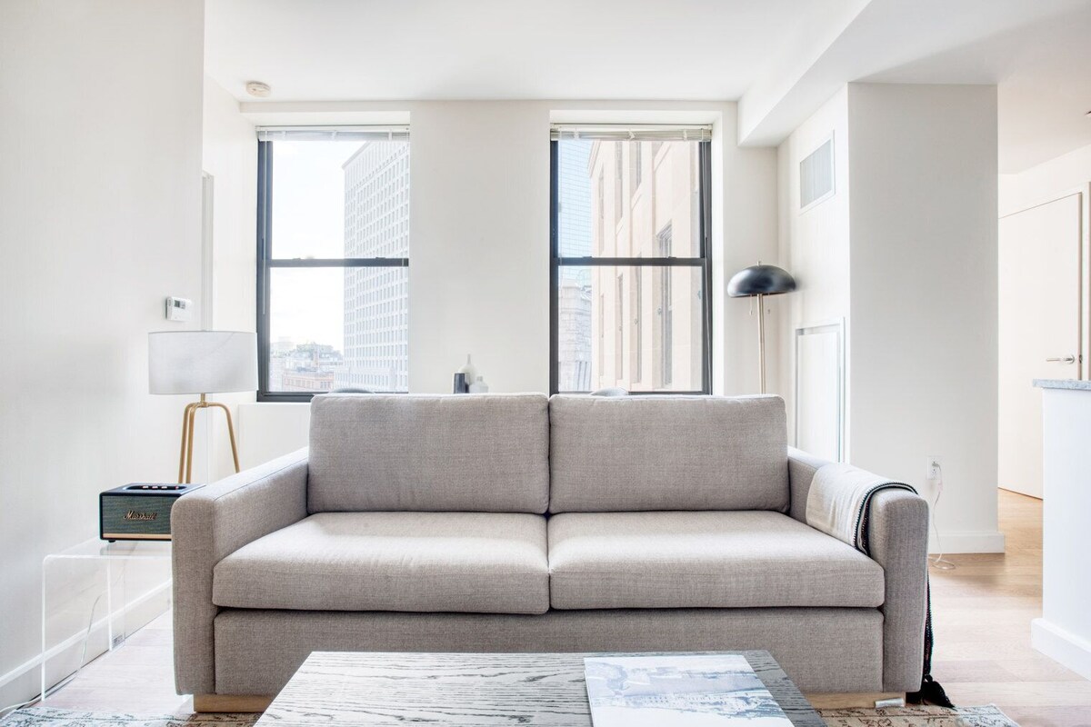 Discover the best of Boston, with this one bedroom apartment in Bay Village with views over the city. It’ll be easy to simply show up and start living in this elegantly furnished apartment with its fully equipped kitchen, charming living room, and our dedicated, on-the-ground support. (ID #BOS418) Designed with you in mind Thoughtfully designed with bespoke finishes, modern furnishings, and a fully equipped kitchen, you’ll enjoy that “I’m home” feeling with this Blueground apartment. Whether you’re lounging in your sophisticated living room streaming the latest and greatest entertainment on the smart TV or premium wireless speaker, or getting some well-earned rest on the superior quality mattress with luxury linens, you’ll fall in love with everything this Bay Village apartment has to offer. This apartment also offers in-apartment laundry. Sleeping arrangements Queen Bed, 63in/160cm Amenities Building amenities unique to this one bedroom apartment include an on-site: - Basketball Court - Doorman - Dryer - Elevator - Game room - Washing machine - Lounge - Pets allowed Arrival and ongoing support The entire apartment is yours to enjoy! Throughout your stay, you’ll have access to our Client Experience team through the Blueground App. You can schedule additional cleanings, submit maintenance requests, and view our neighborhood recommendations with just a few taps. We’ll share all details upon confirmation of your stay. Other things to note Building amenities may have an extra cost. This Blueground apartment has flexible lease options, allowing you to book it for one month, a year, or more. Pets are welcome, though weight limits and breed restrictions apply and may incur fees. We take great pride in ensuring every photo displayed is shot in our own units with our actual furnishings. That said, we regularly refresh our decor and furniture arrangement, which may differ from what’s pictured. A security deposit of $500 is required at booking, which will be returned within 2-4 weeks after the check-out, minus any deductible damages. Our prices include all fees. No hidden fees.