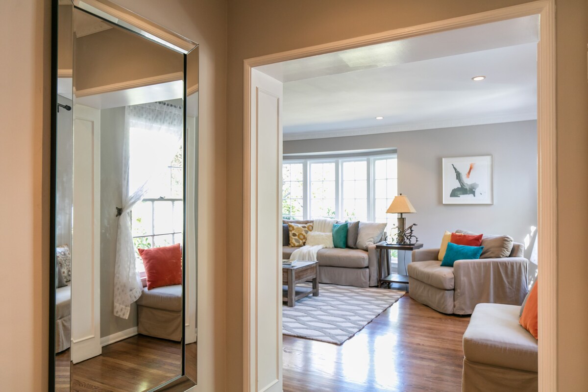 Registration Details HSR19-000035 BEAUTIFULLY FURNISHED gorgeous 3 bd/2ba plus dining room single family house on privately landscaped oversized corner lot, located at between Beverly Hills/ Westwood/ Century City. Perfect place for a big family, couples, business traveler or large group of friends. Walking distance to Westwood Village, Century City Mall and UCLA and the Medical Center. About 5 min. drive to Rodeo Dr. and Beverly Hills, 15 min. drive to Santa Monica Beach and Hollywood. Easy access to all freeways. The space This is a stylish and recently furnished great 3 bedroom 2 bath house which has a great privacy with front and back patios in the heart of West LA! Enter secured gate into completely enclosed front yard with charming courtyard slate-tiled patio opening to front door & dining room. ---- Kitchen -Gourmet kitchen with granite counter tops, island, top-of-the-line s/s appliances, breakfast area & laundry area opening to back deck & yard. It is fully equipped including stainless steel oven, microwave, refrigerator, dishwasher, coffee maker, cooking utensils, and more. ---- Living Room -Light and Bright with lovely hardwood floor and original detailing. Living room with original molding & built-ins & bay window overlooking greenery. - 70\ Flat Screen TV ---- Bedroom 1 - 2 Full-Size beds - Blow dryer, clothes iron & ironing board ---- Bedroom 2 - 2 Full-Size beds ---Dining Room -Beautifully furnished with a big dining table for perfect for large family or large groups -----Backyards -Spacious grassy private front yard and backyard. -Hammock - BBQ Grill -Outdoor dinning table Interaction with guests I'm here to answer any questions you may have, and help you check-in and check-out. I'll be nearby if you need anything. The neighborhood This house has a wonderful location, walking distance to charming Westwood Village, Century City and UCLA, very close to all the popular shops, cozy cafes, trendy bars and restaurants or a multitude of take-out and deliveries are at your finger tip. -About 5 min. drive to Rodeo Dr. and Beverly Hills -15 min. drive to Santa Monica and Venice Beach. - 20 min. drive to LAX -15 min. drive to Hollywood. *Bus lines are within walking distance. Easy access to all freeways. The neighborhood offers a sense of security having one of the best police forces in California which makes for a very family-safe environment. The people are very friendly and give off a welcoming vibe. Getting around Public transportation is half a block away. Also Uber is great Our prices include all fees. No hidden fees.