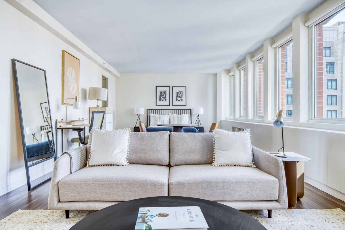 Discover the best of Boston, with this studio apartment in Prudential / St. Botolph. It’ll be easy to simply show up and start living in this furnished apartment with its fully equipped kitchen, living room, and our dedicated, on-the-ground support. (ID #BOS631) Designed with you in mind Thoughtfully designed with bespoke finishes, modern furnishings, and a fully equipped kitchen, you’ll enjoy that “I’m home” feeling with this Blueground apartment. Whether you’re lounging in your stylish living room streaming the latest and greatest entertainment on the smart TV or premium wireless speaker, or getting some well-earned rest on the superior quality mattress with luxury linens, you’ll fall in love with everything this Prudential / St. Botolph apartment has to offer. Sleeping arrangements Queen Bed, 63in/160cm Amenities Building amenities unique to this studio apartment include an on-site: - Doorman - Dryer in building - Elevator - Washing machine in building - Pets allowed Arrival and ongoing support The entire apartment is yours to enjoy! Throughout your stay, you’ll have access to our Client Experience team through the Blueground App. You can schedule additional cleanings, submit maintenance requests, and view our neighborhood recommendations with just a few taps. We’ll share all details upon confirmation of your stay. Other things to note This Blueground apartment has flexible lease options, allowing you to book it for one month, a year, or more. Pets are welcome, though weight limits and breed restrictions apply and may incur fees. We take great pride in ensuring every photo displayed is shot in our own units with our actual furnishings. That said, we regularly refresh our decor and furniture arrangement, which may differ from what’s pictured. A security deposit of $500 is required at booking, which will be returned within 2-4 weeks after the check-out, minus any deductible damages. Our prices include all fees. No hidden fees.