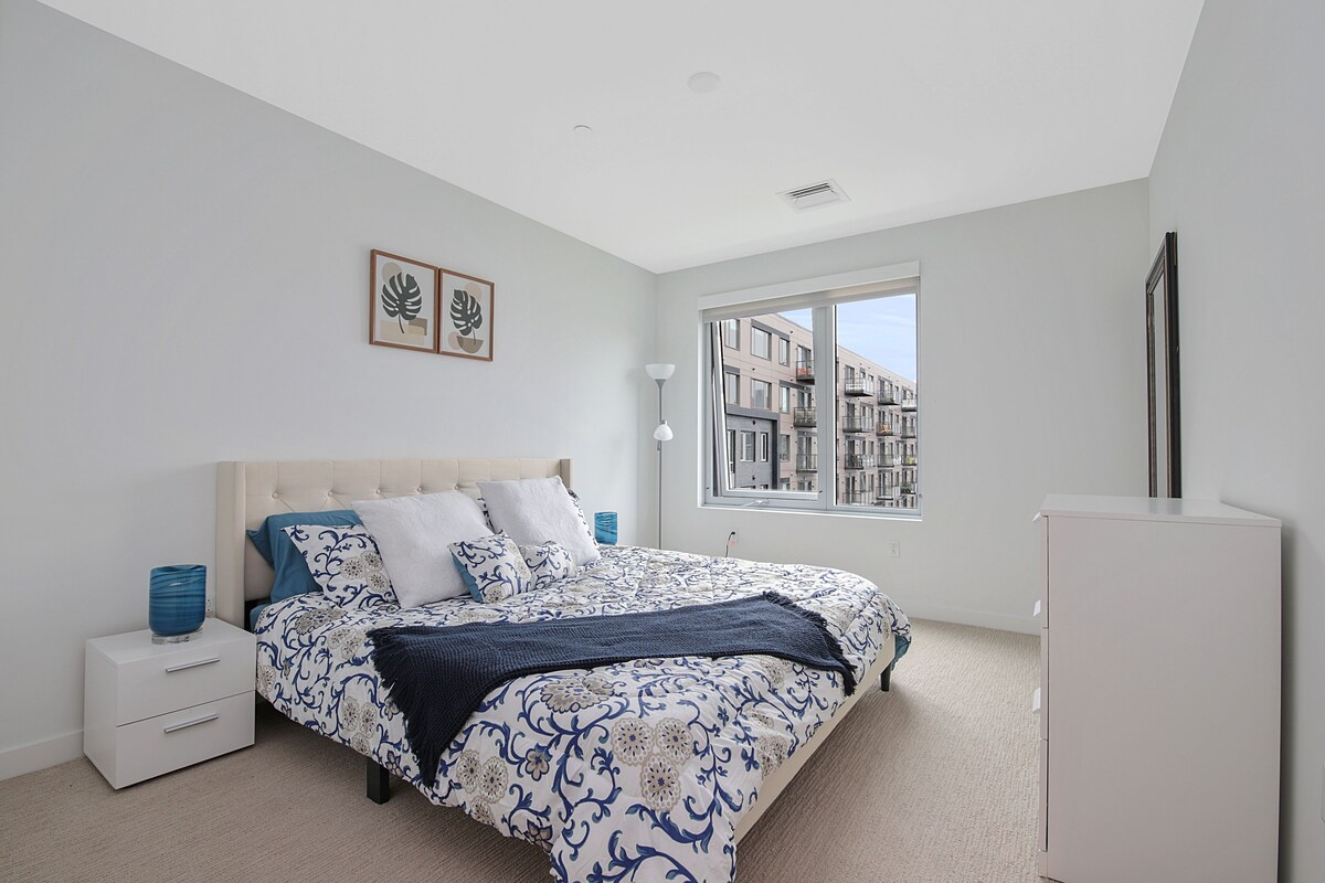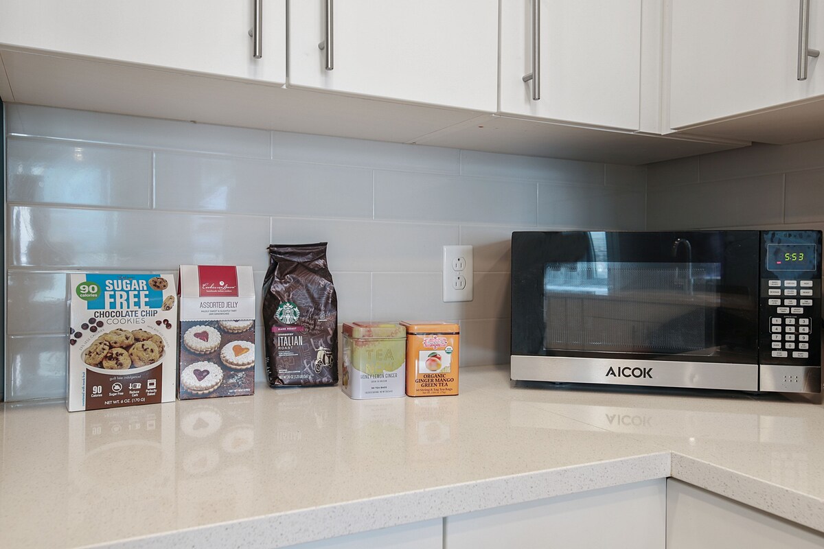 enjoy your morning coffee in the balcony with amazing view in a peaceful community. Full of amenities , wonderful fitness center gaming room, lounge , work space area..etc the Train station is cross the street. Our prices include all fees. No hidden fees.
