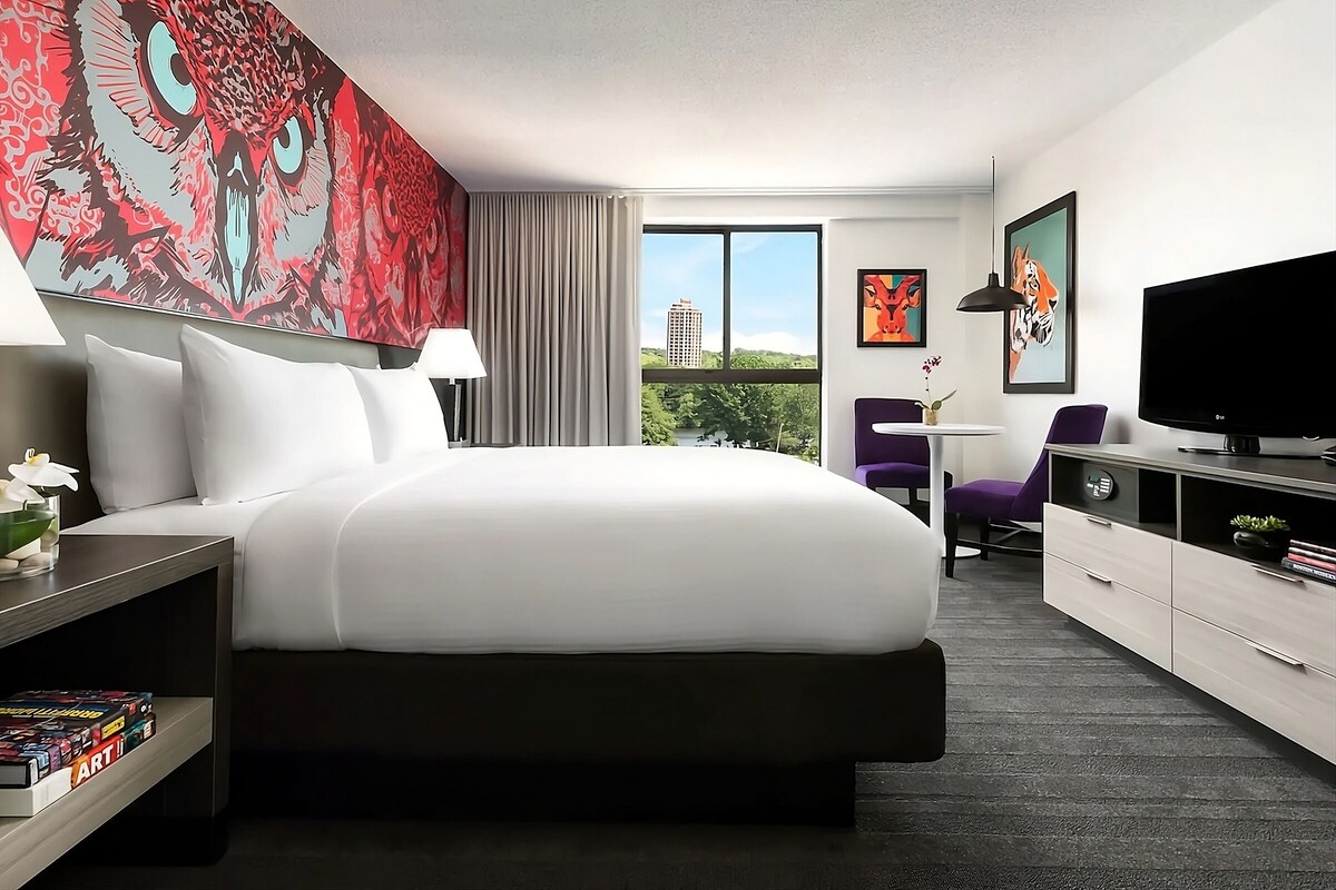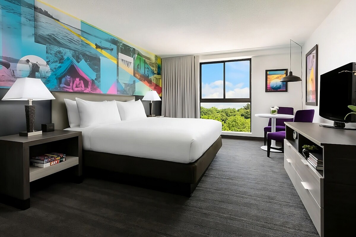 Modern amenities complement lively art and bold design at this Allston property. Artwork by local and national artists is displayed throughout the property and is complemented by a thoughtful collection of amenities, such as a 24-hour fitness center, and an outdoor patio with a firepit. Guests will also enjoy business services and free Wi-Fi. PLEASE NOTE: This listing is specifically for a hotel room located within a hotel, distinguishing it from typical residential or apartment accommodations. - The property requires a damage deposit of USD 25/day/unit on the credit/debit card provided. The deposit is required for EACH UNIT and is refunded IN FULL upon check-out. - Early check-in is subject to availability upon arrival. - Following property rules, the minimum age required for check-in is 21 years old; - The maximum number of days you can book per reservation is only 28. - Upon arrival, a mandatory resort fee of US$40.76/night/per unit (plus tax) will be collected, this is not included in the daily rate. We're delighted you're considering RoomPick’s curated selection of boutique hotels, condo hotels, and resorts worldwide. This room comes with: THE UNIT This 325sf unit features: - 1 King bed; - Daily housekeeping; - Mini fridge; - All linens, towels, and bathroom essentials are provided. You don’t need to bring a thing!! THE PROPERTY Our family-friendly property provides the following on-site amenities: - 24/7 Front desk and Security; - Fitness center; - Business center; - Meeting space; - Laundry facilities; - ATM/cash machine on site; - Pets are allowed for an additional charge of $115.00 per accommodation, per stay, with a maximum of two dogs weighing no more than 75 pounds each; - Parking is available on-site for a $15 parking fee per night, per vehicle. NOTE: Some of the amenities may not function as advertised. At this time and until further notice: - No pool on the property; - Gym is available 24 hours; - Housekeeping service is available upon request from 07:00 AM to 10:30 PM daily. Our prices include all fees. No hidden fees.