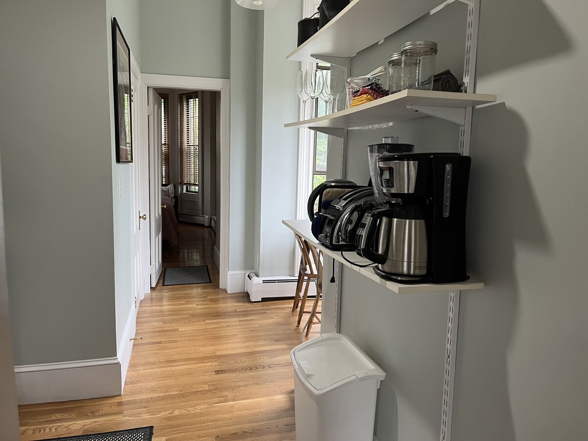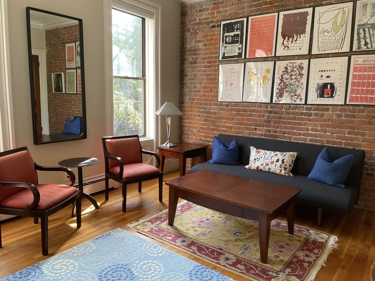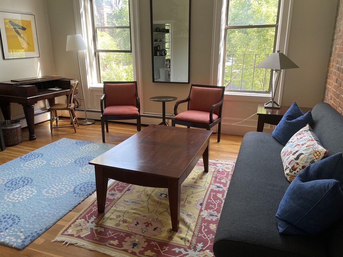 In Boston’s famous South End neighborhood, on a pretty tree-lined street, you will enjoy this cozy one bedroom apartment one level above the street. This adorable unit offers TWIN BEDS THAT CAN BE MADE INTO A KING plus a full sleep sofa in the living room and a twin air mattress. It includes hardwood floors throughout, a full kitchen (note: the refridgerator is a small, under the counter size, not freezer), full bath with a shower, and access to free laundry in the building. It is a quick walk to Copley Square, the Back Bay, the Prudential Center, the Back Bay subway and Amtrak, many shops and the best restaurants in the city. It is within a 12-minute walk to Washington Street’s silver line to the Boston Convention Center. All utilities, Cable TV, WIFI, linens and kitchen items are included. Rate is based on double occupancy. $30/night additional guest per night. 1 dog is allowed. Service Animal policy: https://help.vrbo.com/articles/What-is-HomeAway-s-service-animal-policy . NO on site. Parking at nearby public garages