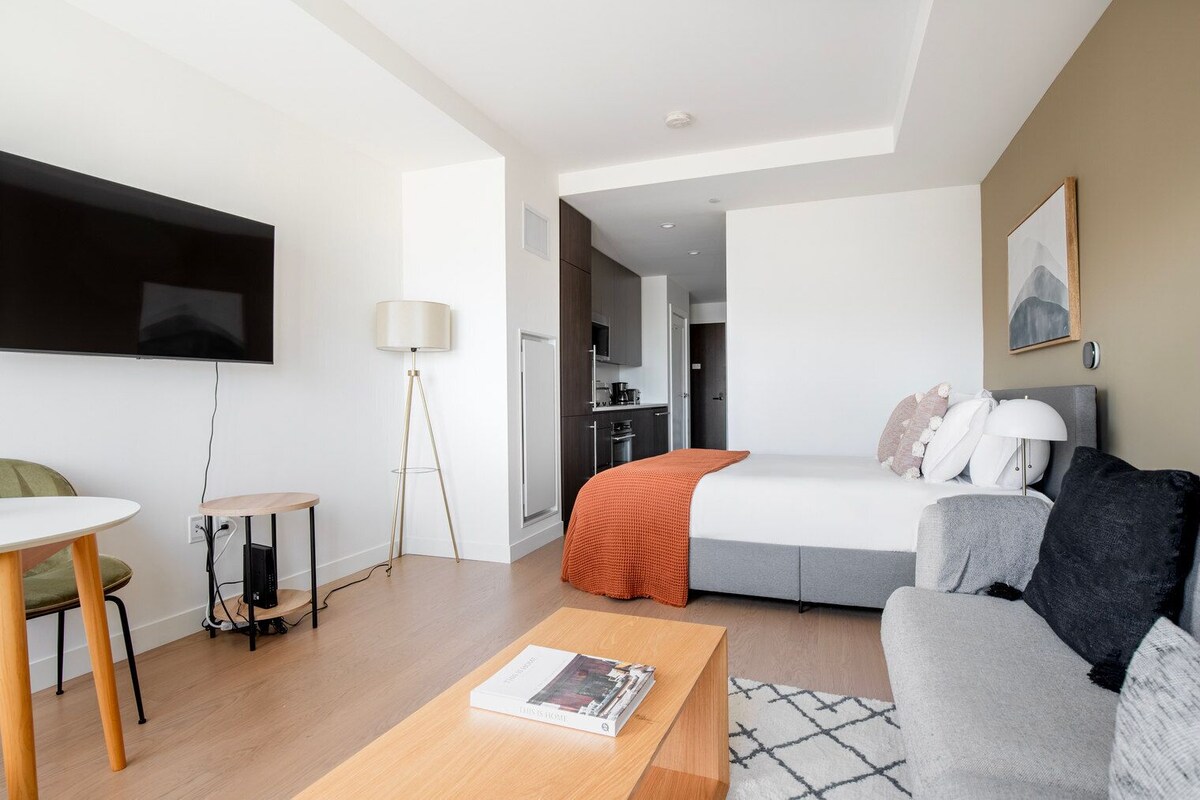 Discover the best of Boston, with this studio apartment in Fenway–Kenmore with views over the city. It’ll be easy to simply show up and start living in this furnished apartment with its fully equipped kitchen, living room, and our dedicated, on-the-ground support. (ID #BOS856) Designed with you in mind As with any Blueground apartment, you’ll find a thoughtfully designed space complete with beautiful furniture and a fully equipped kitchen in this studio property. And, thanks to our superior quality mattresses, luxury linens, and towels, you can relax knowing you’ll always feel comfortably at home. When you’re ready for some fun, you can take in the Boston vibes or bring the entertainment to you with the premium wireless speaker or smart TV. This apartment also offers in-apartment laundry. Sleeping arrangements Queen Bed, 63in/160cm Amenities Building amenities unique to this studio apartment include an on-site: - Doorman - Dryer - Elevator - Swimming pool - Washing machine - Pets allowed Arrival and ongoing support The entire apartment is yours to enjoy! Throughout your stay, you’ll have access to our Client Experience team through the Blueground App. You can schedule additional cleanings, submit maintenance requests, and view our neighborhood recommendations with just a few taps. We’ll share all details upon confirmation of your stay. Other things to note Building amenities may have an extra cost. This Blueground apartment has flexible lease options, allowing you to book it for one month, a year, or more. Pets are welcome, though weight limits and breed restrictions apply and may incur fees. We take great pride in ensuring every photo displayed is shot in our own units with our actual furnishings. That said, we regularly refresh our decor and furniture arrangement, which may differ from what’s pictured. A security deposit of $500 is required at booking, which will be returned within 2-4 weeks after the check-out, minus any deductible damages. Also note - The apartment is in a busy location, so it will be noisy when your windows are open - Ongoing construction in close proximity; construction sounds may occasionally be heard Our prices include all fees. No hidden fees.