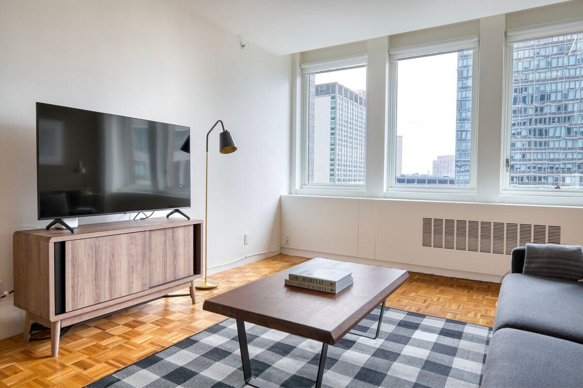 Feel at home wherever you choose to live with Blueground. You’ll love this pretty Prudential / St. Botolph furnished one bedroom apartment with its modern decor, fully equipped kitchen, and bright living room with great views. Ideally located, you’re close to all the best that Boston has to offer! (ID #BOS875) Designed with you in mind As with any Blueground apartment, you’ll find a thoughtfully designed space complete with beautiful furniture and a fully equipped kitchen in this one bedroom property. And, thanks to our superior quality mattresses, luxury linens, and towels, you can relax knowing you’ll always feel comfortably at home. When you’re ready for some fun, you can take in the Boston vibes or bring the entertainment to you with the premium wireless speaker or smart TV. Sleeping arrangements Queen Bed, 63in/160cm Amenities Building amenities unique to this one bedroom apartment include an on-site: - Doorman - Dryer in building - Elevator - Washing machine in building - Pets allowed Arrival and ongoing support The entire apartment is yours to enjoy! Throughout your stay, you’ll have access to our Client Experience team through the Blueground App. You can schedule additional cleanings, submit maintenance requests, and view our neighborhood recommendations with just a few taps. We’ll share all details upon confirmation of your stay. Other things to note This Blueground apartment has flexible lease options, allowing you to book it for one month, a year, or more. Pets are welcome, though weight limits and breed restrictions apply and may incur fees. We take great pride in ensuring every photo displayed is shot in our own units with our actual furnishings. That said, we regularly refresh our decor and furniture arrangement, which may differ from what’s pictured. A security deposit of $500 is required at booking, which will be returned within 2-4 weeks after the check-out, minus any deductible damages. Also note - This is a guarded building equipped with a doorman/concierge at all times - This building contains both residential and commercial properties Our prices include all fees. No hidden fees.