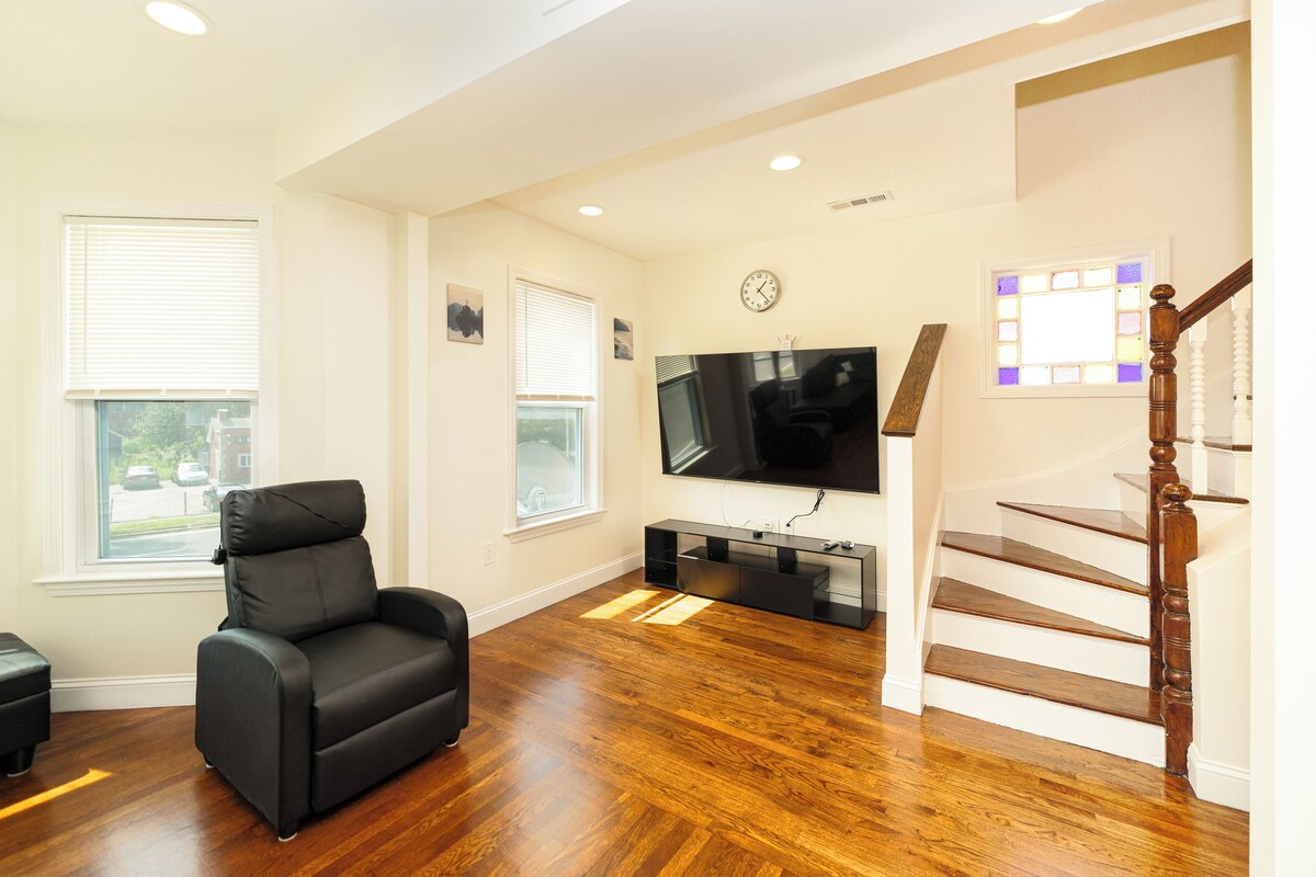 Welcome to the vibrant City of Boston! This newly renovated 4-bedroom, 2-bathroom apartment offers the perfect balance of modern comfort and convenience. Whether you’re traveling with family, friends, or colleagues, you’ll appreciate the spacious layout and stylish amenities. Located just a 5-minute drive from I-93 and 20 minutes from downtown Boston, this home is your gateway to exploring the city’s rich history and culture. Your Boston adventure starts here – book now! The Space This spacious and sunlit private apartment spans the 2nd and 3rd floors, offering a comfortable retreat in the heart of the city. Living Room: A cozy sofa and a 60” smart TV create the perfect spot for entertainment or relaxation. Kitchen: Fully equipped with a natural gas stove, oven, fridge, dishwasher, and microwave. A fully stocked kitchen lets you prepare meals with ease. Dining Area A designated space to enjoy meals together. Bedrooms: • Bedroom 1: 1 king bed • Bedroom 2: 1 queen bed • Bedroom 3: 1 queen bed & 1 bunk bed (twin over full) • Bedroom 4: 1 queen bed & 1 bunk bed (twin over full) Bathrooms: 2 full bathrooms with modern fixtures. Laundry area is set up inside the house for your convenience. Guest Access Pets Allowed: Your furry friends are welcome! Self Check-In: Convenient self check-in using a keypad. Parking: 3 on-site parking spaces Note: Being in a lively urban area, you may experience some street noise. Other Things to Note *Additional Information We live nearby and are available via phone or Vrbo messaging to assist with any questions during your stay. Extra Guest Fee: After 6 guests, an additional fee of $25 per guest per night applies. Pet Fee: $35 per pet per night. *Important Guest Policy & House Rules Security: The property is equipped with: • A security camera at the entrance for your safety. • Smoke alarms and other essential safety features. Registered Guests Only: • The property accommodates up to 15 guests, with bedrooms opened based on the number of guests registered on Vrbo. • Unregistered guests are strictly prohibited and will not be allowed to stay. We reserve the right to verify occupancy using security cameras. 🚭 No Smoking Smoking is strictly prohibited. A $250 fine applies for violations. ❌ Strict No Party Policy No parties, events, or gatherings are permitted. Violations may result in immediate cancellation without a refund and a $250 fine. • This includes bachelor/bachelorette groups. • Quiet hours begin at 10:00 PM – 7:00 AM no loud talking on decks or in common areas after this time. • Violations will result in immediate cancellation with no refund, and the security deposit will be forfeited. Disclaimer and Liability Waiver By staying at this property, all guests acknowledge and agree to the following: Assumption of Risk: Guests assume all risks associated with their stay, including but not limited to accidents, injuries, or loss of personal belongings. Liability: The host is not liable for any injuries, accidents, or loss/damage to personal property occurring on the premises during the guest’s stay. Damages: Any existing damage or broken items must be reported and confirmed at the time of check-in. Guest Responsibility: Guests are fully responsible for any damage or loss that occurs during their stay. Deposit Use: In the event of damage or loss, the host reserves the right to use all or part of the security deposit to cover repair or replacement costs. Further charges may apply if damages exceed the deposit amount. Zero Tolerance for Police Visits: Any visit from local law enforcement will result in immediate eviction without refund. Booking Confirmation = Rule Agreement By reserving your stay, you agree to these rules. Let's work together to ensure a safe and enjoyable experience for everyone! Our prices include all fees. No hidden fees.