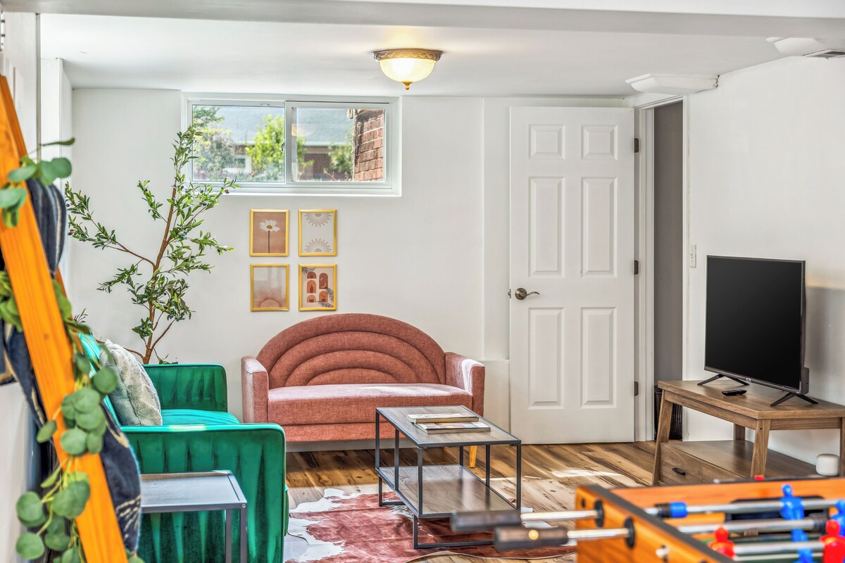 Welcome to Your Perfect Denver Retreat! This newly remodeled 5 bedroom home blends modern luxury and cozy comfort, just steps from iconic City Park and the Denver Zoo. Ideal for families, business travelers, or groups, it comfortably accommodates up to 12 guests. You’ll have plenty of space to unwind, socialize, and create lasting memories. Enjoy spacious rooms, 2 fully equipped kitchens, and easy access to Denver’s top attractions. Book today for an unforgettable stay in the Mile-High City! Welcome to our urban escape, where old-world charm meets modern luxury, just steps away from City Park! This spacious, beautifully remodeled home offers the perfect blend of comfort and style, ideal for families, friends, and travelers seeking a relaxing getaway in the heart of Denver. The Space: From the moment you step inside, you’ll be greeted by stunning bathrooms, gleaming hardwood floors, and a state-of-the-art kitchen designed to impress. The open floor plan features beautiful quartz countertops, creating a warm and inviting atmosphere perfect for family gatherings, friendly get-togethers, or simply unwinding in style. Comfortable Bedrooms: Each of our beautifully decorated bedrooms is designed for maximum relaxation. Enjoy the added comfort of charging headboards and white noise machines, ensuring a restful night’s sleep for all guests. Gourmet Kitchen: Culinary enthusiasts will love the fully-equipped kitchen, complete with stainless steel appliances, quartz countertops, and everything you need to create a memorable meal. Whether you’re cooking a family dinner or preparing a quick snack, this kitchen has you covered. Enjoy a remodeled 2nd kitchen in the lower level, to allow groups to spread out. Convenient Location: Our retreat offers unparalleled convenience, with easy access to shops, restaurants, and local attractions. City Park is just a short walk or bike ride away, and we’re only 10 minutes from downtown Denver and 20 minutes from Denver International Airport (DIA). Enjoy free private street parking, as well as strong WiFi throughout the home for your convenience. Located in a beautiful safe neighborhood on an urban street with potential for noise -- strolling through the beautifully tree lined neighborhood of Park Hill is a wonderful, tranquil experience. Family & Pet-Friendly: This home is perfect for families and pet lovers! The private, fully-fenced backyard offers plenty of space for kids and pets to play, while a high chair and playpen are provided for little ones. If you have any special childcare needs, don’t hesitate to reach out—we’re happy to accommodate. Main Floor: Spacious living room with 50” Smart TV for your entertainment. Fully equipped kitchen with stainless steel appliances and quartz countertops. Dedicated workspace in the bedroom with an extra monitor for remote work. Three beautifully appointed bedrooms for a peaceful night's sleep. (1 King, 2 Queens) Green-tiled full bathroom with stylish finishes and a luxury waterfall showerhead to create the best shower. Lower Level: Cozy living room with Smart TV for relaxation. Remodeled kitchenette with a bar top area, perfect for casual meals. Fun foosball table for hours of entertainment. Two charming bedrooms for extra comfort (2 King's). Stylish wood-tiled full bathroom. Backyard: Large, grassy area in the city, fully fenced for privacy and safety. Pet Friendly. Propane grill for outdoor cooking and dining. Experience the Perfect Blend of Luxury & Convenience: Whether you're here for a family vacation, business trip, or exploring the best of Denver, our urban retreat offers the perfect combination of comfort, style, and location. Book your stay today and make lasting memories in this luxurious, family-friendly home! Experience the best of Denver with an incredibly central location, just steps from the iconic City Park. When you stay at our urban retreat, you’ll enjoy exclusive access to the entire home, offering you complete privacy and the freedom to unwind at your own pace. The home seamlessly blends modern indoor comfort with serene outdoor spaces. Inside, you’ll find a spacious, inviting atmosphere with a beautifully appointed kitchen and luxurious bathrooms, designed for relaxation and convenience. Step outside into your private, fenced backyard—an urban oasis perfect for enjoying a peaceful moment amidst the city's energy. Location Highlights: 1 minute to the Denver Zoo and City Park 10 minutes to Downtown Denver 10 minutes to Union Station 20 minutes to Denver International Airport (DIA) 25 minutes to Red Rocks 30 minutes to Boulder 90 minutes to Vail With this prime location, you’ll have quick access to the best of Denver and beyond while enjoying a tranquil retreat in the heart of the city. House is located in a beautiful neighborhood, on a busier street, each room is equipped with white noise machines to ensure quality sleep. Our prices include all fees. No hidden fees.